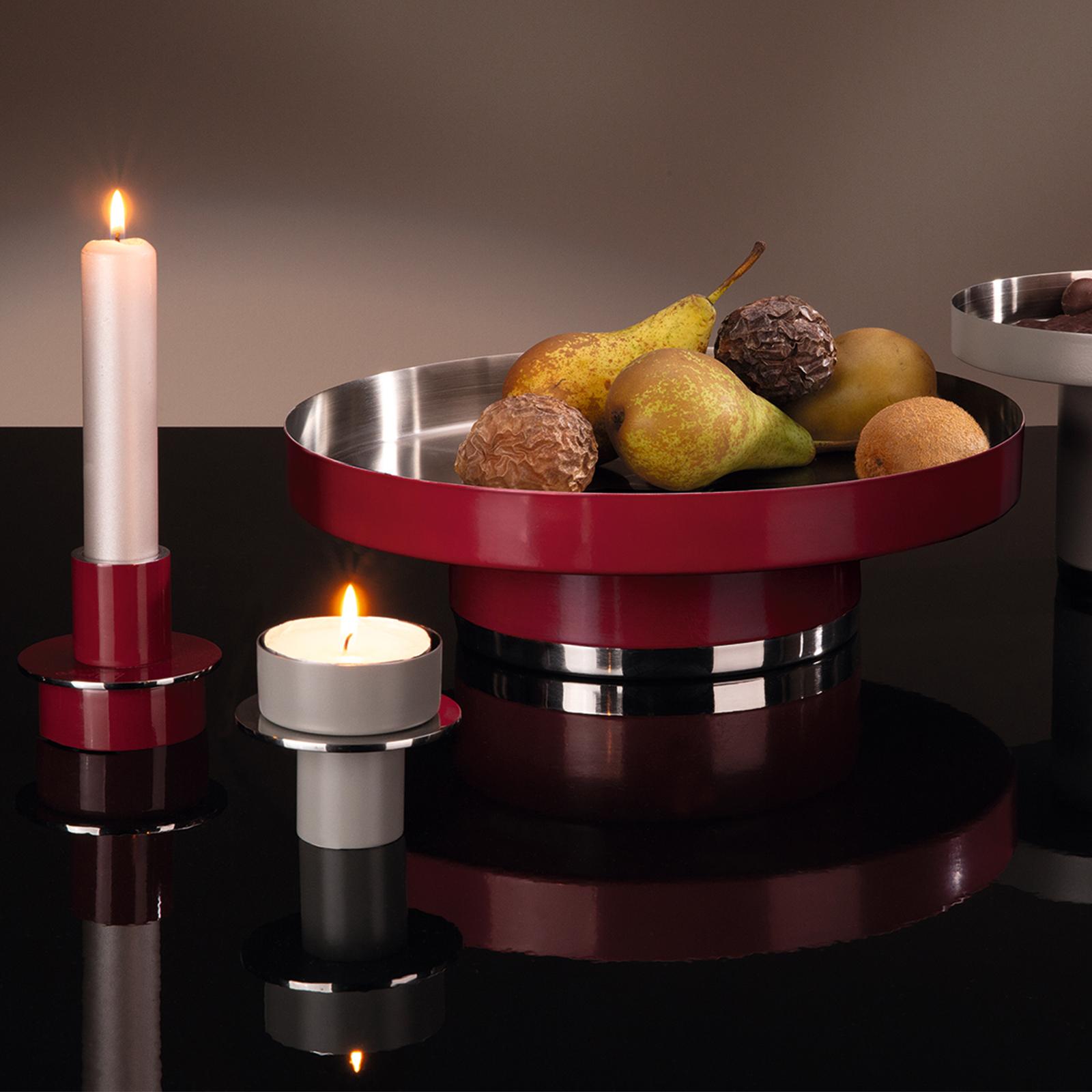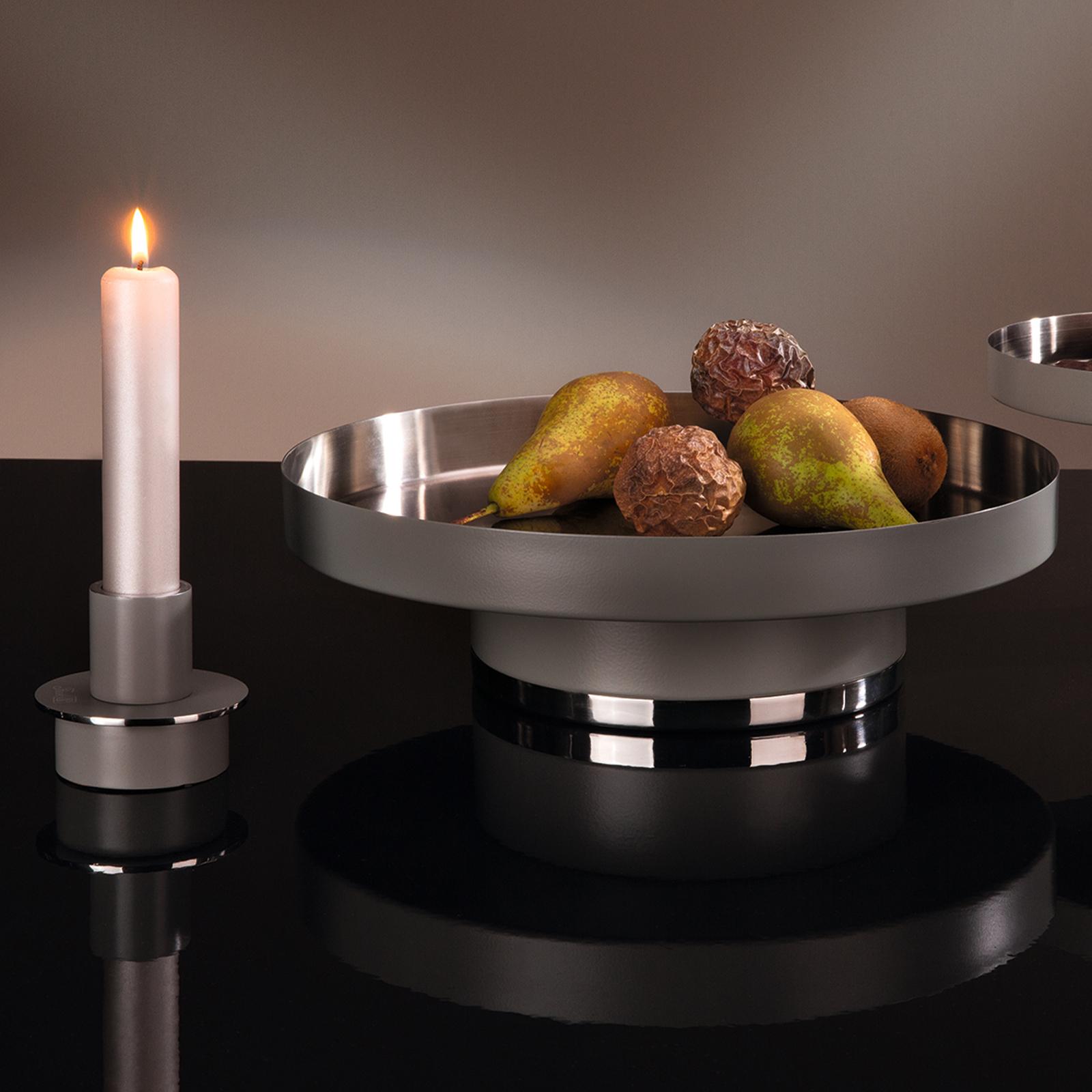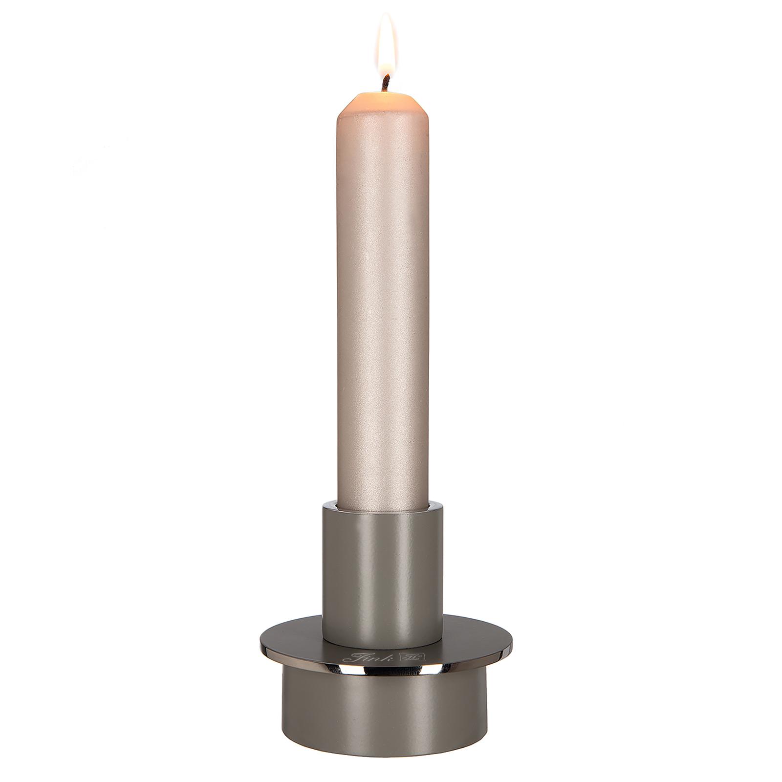 • Länge ca.: 8 cm • Breite ca.: 8 cm • Höhe ca.: 6,8 cm • Durchmesser ca.: 8 cm • Serie: Fink Living • Kapazität: für Stabkerzen Ø 3 cm & Teelichter Ø 6 cm • Ausführung: 1-flammig • Material: Aluminium • Material 1: Edelstahl • Beschichtung: pulverbeschichtet • spülmaschinengeeignet: nein • Farbe: grau-silber • Eigenschaft: beidseitig verwendbar • Form: rund • Umgebungsnutzung: Für Innenbereich