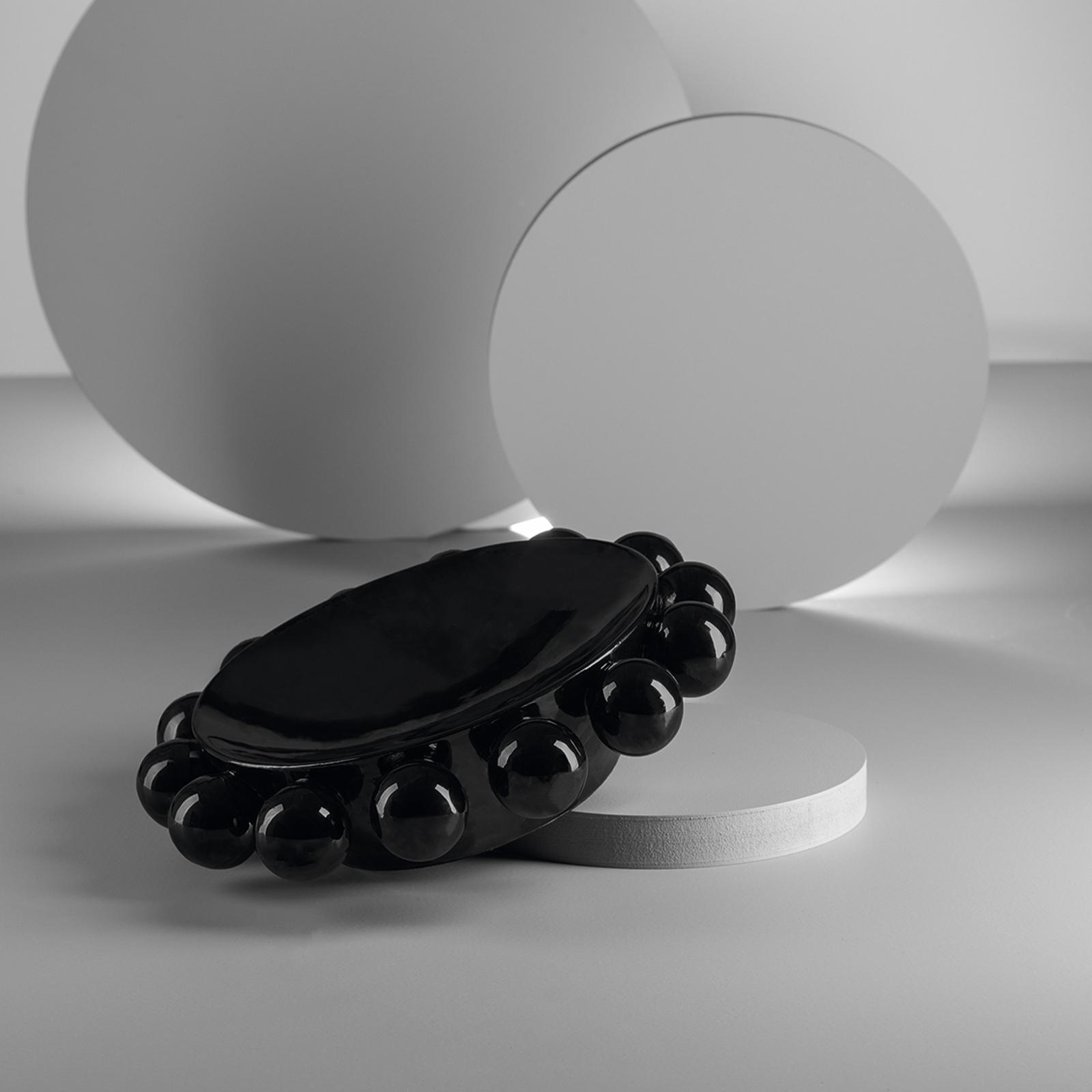 • Länge ca.: 30,5 cm • Breite ca.: 30,5 cm • Höhe ca.: 7,5 cm • Durchmesser ca.: 30,5 cm • Serie: Fink Studio • Material: Porzellan • Oberfläche: glänzend • Oberfläche Details: glatt • spülmaschinengeeignet: nein • Farbe: schwarz • Ausstattung: in Fink STUDIO Geschenkverpackung • Umgebungsnutzung: Für Innenbereich und geschützten Außenbereich