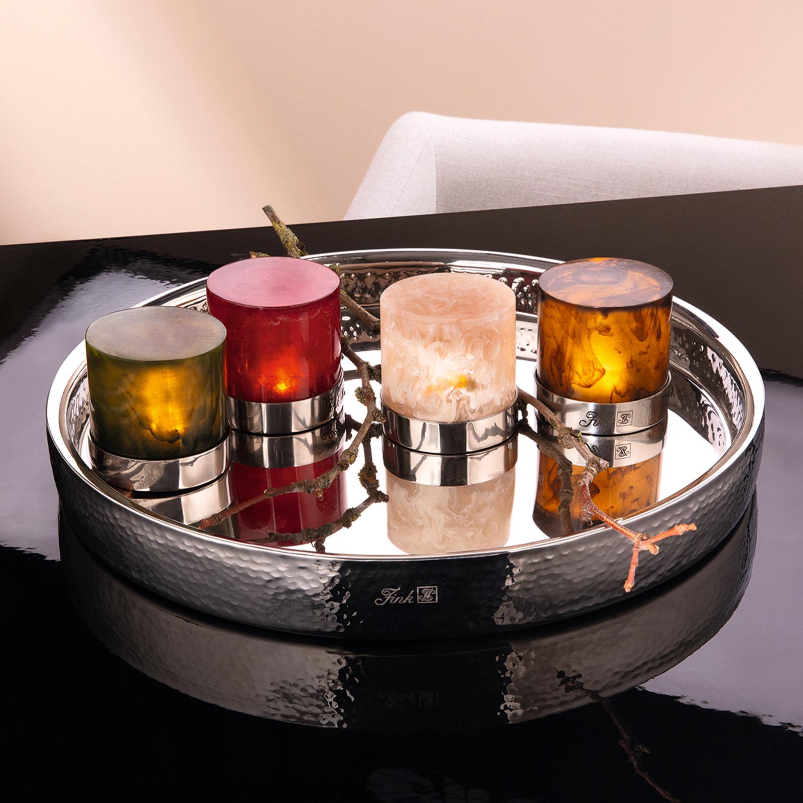 • Länge ca.: 6,4 cm • Breite ca.: 6,4 cm • Höhe ca.: 6,3 cm • Durchmesser ca.: 6,4 cm • Serie: Fink Living • Material: Kunststein • Material 1: Edelstahl • Oberfläche: glänzend-matt • Oberfläche Details: glatt • spülmaschinengeeignet: nein • Farbe: natur-silber • Umgebungsnutzung: Für Innenbereich und geschützten Außenbereich • Besonderheit: für LED Leuchten / Kerzen geeignet (nicht inbegriffen)