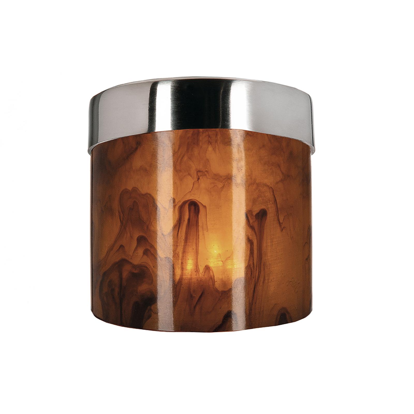 ✓ Lichtglas mit schimmernder Oberfläche in Orange und lebendiger Struktur für stimmungsvolle Akzente ✓ Teelichthalter aus Gießharz mit dekorativer Maserung & Edelstahlboden als stabile Standbasis gefertigt ✓ Mit einer Größe von Ø 6,4 cm & ca. 6,3 cm Höhe kompakt für Tisch, Fensterbank & Sideboard geeignet ✓ Kerzenhalter passend für LED Teelichter oder kleine LED Kerzen, ideal als dekoratives Wohnaccessoire ✓ Runder Behälter auch als kleine Dose für Schmuck, Büroklammern oder andere Kleinigkeiten nutzbar