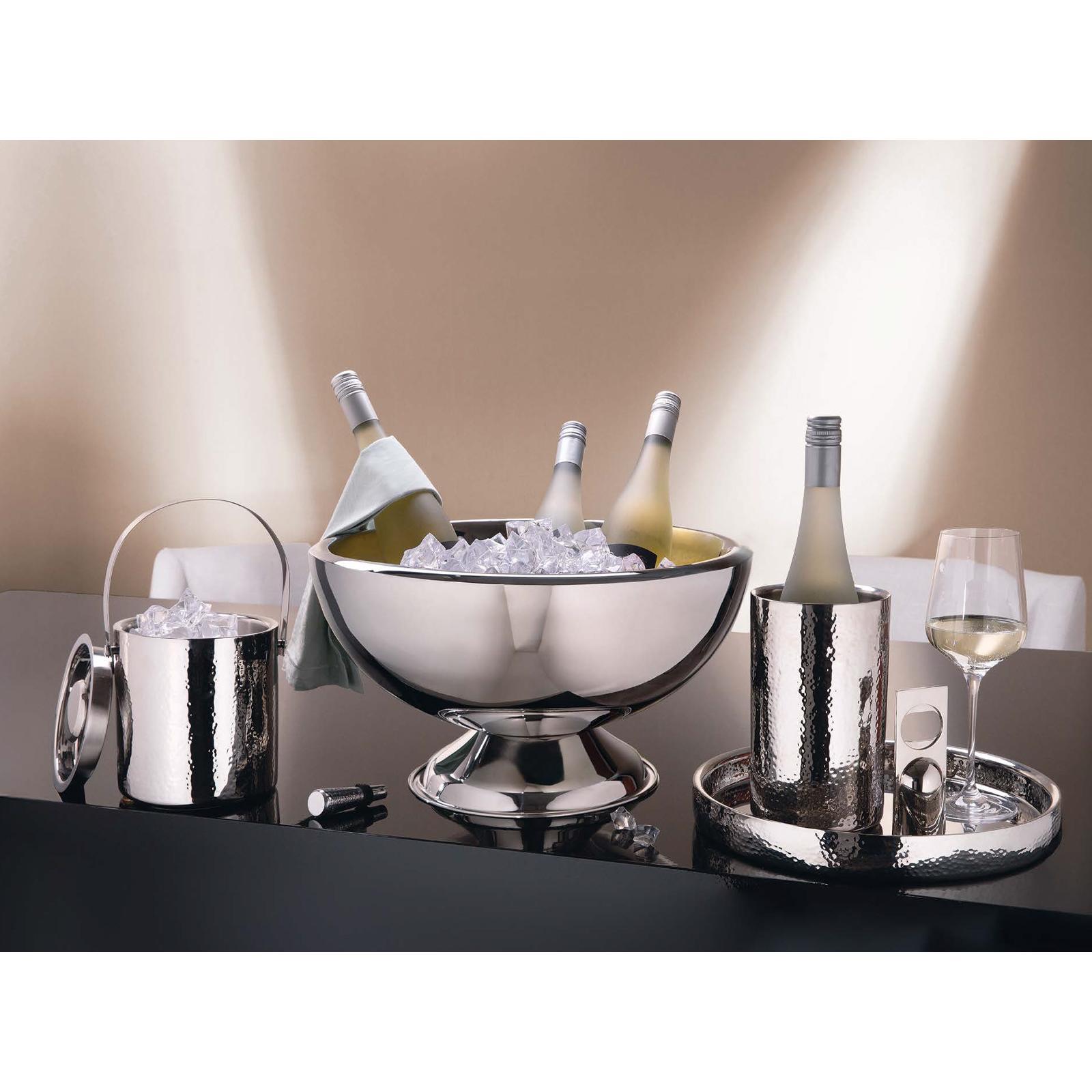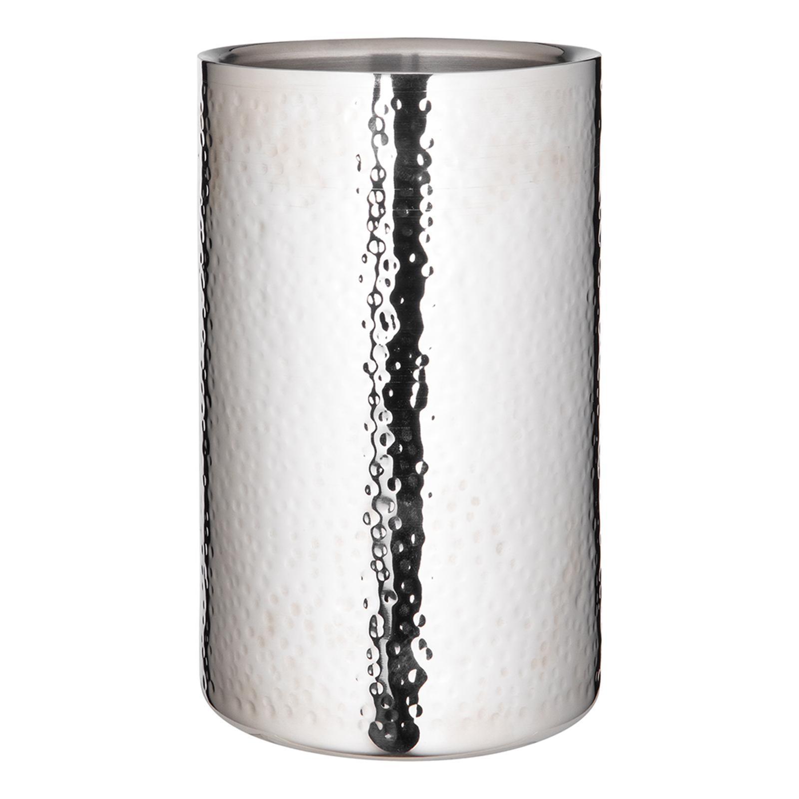 ✓ Eleganter doppelwandiger Flaschenkühler für Wein, Sekt oder Champagner mit längerer Kühlwirkung ✓ Runder Edelstahl Weinkühler mit gehämmerter Oberfläche für dekorative Lichtreflexe auf Tisch & Bar ✓ Mit einer Höhe von ca. 19 cm und Ø 11,5 cm optimal passend für eine Standard Wein- oder Sektflasche ✓ Der silbern glänzende Getränkekühler ist zum Dinner, auf der Terrasse & zu gesellige Abende nutzbar ✓ Robustes Baraccessoire aus zweiwandigem Edelstahl für Zuhause, Gastronomie oder besondere Feiern