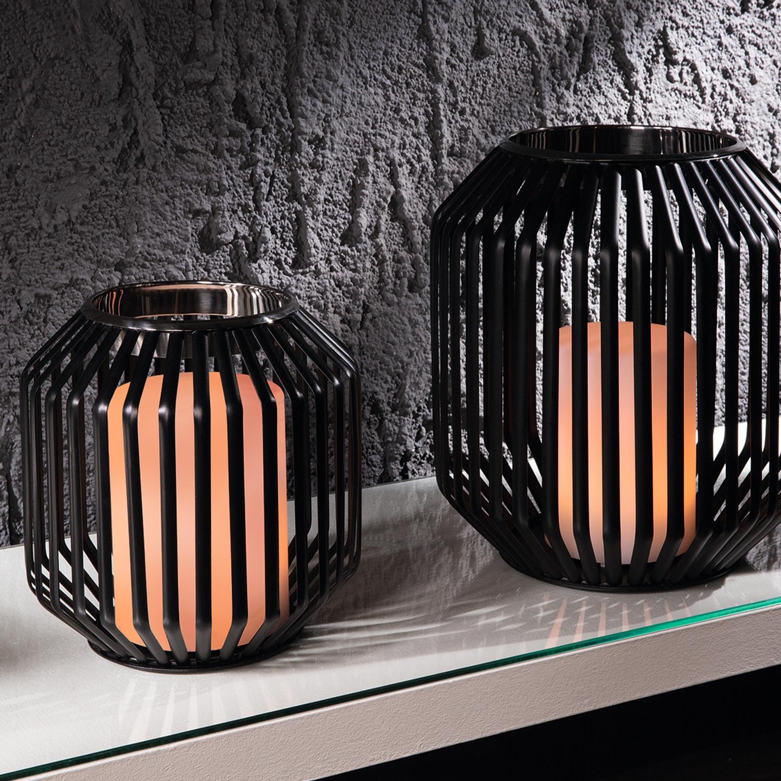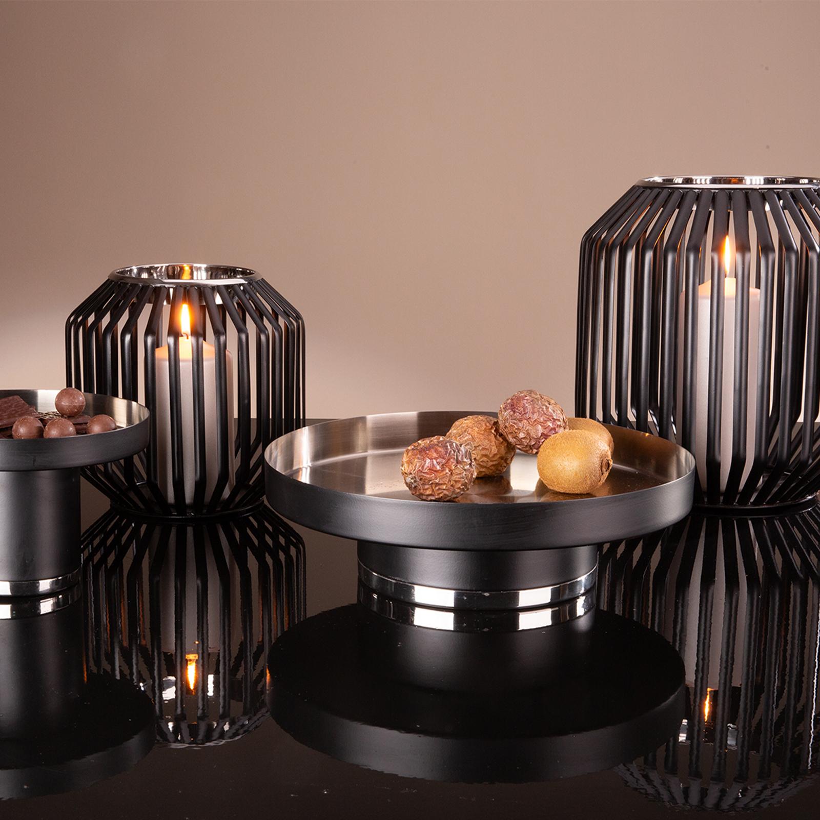 ✓ Windlicht aus Eisen mit offenem Gitterdesign für dekorativ angenehme Lichtakzente im Wohnbereich ✓ Schwarz pulverbeschichtete Oberfläche mit Edelstahlring in Silber & ohne Glas für warme Lichtreflexe ✓ Mit einer Größe von ca. 20 cm und Ø 21 cm geeignet für größere LED Kerzen & auch mehrere Teelichter ✓ Eleganter Kerzenhalter passend für den Tisch, Sideboard, Fensterbank oder geschützten Balkonbereich ✓ Rundes, hohes Dekowindlicht auch ohne Kerze als modernes Wohnaccessoire ein stilvoller Blickfang