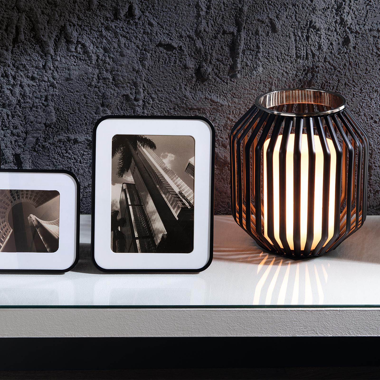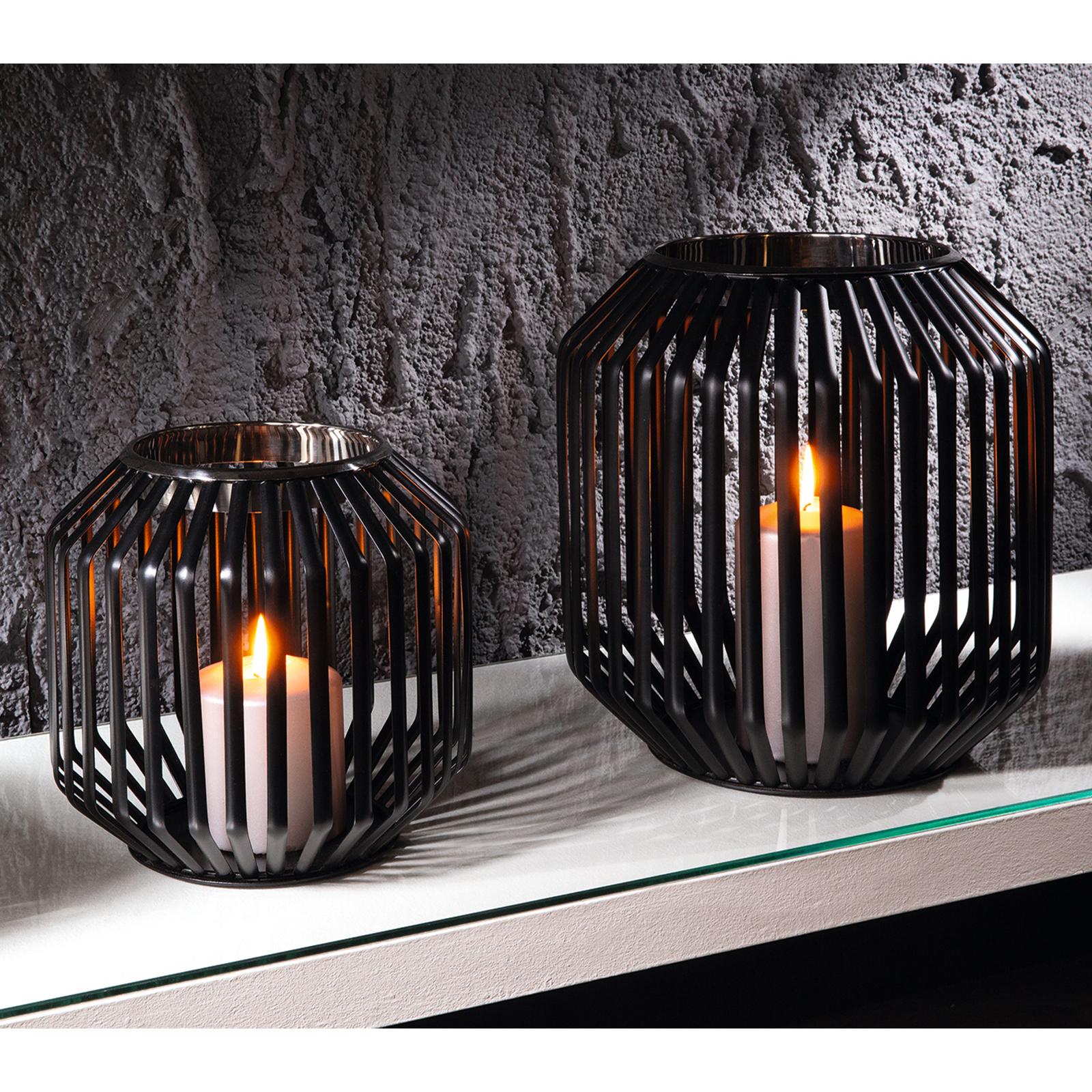 ✓ Windlicht aus Eisen mit offenem Gitterdesign für dekorativ angenehme Lichtakzente im Wohnbereich ✓ Schwarz pulverbeschichtete Oberfläche mit Edelstahlring in Silber & ohne Glas für warme Lichtreflexe ✓ Mit einer Größe von ca. 28,5 cm & Ø 28 cm geeignet für größere LED Kerzen & auch mehrere Teelichter ✓ Eleganter Kerzenhalter passend für den Tisch, Sideboard, Fensterbank oder geschützten Balkonbereich ✓ Rundes, hohes Dekowindlicht auch ohne Kerze als modernes Wohnaccessoire ein stilvoller Blickfang