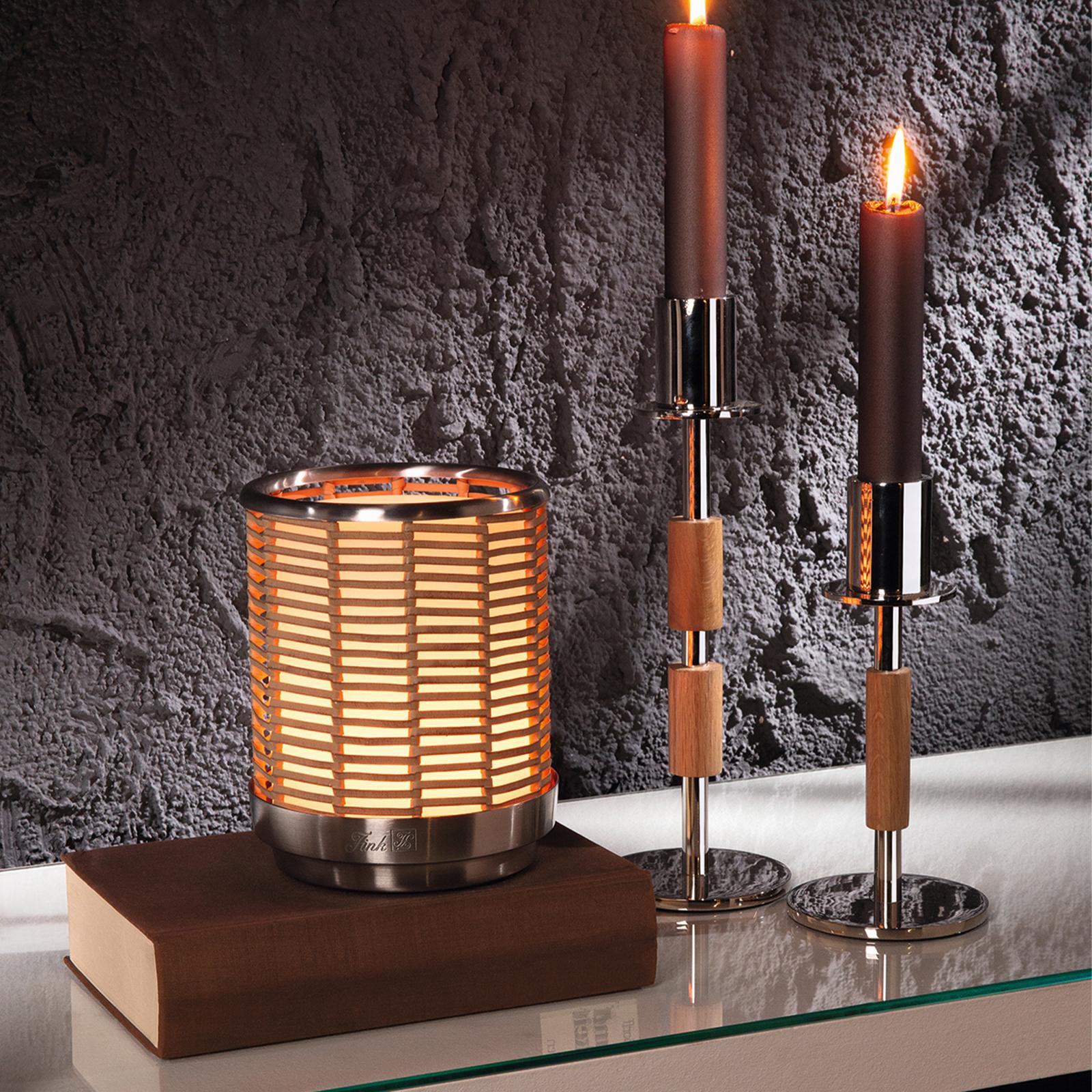 • Länge ca.: 13,2 cm • Breite ca.: 13,2 cm • Höhe ca.: 16,5 cm • Durchmesser ca.: 13,2 cm • Serie: Fink Living • Kapazität: für 1 Stumpenkerze • Ausführung: 1-flammig • Material: Eisen • Beschichtung: pulverbeschichtet • Oberfläche: matt • Oberfläche Details: geflochten • spülmaschinengeeignet: nein • Farbe: natur-silber • Eigenschaft: ohne Aufsatz-Glaszylinder • Umgebungsnutzung: Für Innenbereich • Besonderheit: für LED Leuchten / Kerzen geeignet (nicht inbegriffen)