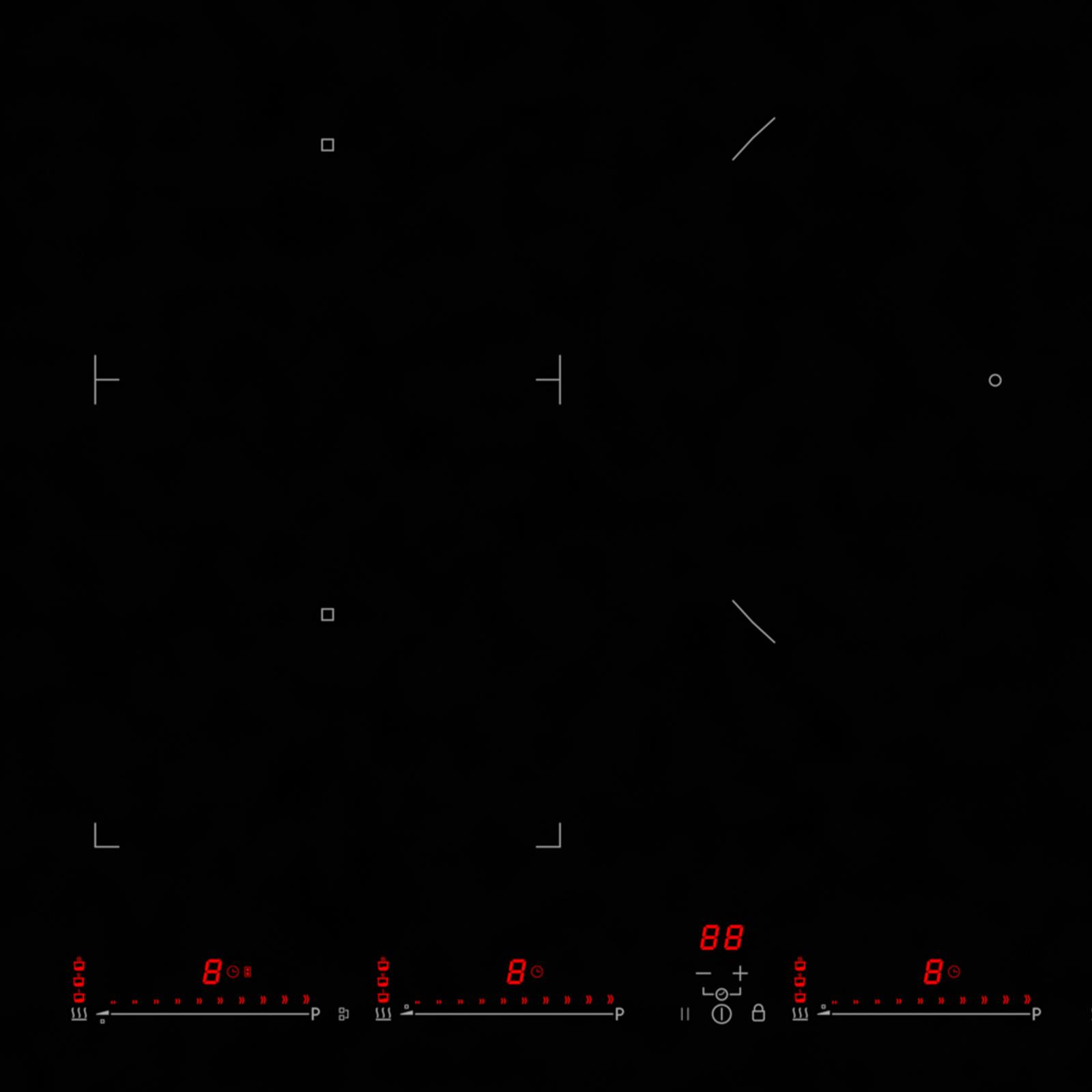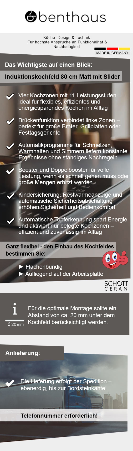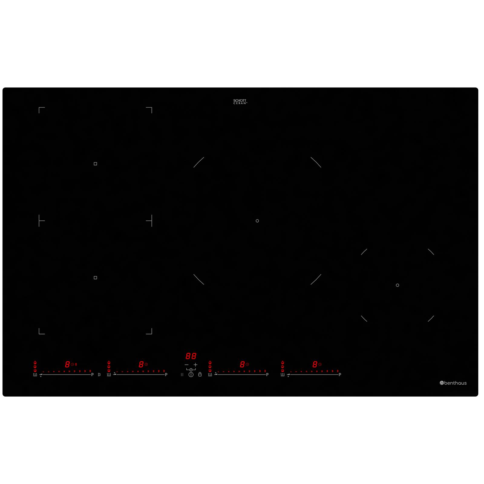 Benthaus mattes Induktionskochfeld 80 cm autark - Glaskeramik mit 4 Kochzonen, 4-fach Slider, Booster & Timer