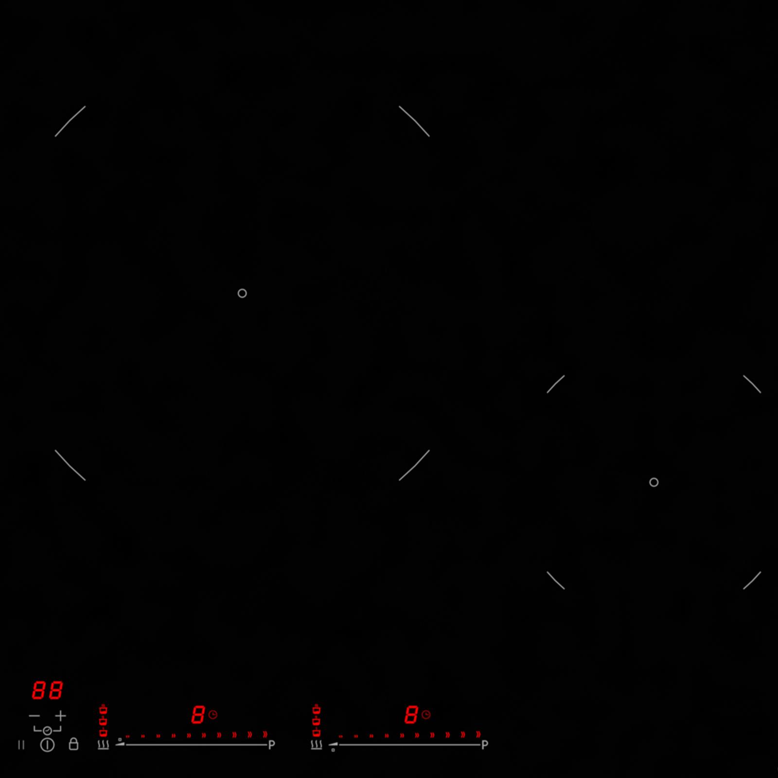 ☛ Einbauvarianten aufgelegt flächenbündig aufgelegt mit Kochfeldrahmen ☛ Sicherheit Kindersicherung Restwärmeanzeige Überhitzungsschutz automatische Sicherheitsabschaltung ☛ Ausstattung 11 Leistungsstufen 0-9 + P + P2 Booster je Kochzone & Doppelbooster automatische Topferkennung LED Anzeigen in Rot Voreingestellte Kochzonen: Schmelzstufe 50°C Warmhaltestufe 70°C Simmerstufe 92°C Fortkochautomatik Brückenfunktion EasyShift Funktion Stop & Go Funktion Memory Funktion ☛ Kochzonen 4 Induktions-Kochzonen Zone vorne links 190 x 190 mm - 1,5 / 1,8 / 2,0 kW Zone vorne rechts Ø 160 mm - 1,3 / 1,5 / 1,8 kW Zone hinten links 190 x 190 mm - 2,0 / 2,4 / 2,8 kW Zone mitte Ø 280 mm - 2,0 / 3,0 / 3,3 kW Brückenfunktion linke Kochzonen 3,0 / 3,6 kW ☛ Besonderheiten Ausschnittmaße (B x T) 750 x 490 mm Unterschrankbreite 800 mm