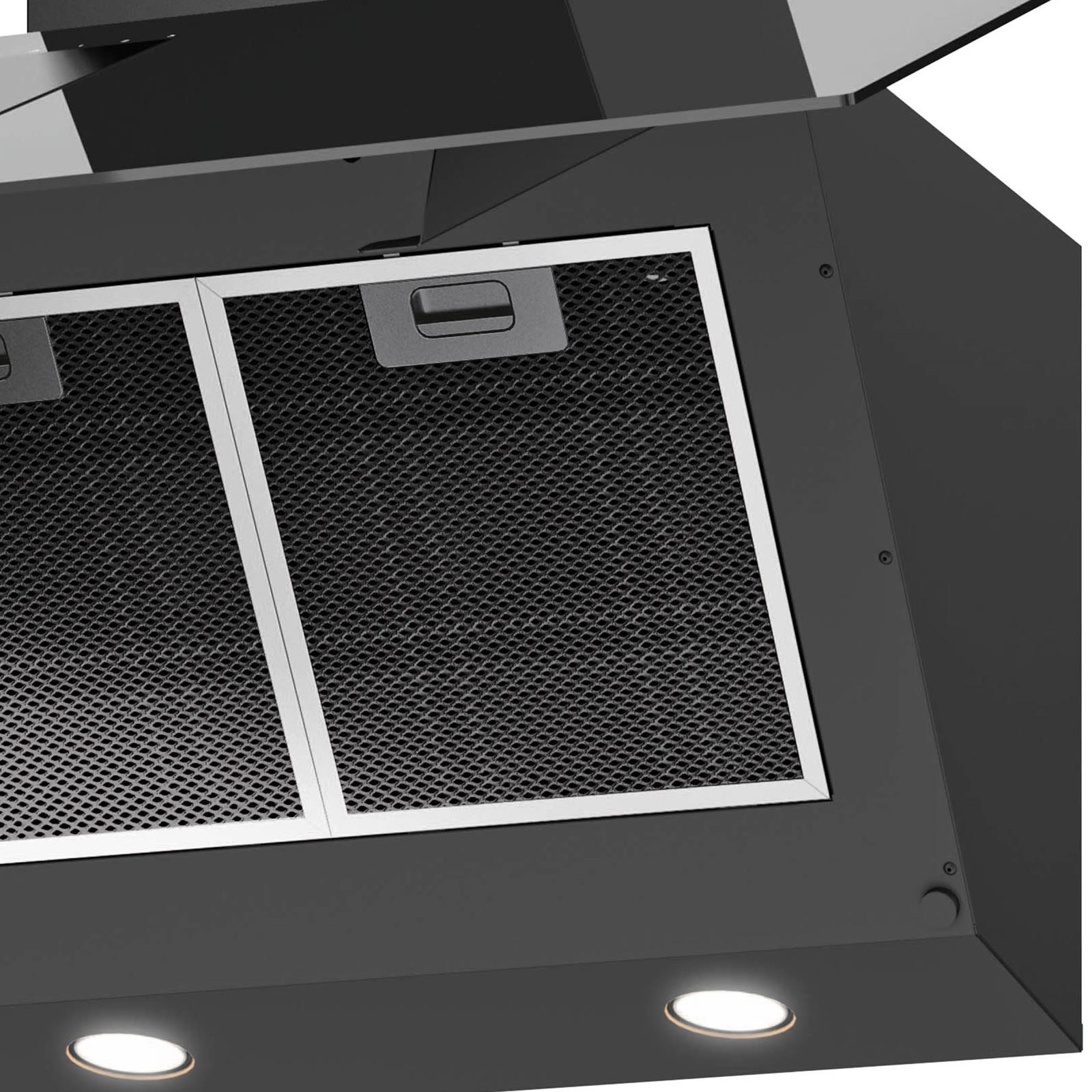 ✓ Kopffrei Haube mit Metall-Korpus, schwarzem Schacht, 3 Leistungsstufen und 2-facher LED Beleuchtung
