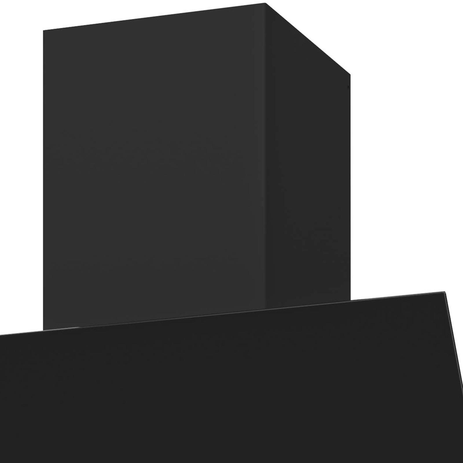 • EEK: B • EEK-Bereich: A+++-D • Gerätebreite: 75 cm • Breite: 746 mm • Höhe: 514 mm • Tiefe: 416 mm • Farbe: schwarz • Material: Edelstahl • Material Oberfläche: Glas • Bedienung: Touch-Control-Bedienung • Betrieb: Abluft • Ausführung: kopffrei - wandhängend • Installationsart: Wandmontage • Leistungsstufen: 3 • Besonderheit: mit schwarzem Schacht • Design: Ablufthaube