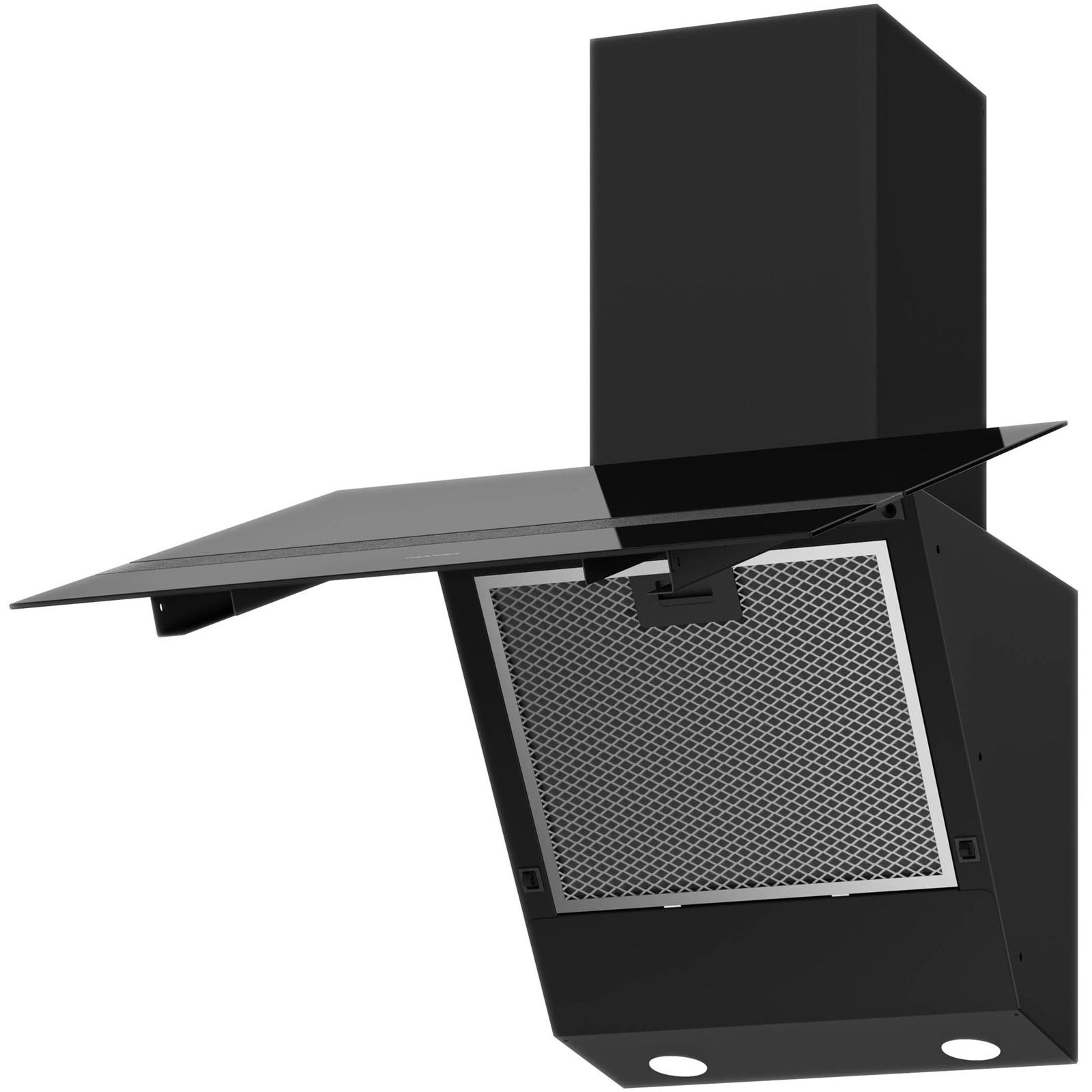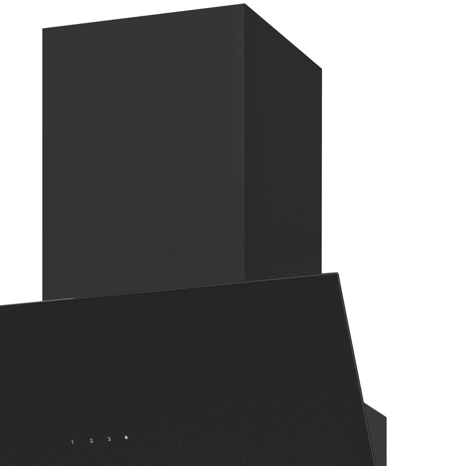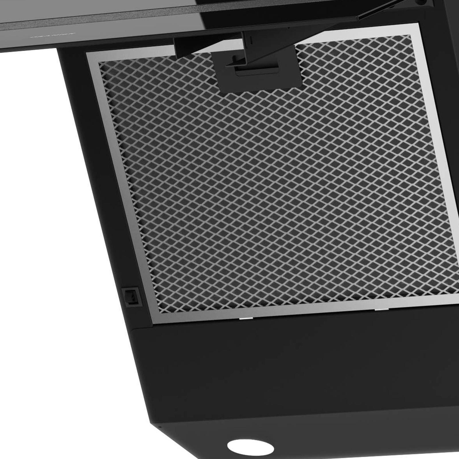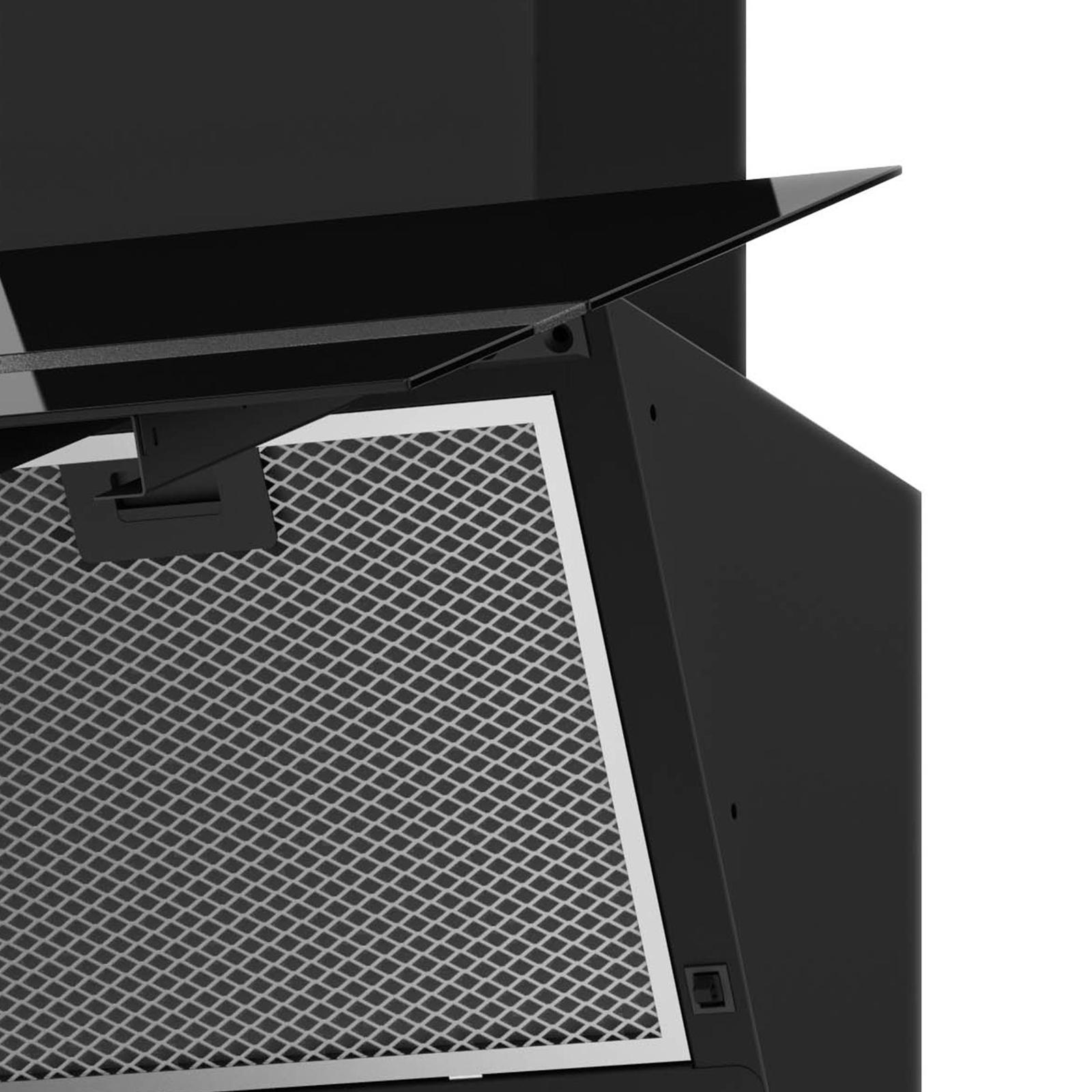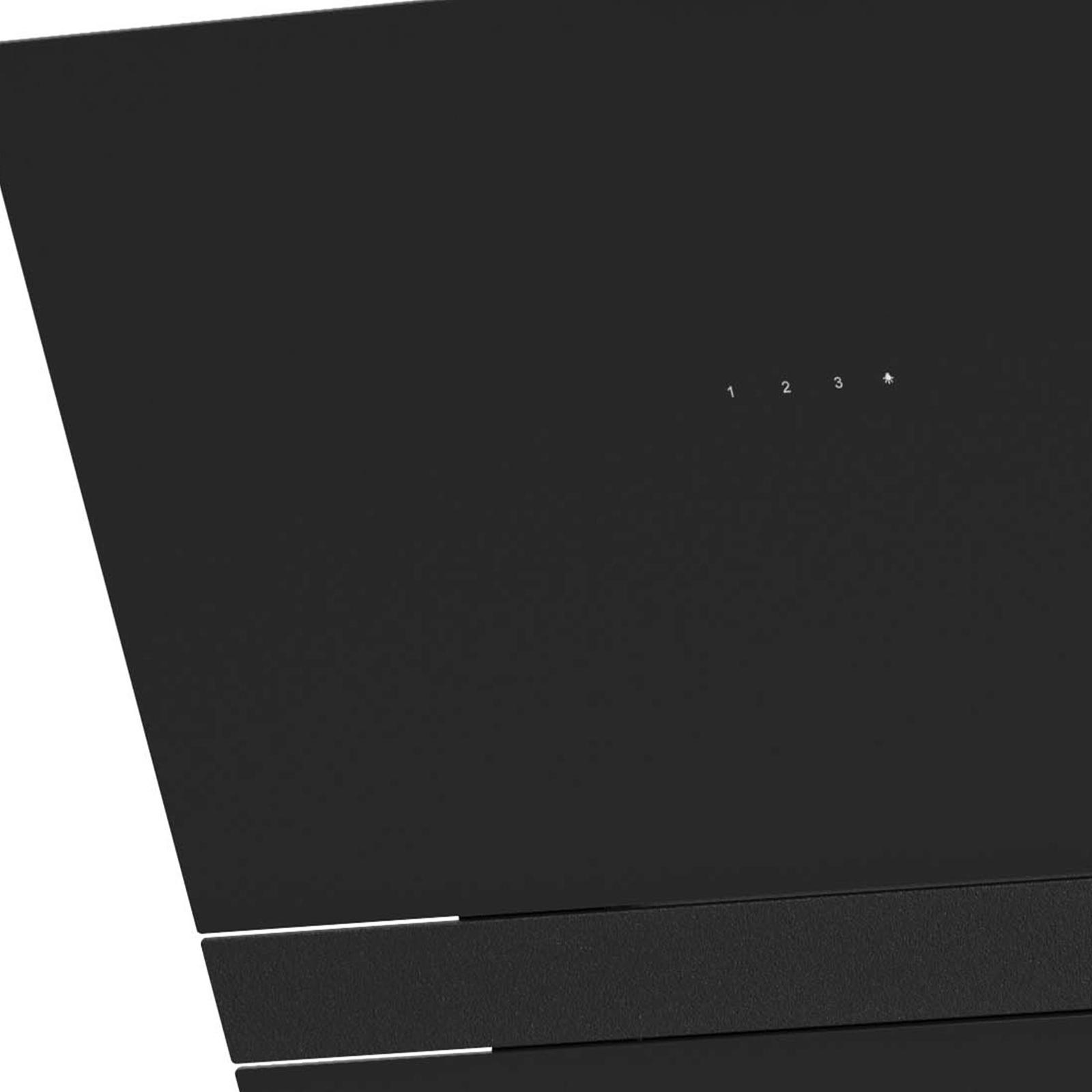 Produkt-Eigenschaften ✓ Dunstabzugshaube mit schwarzer Glasfront in schräger Form und Zierleiste - für freie Sicht am Kochfeld