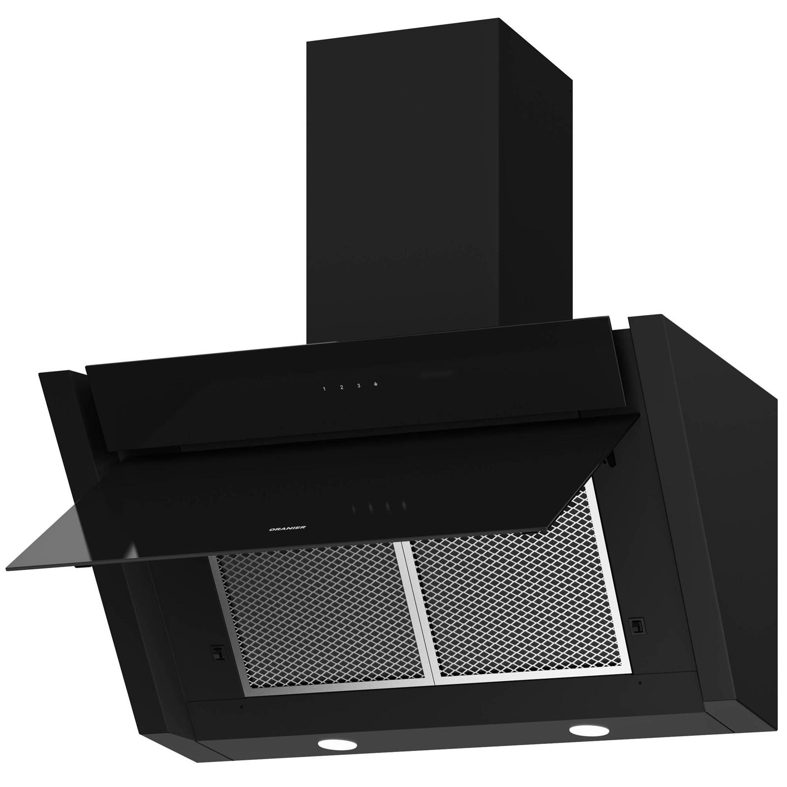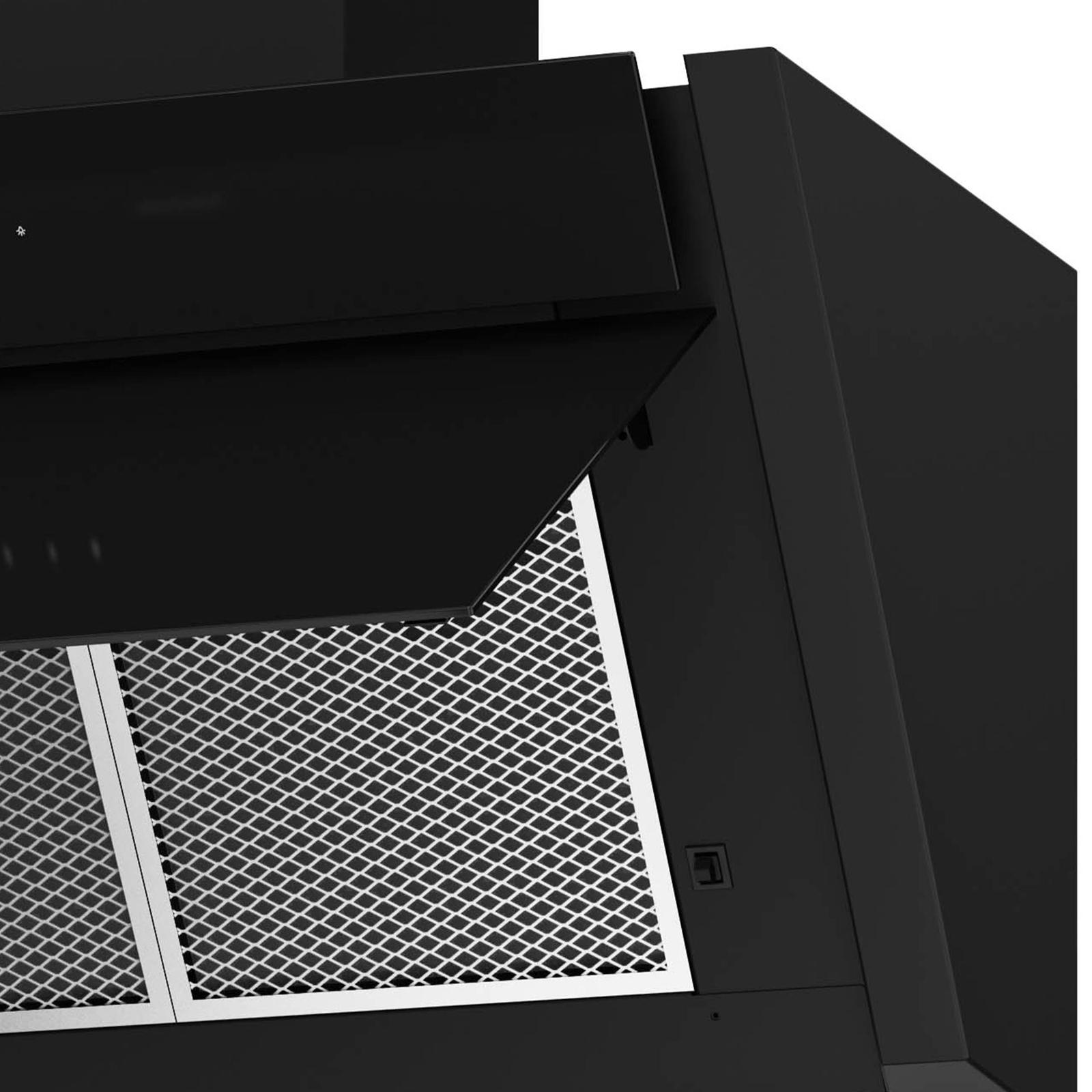 ✓ Kopffrei Haube mit Metall-Korpus, schwarzem Schacht, 3 Leistungsstufen und 2-facher LED Beleuchtung