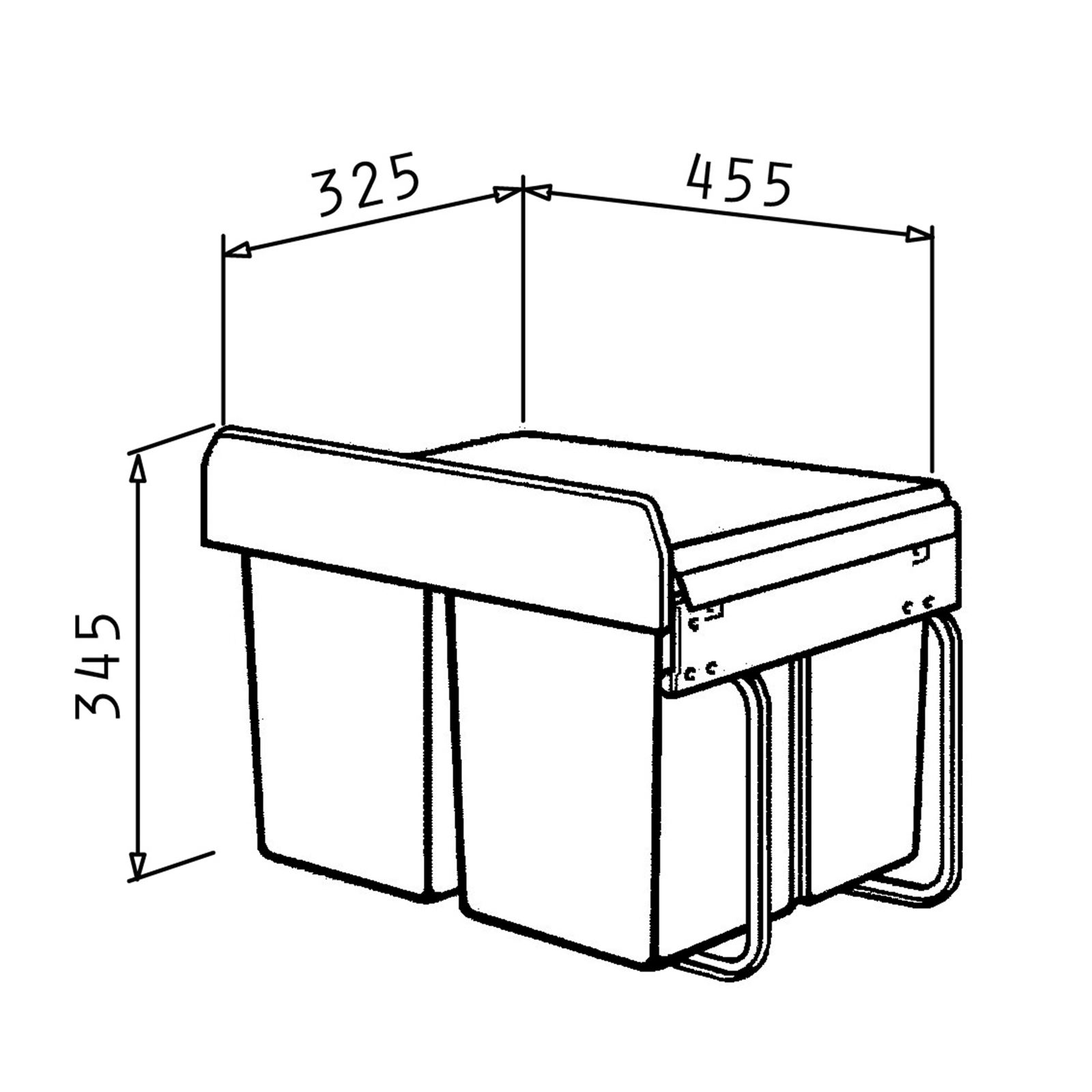 • Länge: 45.5 cm • Breite: 45.5 cm • Höhe: 34.5 cm • Tiefe: 32.5 cm • Innenraumvolumen: 2x 15 Liter • Farbe: alugrau • Material: Kunststoff • Installationsart: Einbau • Einsatzort: Küche • Montage: zum einbauen in einen Unterschrank • Gewicht: 5 Kg