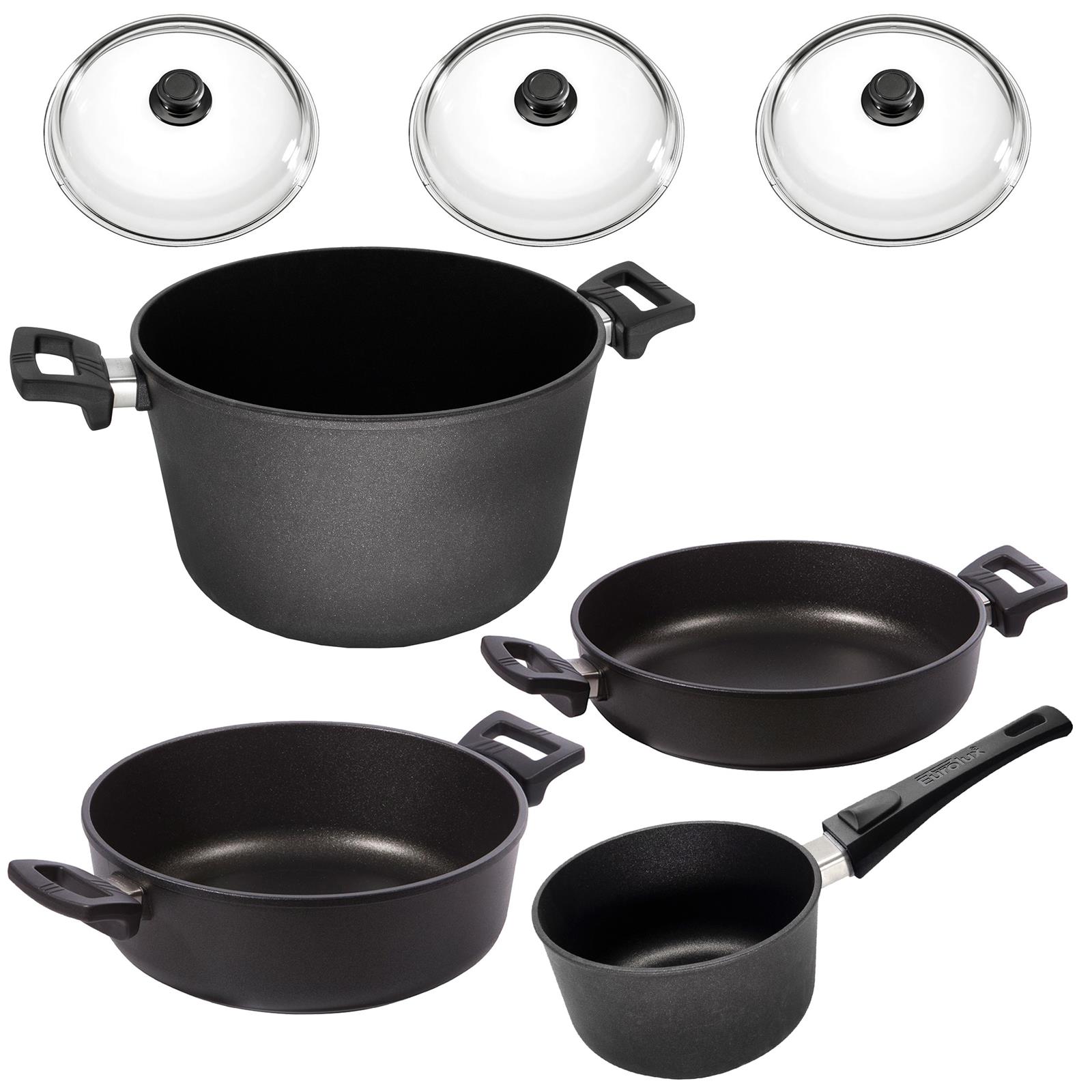 ✓ 7er Aluguss Topf-Set mit Kochtopf, Schmortopf, Kasserolle & Stieltopf & sehr guter Wärmespeicherung