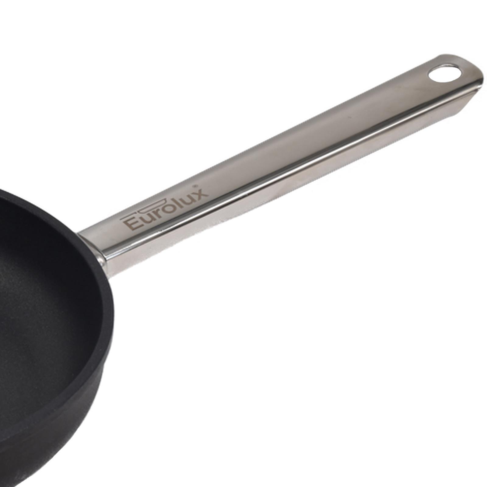 Eurolux große flache runde Guss Gastro Pfanne 32 cm beschichtet mit Edelstahlstiel Induktion (Art.-Nr.:EU132-3-ES)
