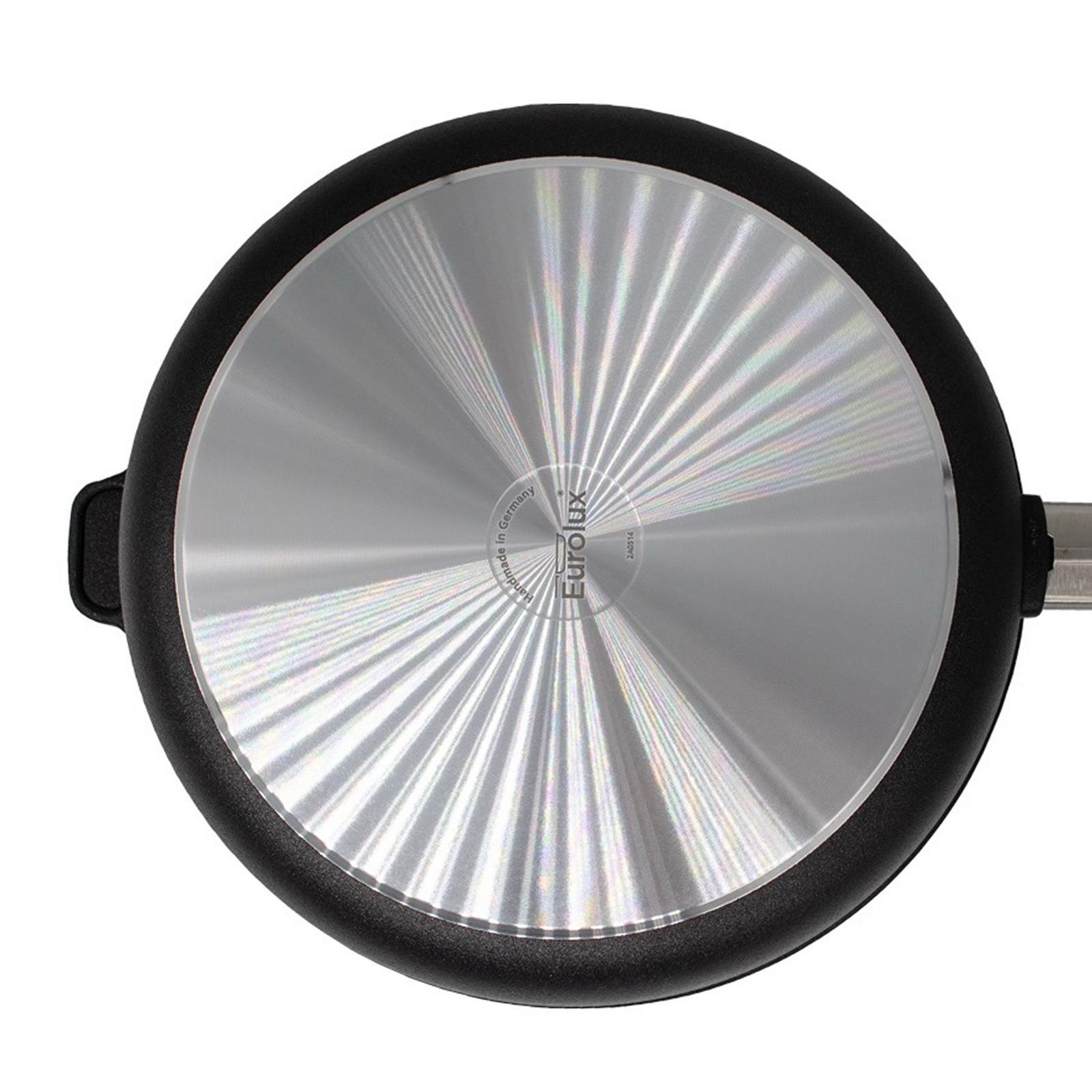 Eurolux große flache runde Gastro Pfanne 28 cm Guss beschichtet mit Edelstahlstiel ohne Induktion (Art.-Nr.:EU128-ES)
