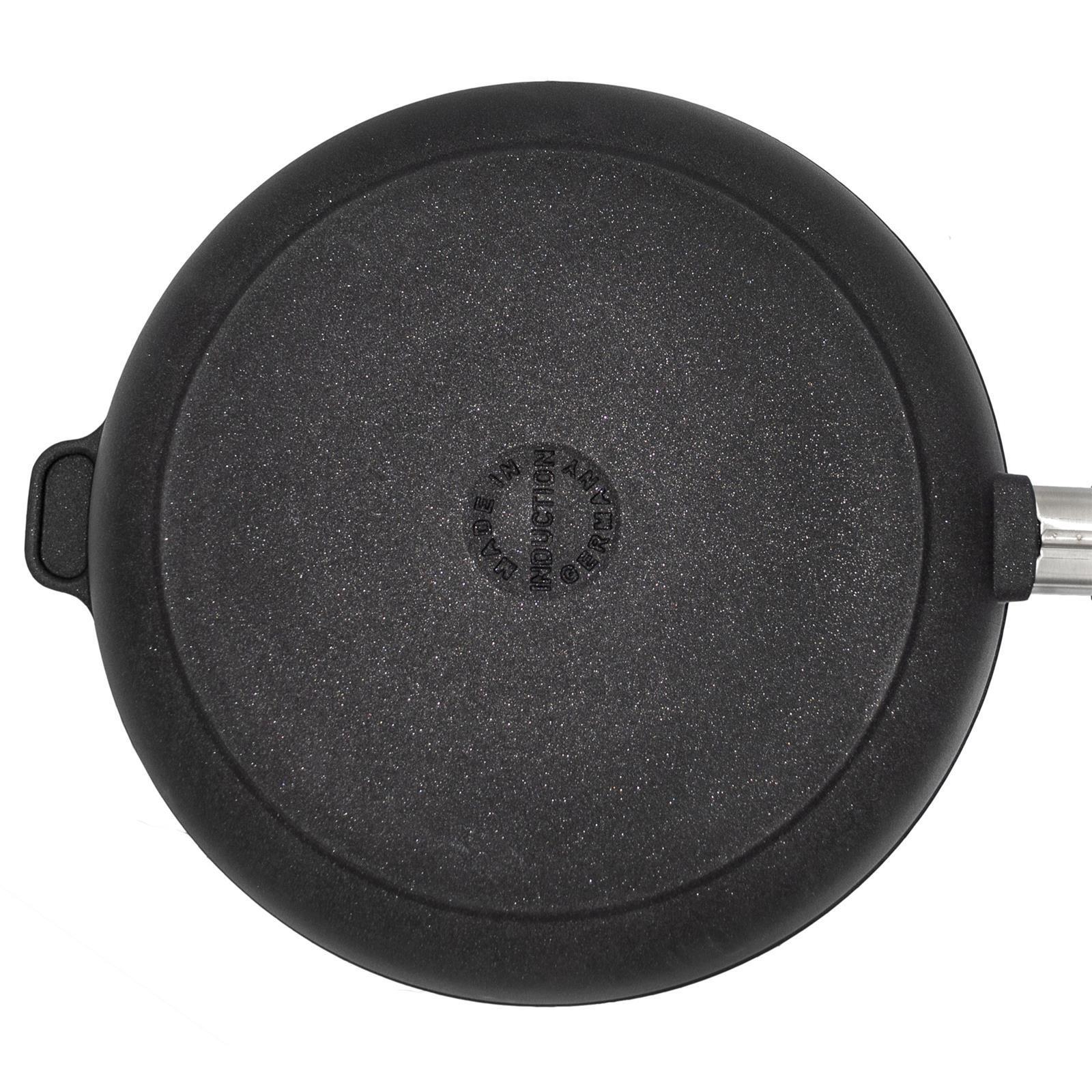 Diese induktive Pfanne ist dank der Strapazierbarkeit, der guten Wärmeleitfähigkeit und der vorteilhaften Beschichtung auch in der Gastronomie, in Hotels sowie in Großküchen ein gern benutztes Kochgeschirr.
