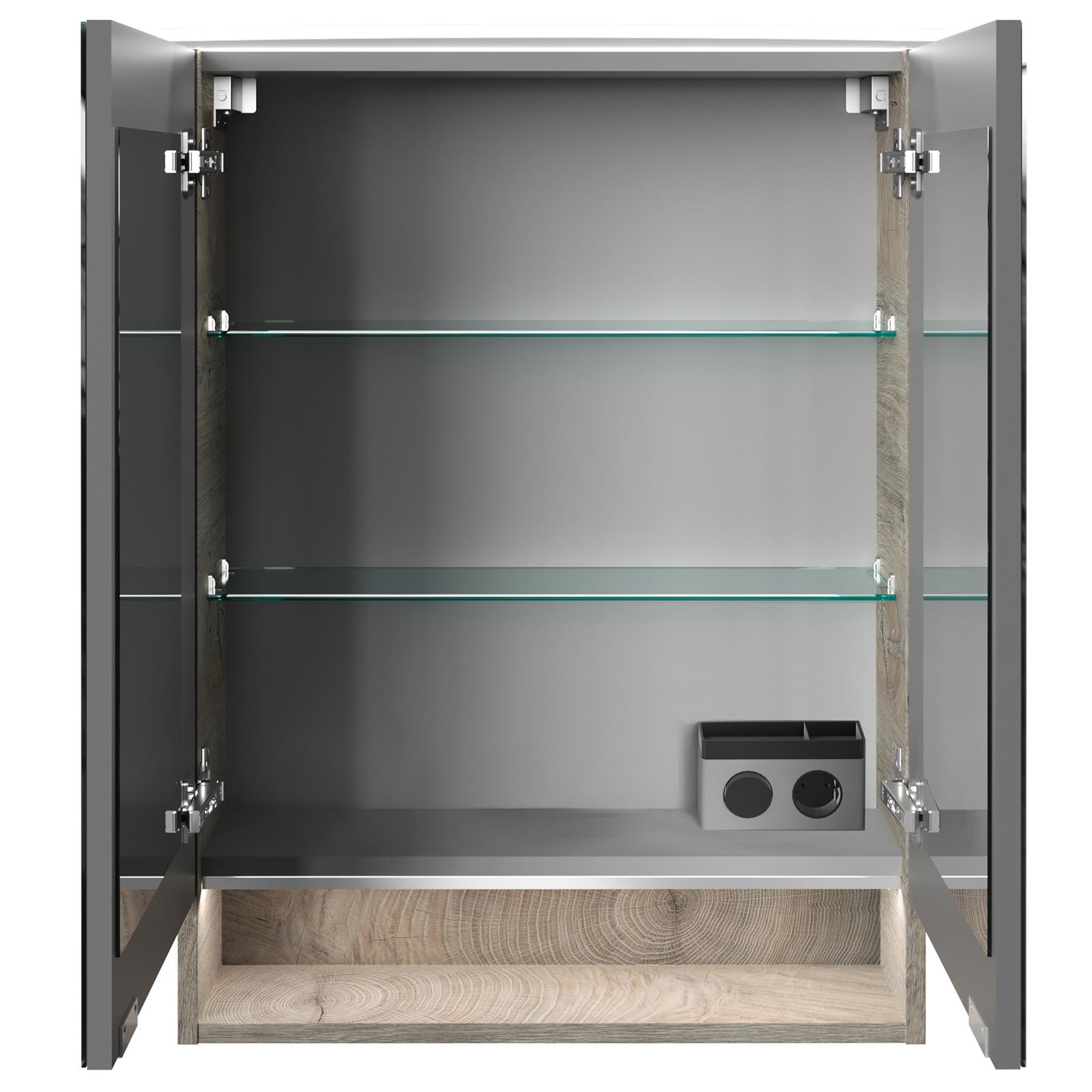 ☛ Oberfläche Korpusoberfläche matt Korpusdekor Nature Oak Korpus feuchtraumoptimierte Holznachbildung ☛ Beleuchtung LED-Paneel-Leuchte LED wechselbar 230 V Anschluss 6+2.7 W Leistung 1 m Anschlusskabel ☛ Ausstattung 2 Tür/en 2 Glasböden Steckdose/Schalter rechts unten chromglänzende Griffe Korpus mit Dickkante wasserfeste quellsichere Verleimung abgerundeter Kantenabschluss gedämpfte Scharniere ☛ Besonderheiten Spiegel mit 3D-Effekt beide Türen mit Innenspiegel Querteile & Rückwand silbergrau Achtung: seitlicher Abstand zur Wand mind. 8 cm