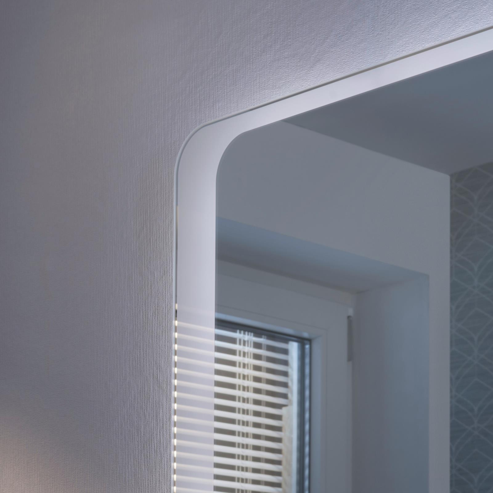 Das hochwertige 3 tlg.-Badeinrichtungsset liefert Ihnen zusätzlich einen eckigen 80 cm breiten Design-Badspiegel mit integrierten Lichtrand aus LED auf der Rückseite des Spiegelelements für ein perfektes Rund-um-Styling und blendfreies indirektes Licht. Das LED-Leuchtmittel des eckigen Styling-Badspiegels ist problemlos austauschbar. Das edle schlanke Spiegel-Element mit wellenförmigen umlaufenden Rahmenprofil im zeitlosen Alu-Design hat eine satinierte Strukturoptik auf der Spiegelfläche, die spezielle Fertigung verleiht dem Spiegel eine angenehme Lichtstimmung und die Spiegelfläche bleibt glatt, so bleibt die einfache Reinigung erhalten.