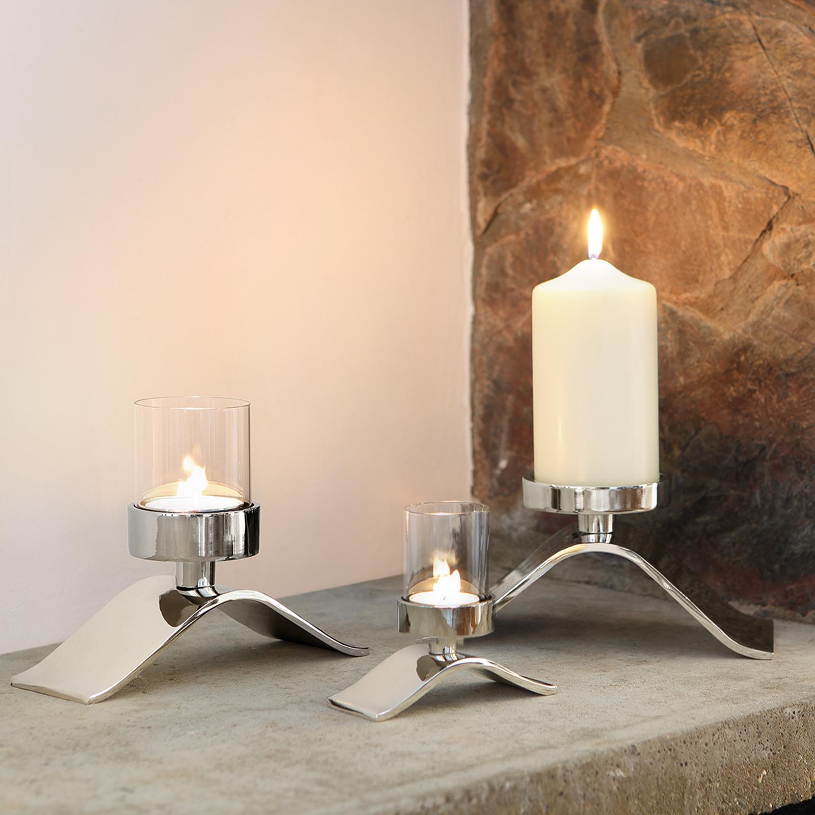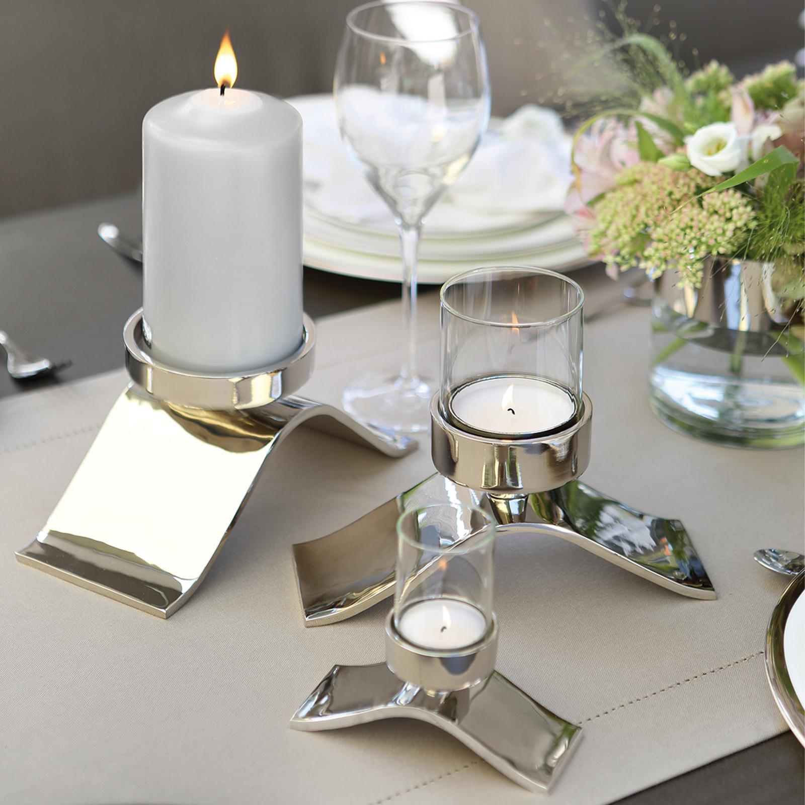 ✓ Moderner Teelichthalter - Aluminium-Korpus mit geschwungener Wellenform und klarem Glaszylinder ✓ Hochwertiger Kerzenständer - glänzend poliert, stabil gefertigt, ideal für kleine Kerzen oder Teelichter ✓ Stilvolles Designobjekt - vereint Eleganz sowie Funktion für Wohnzimmer, Esszimmer oder Sideboard ✓ Glasaufsatz schützt die Flamme - für stimmungsvolle Lichtakzente und ein warmes Ambiente im Raum ✓ Vielseitiger Kerzenleuchter - edles Wohnaccessoire für Tischdeko, Fensterbank oder festliche Anlässe