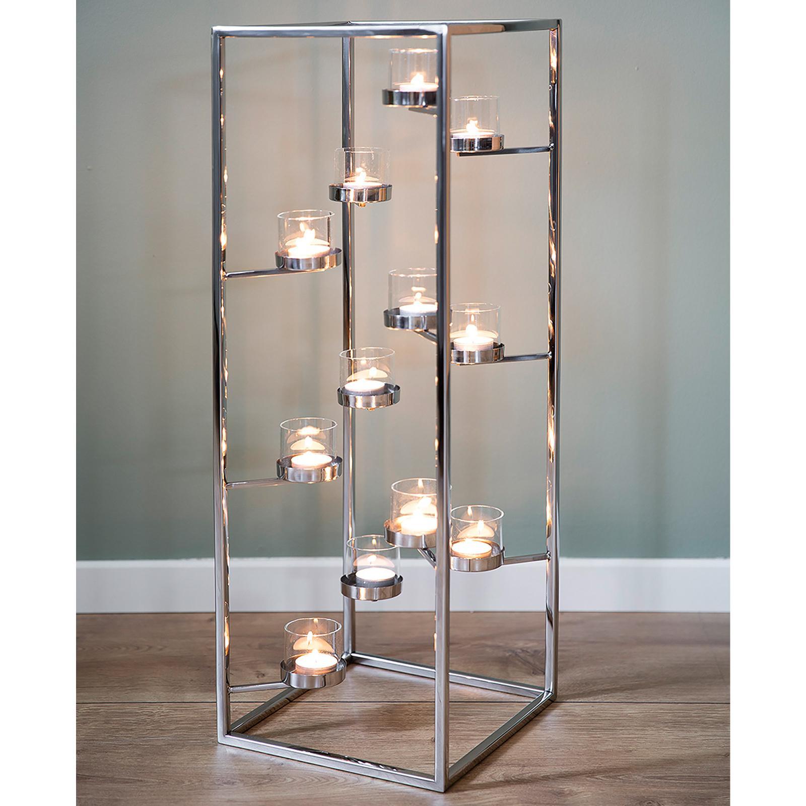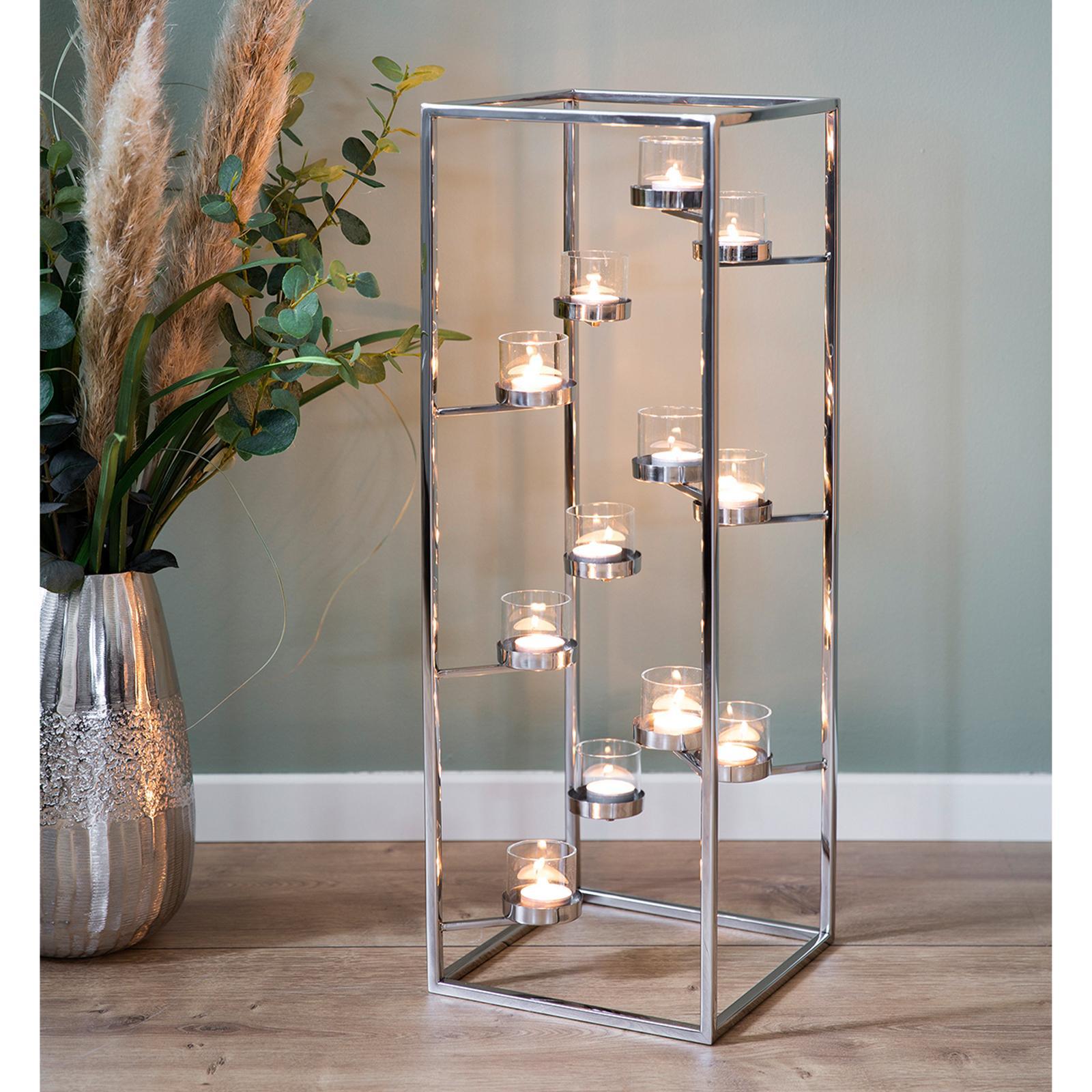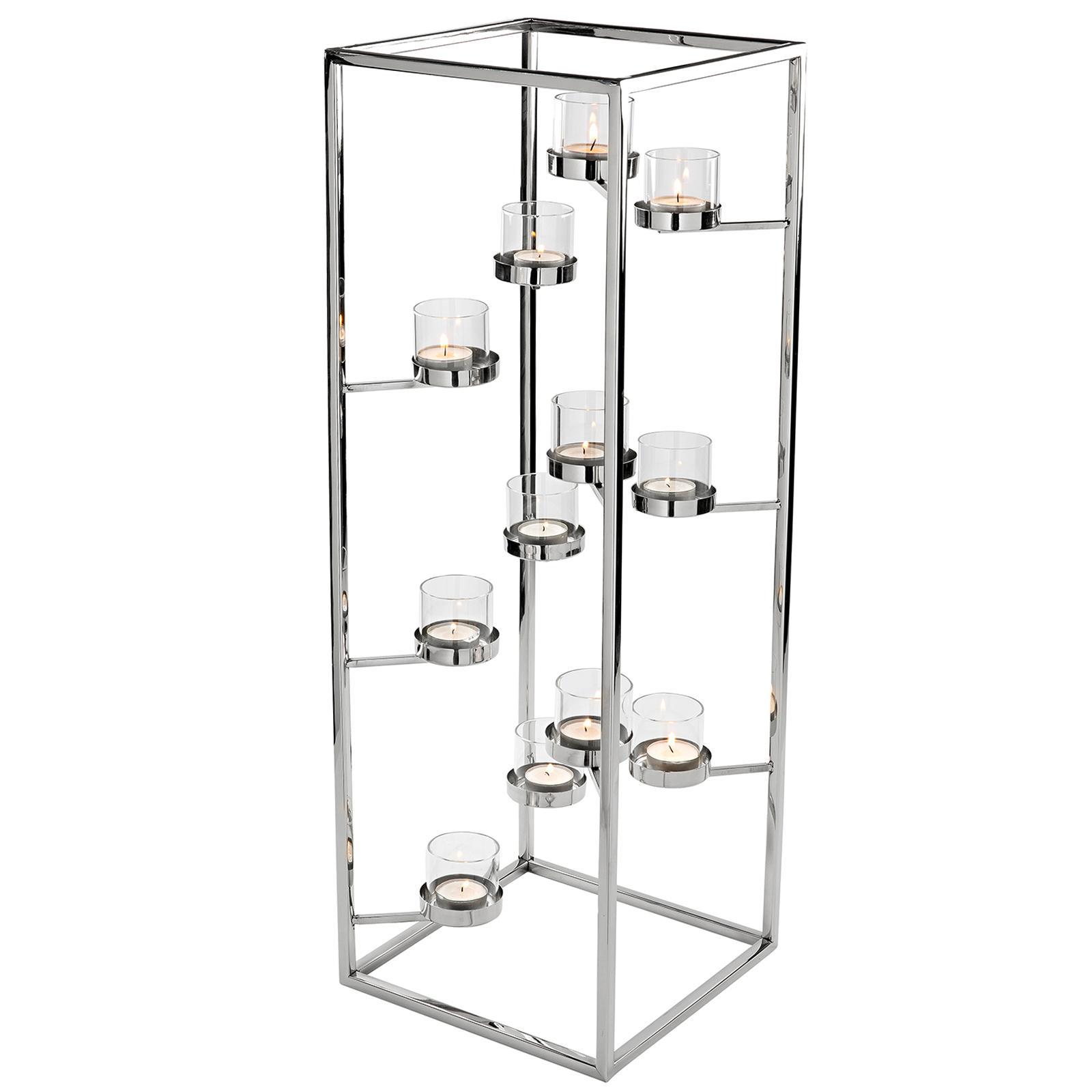 • Länge ca.: 24 cm • Breite ca.: 24 cm • Höhe ca.: 70 cm • Serie: Fink Living • Kapazität: für 12 Teelichter • Material: Edelstahl • Material 1: Glas • Oberfläche: glänzend poliert • Oberfläche Details: glatt • Farbe: silber • Eigenschaft: mit 12 Aufsatz-Glaszylinder • Ausstattung: Glaszylinderboden geschlossen • Form: eckig • Dimension: groß • Umgebungsnutzung: Für Außenbereich und Innenbereich • Anlass: Hochzeiten, Deko, Wellnes & Entspannung, Geschenkidee • Nutzungsbereich: Tischdekoration, Buffets, Wohnzimmer • Gewicht ca.: 1,72 Kg