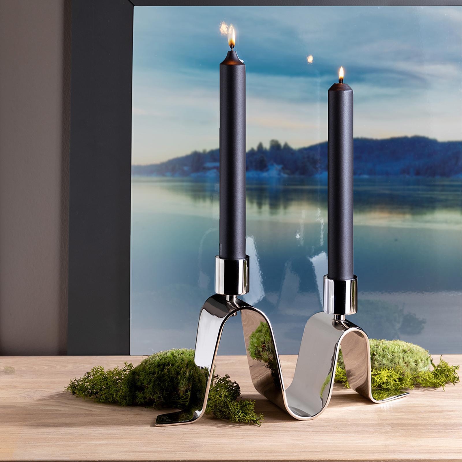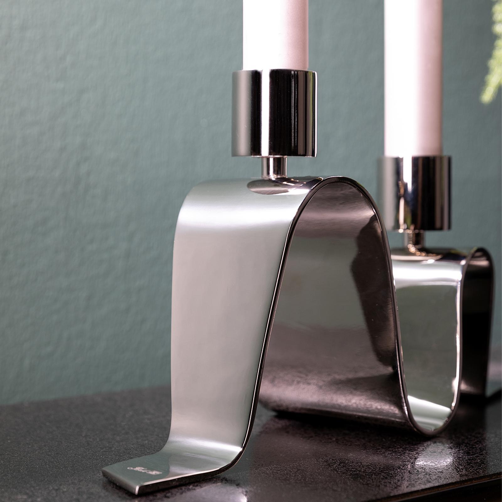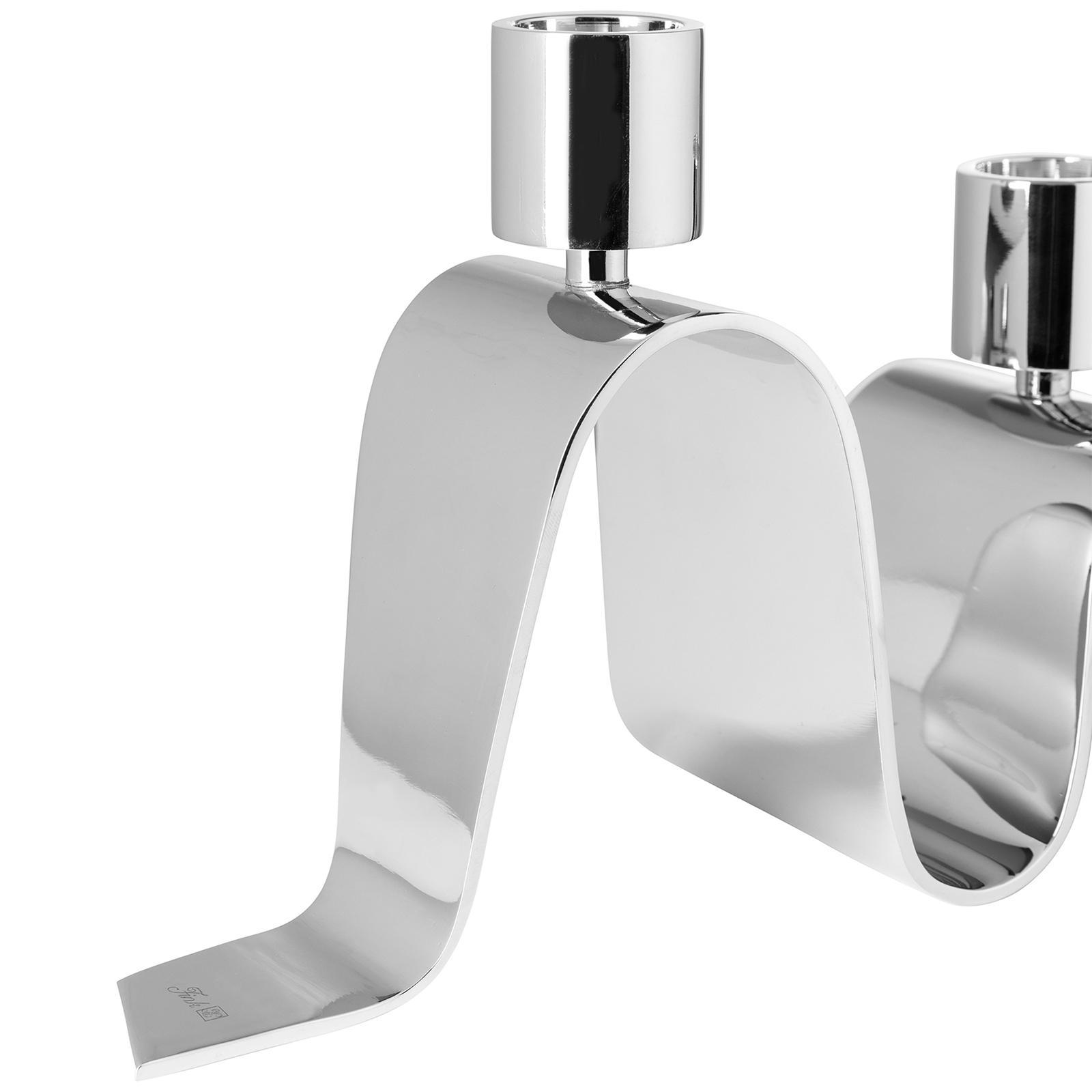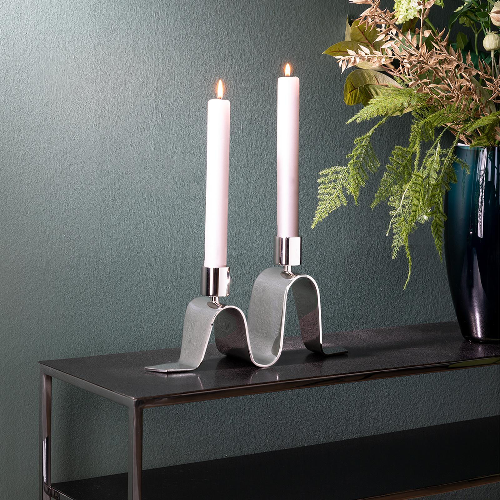 ✓ Moderner 2-flg. Kerzenhalter aus Aluminium mit eleganter Wellenform für eine edle Tischdekoration ✓ Die glänzend vernickelte Oberfläche reflektiert Kerzenlicht stimmungsvoll & verleiht luxuriösen Glanz ✓ Das wellenförmige Design vereint Eleganz und Stabilität - ein stilvoller Blickfang für jeden Wohnraum ✓ Der flache & breite Stil passt ideal auf Esstische oder Sideboards und wirkt dabei harmonisch modern ✓ Edler Design-Leuchter für Stabkerzen - perfekt, um stilvolle Akzente in modernen Interiors zu setzen