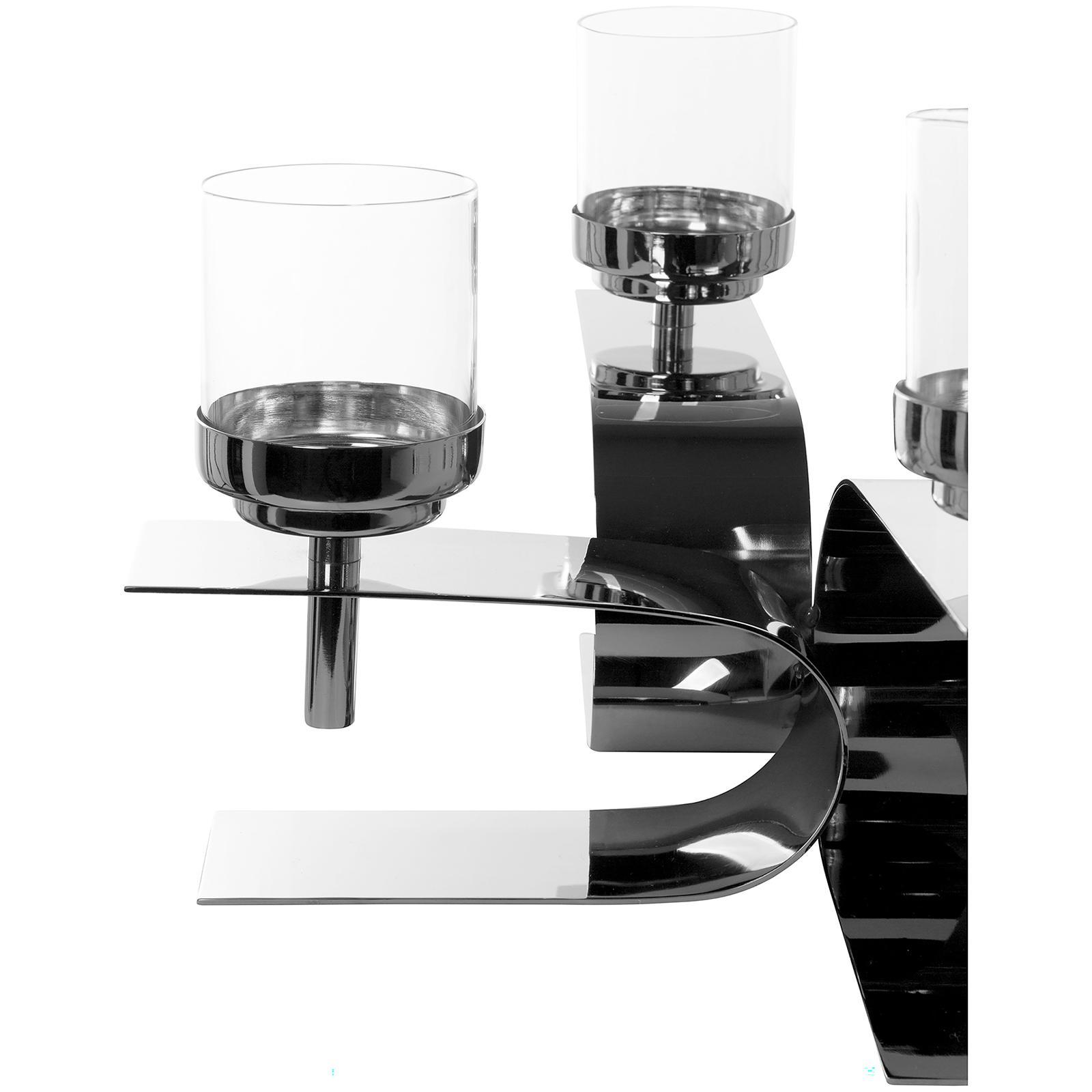 • Länge ca.: 42 cm • Breite ca.: 42 cm • Höhe ca.: 23 cm • Durchmesser ca.: 42 cm • Serie: Fink Living • Kapazität: für 4 Stumpenkerzen Ø 8 cm oder Teelichter • Ausführung: Kerzenhalter mit unterschiedlichen Höhen • Material: Aluminium • Material 1: Edelstahl-Glas • Veredelung: vernickelt • Oberfläche: glänzend poliert • Oberfläche Details: glatt • spülmaschinengeeignet: nein • Farbe: silber • Ausstattung: mit geschwungenem Standfüßen • Ausstattung 1: mit 4 Aufsatz-Glaszylinder (Boden geschlossen) • Dimension: groß • Look & Stil: modern • Umgebungsnutzung: Für Innenbereich • Anlass: Stimmungsvolle Alltags-Momente, Saisonale Deko, Wohnambiente • Nutzungsbereich: Sideboard, Fensterbank, Tischdekoration, Anrichte