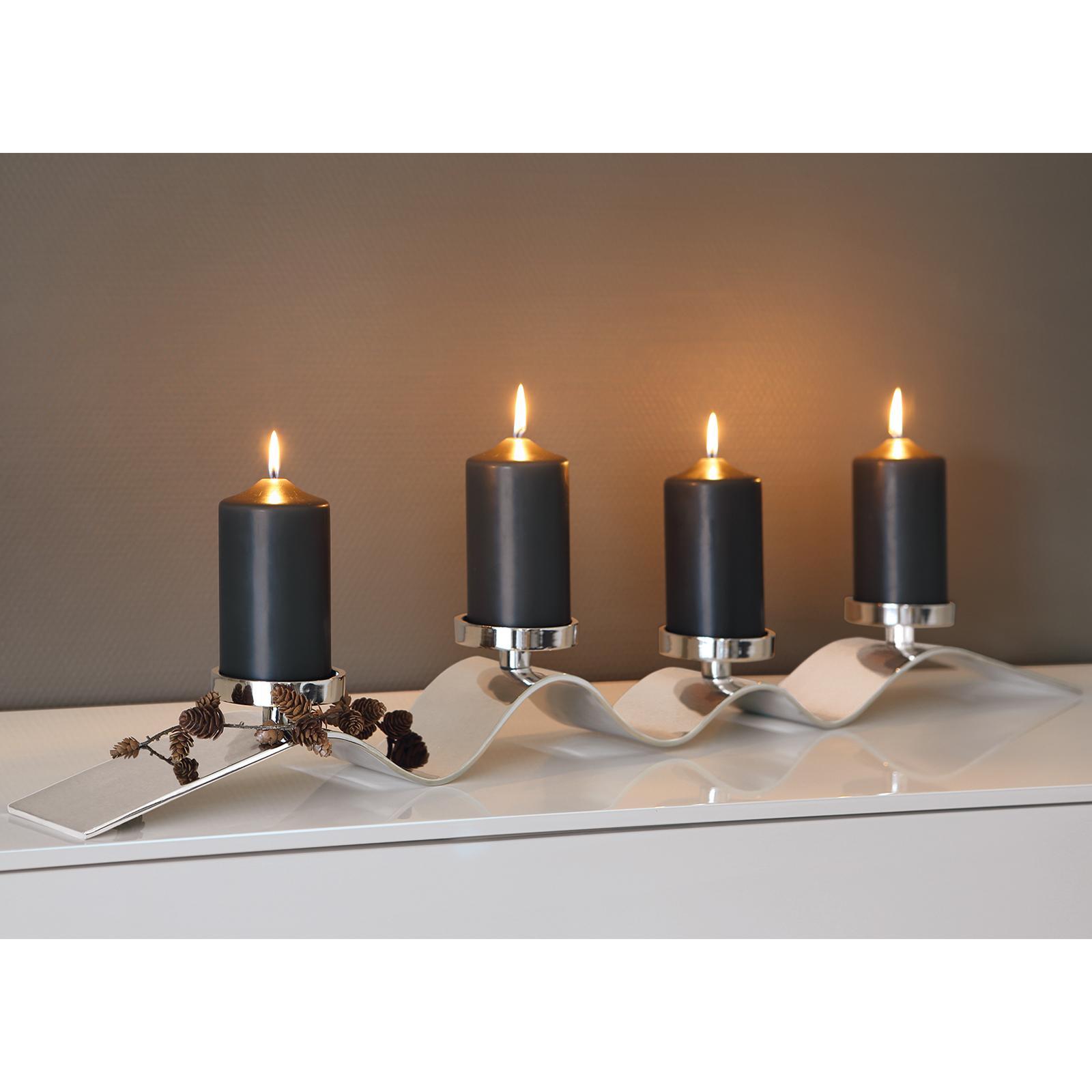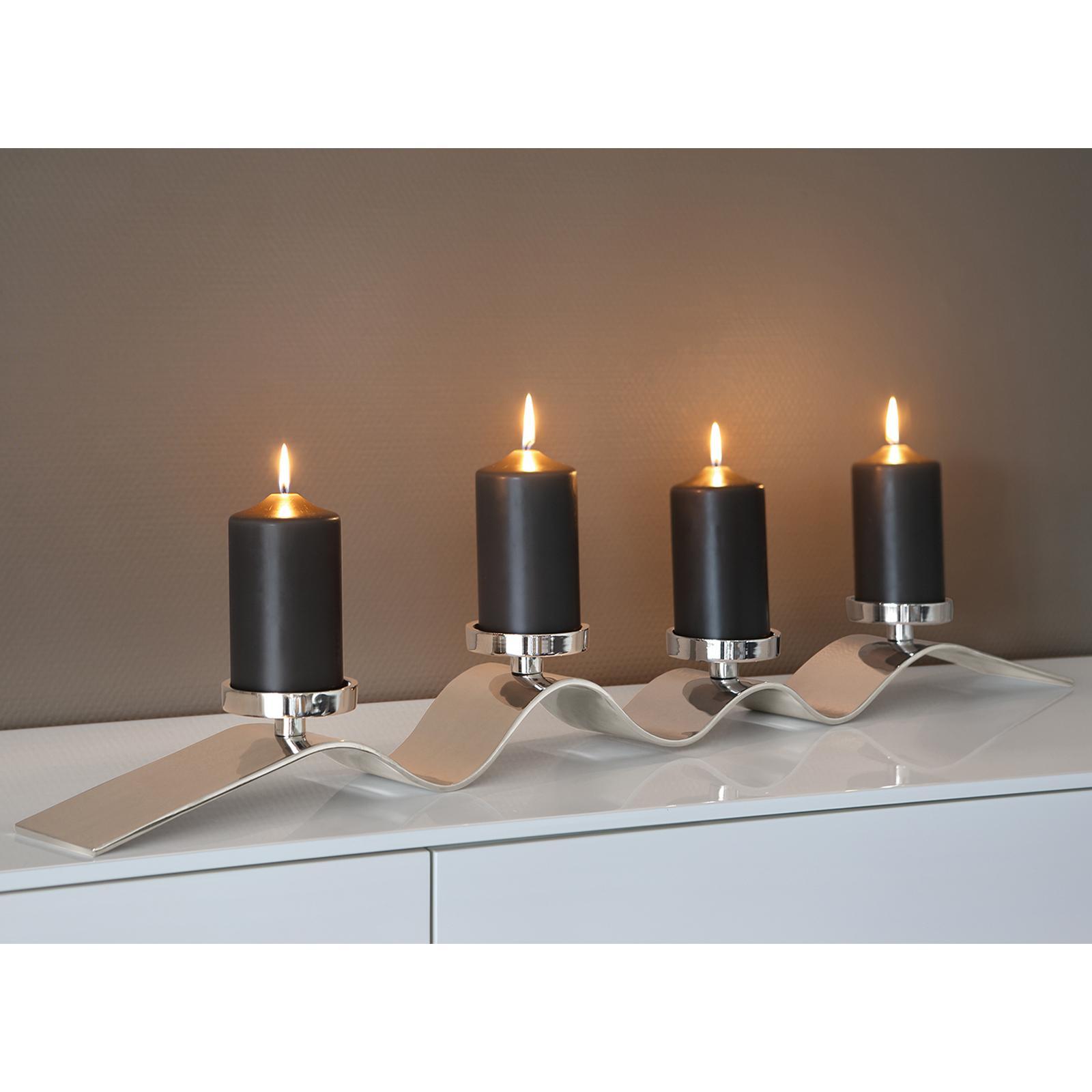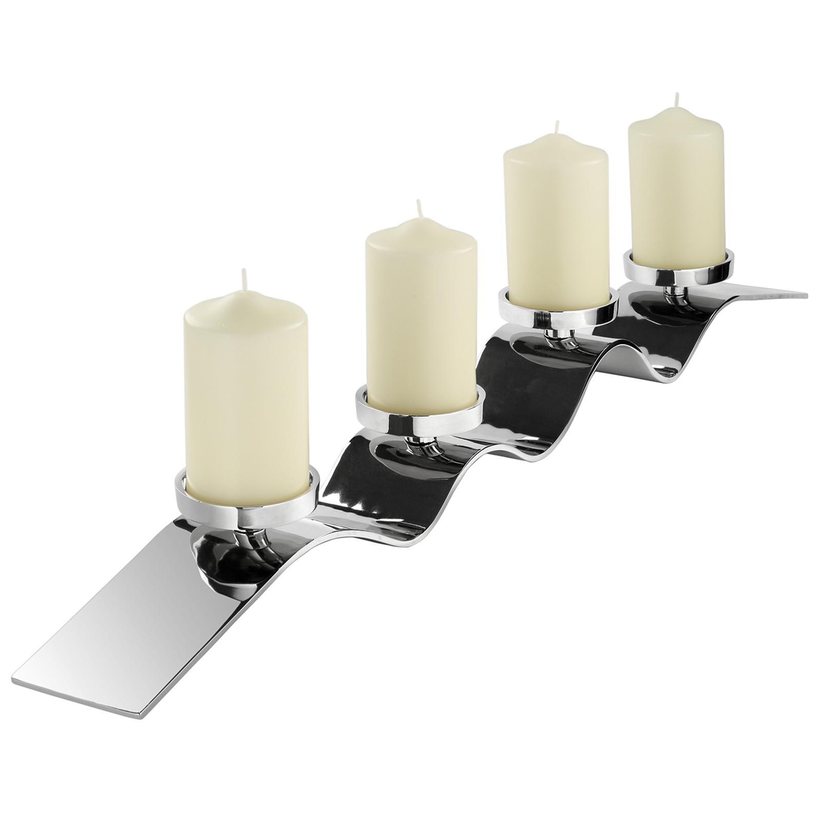 • Länge ca.: 105 cm • Breite ca.: 10 cm • Höhe ca.: 9,5 cm • Serie: Fink Living • Kapazität: für 4 Stumpenkerzen Ø 8 cm • Material: Aluminium • Veredelung: vernickelt • Oberfläche: glänzend poliert • Oberfläche Details: glatt • Farbe: silber • Eigenschaft: ohne Aufsatz-Glaszylinder • Form: wellenform • Dimension: extra groß • Umgebungsnutzung: Für Innenbereich • Anlass: Hochzeiten, abendliche Entspannung, Dekoration, Dinner & Brunch • Nutzungsbereich: Sideboard, Fensterbank, Tischdekoration, Anrichte • Nutzungsmöglichkeit: Dekoration, Teelichter, Kerzen • Gewicht ca.: 3,22 Kg