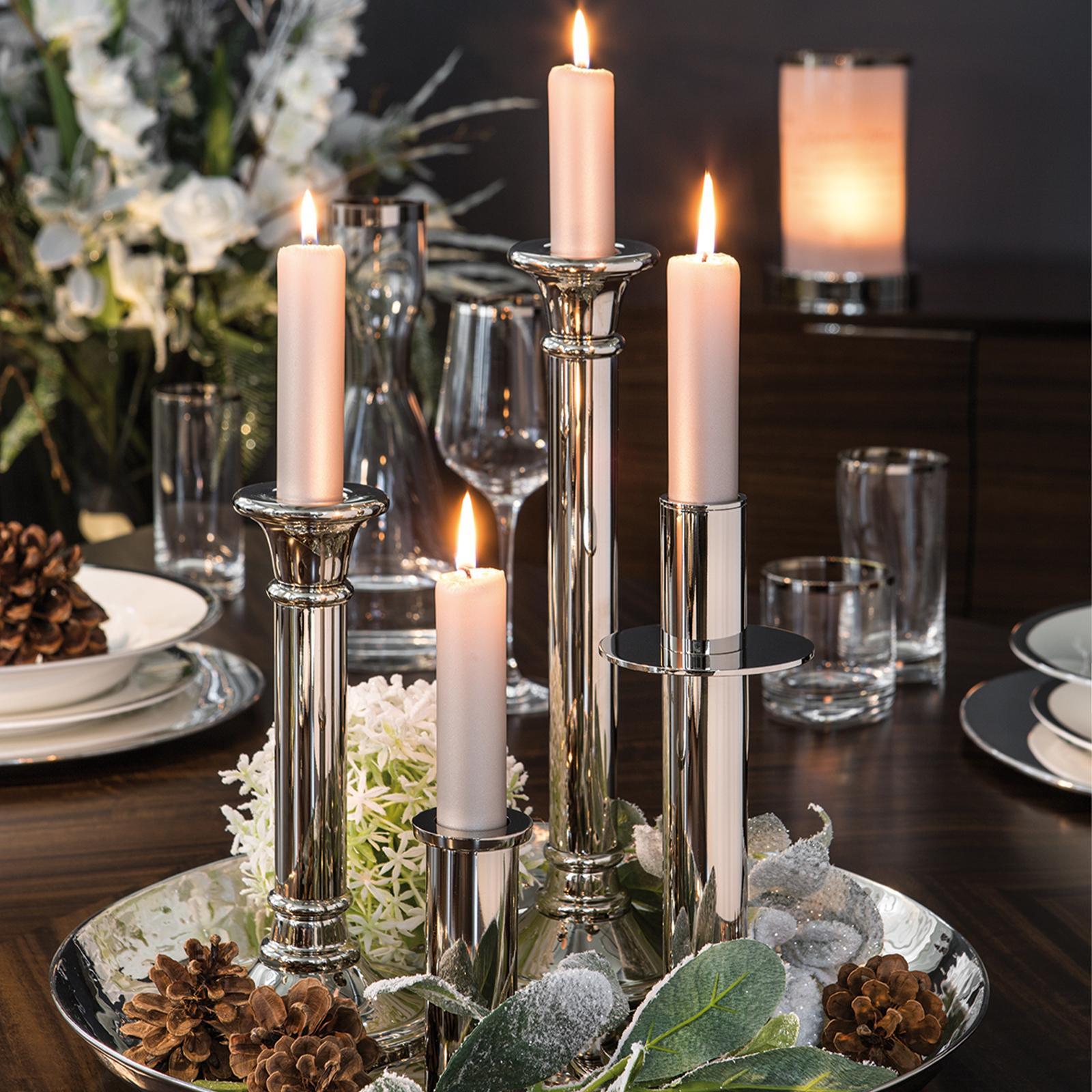 ✓ Silberner Kerzenhalter in glänzenden Design, ideal als stilvolles Wohnaccessoire & zeitloser Leuchter ✓ Der Kerzenständer beeindruckt mit einem strahlenden Finish und verleiht eine elegante Ausstrahlung ✓ Mit seiner Höhe von 12 cm bietet der Halter Platz für Stabkerzen unterschiedlicher Größen und Formen ✓ Kerzenleuchter als dekorativer Blickfang auf Esstisch, Sideboard und bei festlichen Anlässen im Alltag ✓ Der runde Kerzenhalter-Fuß sorgt für einen sicheren Stand und ergänzt das stillvolle, schlichte Design