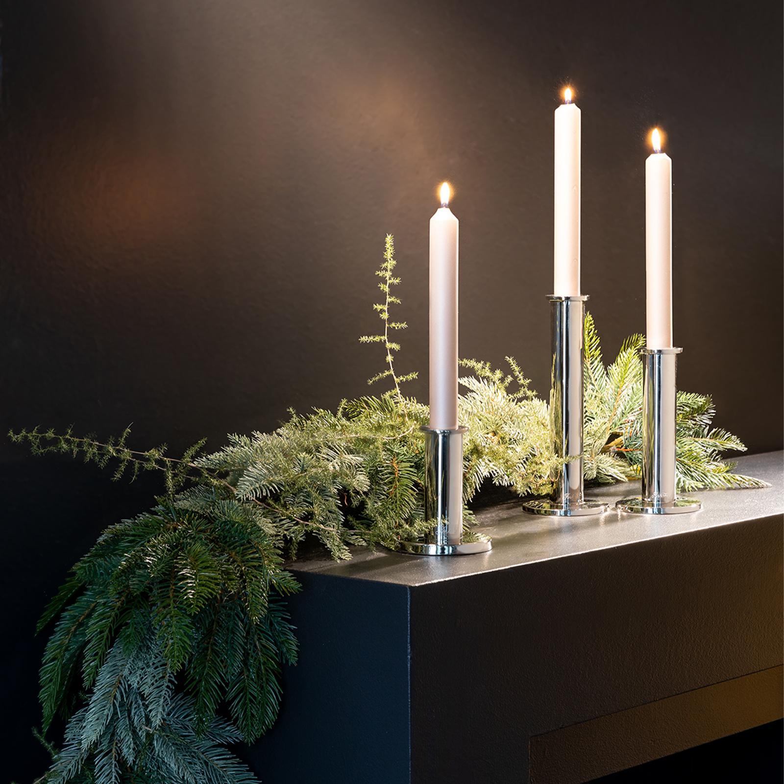 ✓ Silberner Kerzenhalter in glänzenden Design, ideal als stilvolles Wohnaccessoire & zeitloser Leuchter ✓ Der Kerzenständer beeindruckt mit einem strahlenden Finish und verleiht eine elegante Ausstrahlung ✓ Mit seiner Höhe von 24 cm bietet der Halter Platz für Stabkerzen unterschiedlicher Größen und Formen ✓ Kerzenleuchter als dekorativer Blickfang auf Esstisch, Sideboard und bei festlichen Anlässen im Alltag ✓ Der runde Kerzenhalter-Fuß sorgt für einen sicheren Stand und ergänzt das stillvolle, schlichte Design