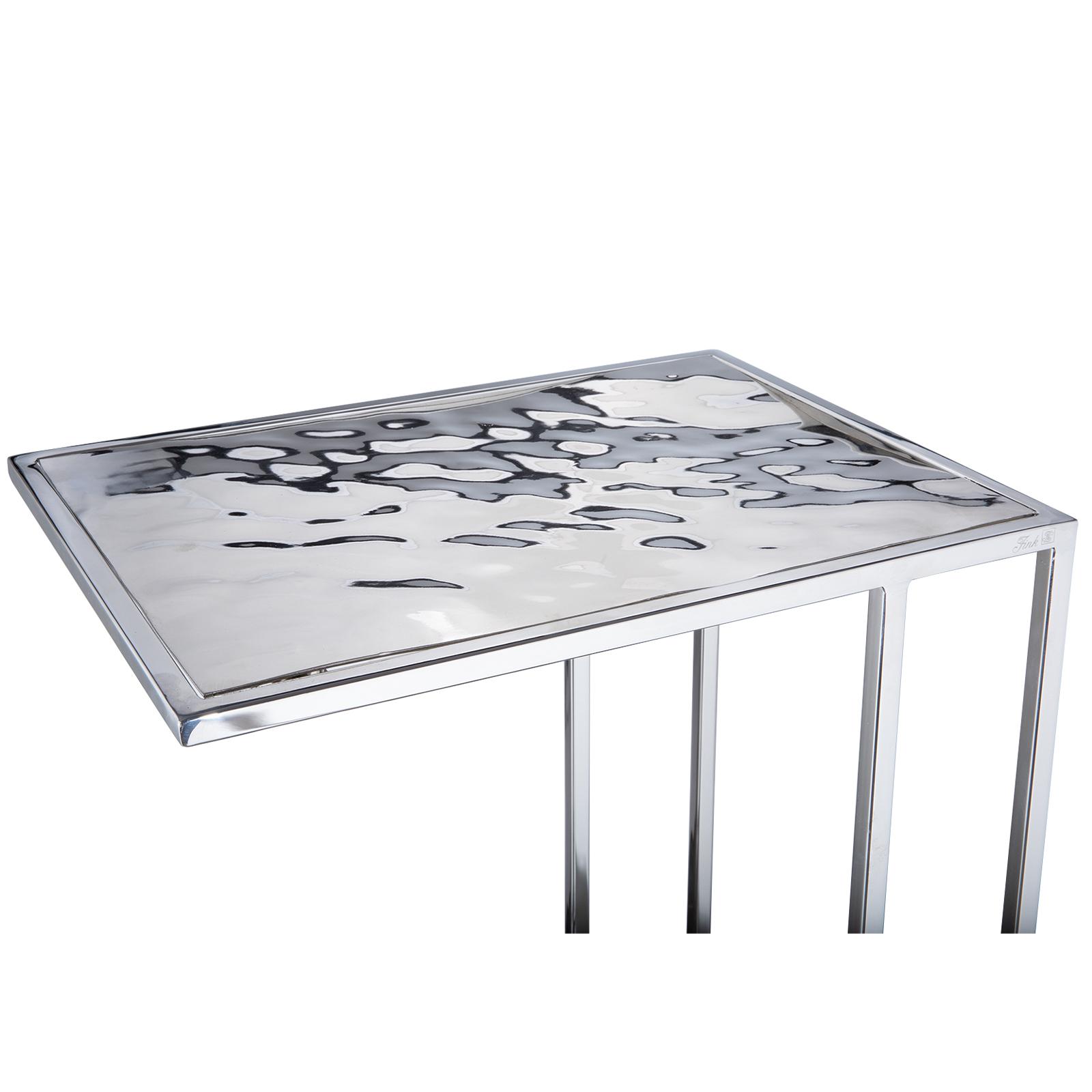 • Länge ca.: 30 cm • Breite ca.: 40 cm • Höhe ca.: 55,5 cm • Serie: Fink Living • Material: Aluminium • Material 1: Edelstahl • Veredelung: vernickelt • Oberfläche: glänzend • spülmaschinengeeignet: nein • Farbe: silber • Form: eckig • Dimension: groß • Umgebungsnutzung: Für Innenbereich