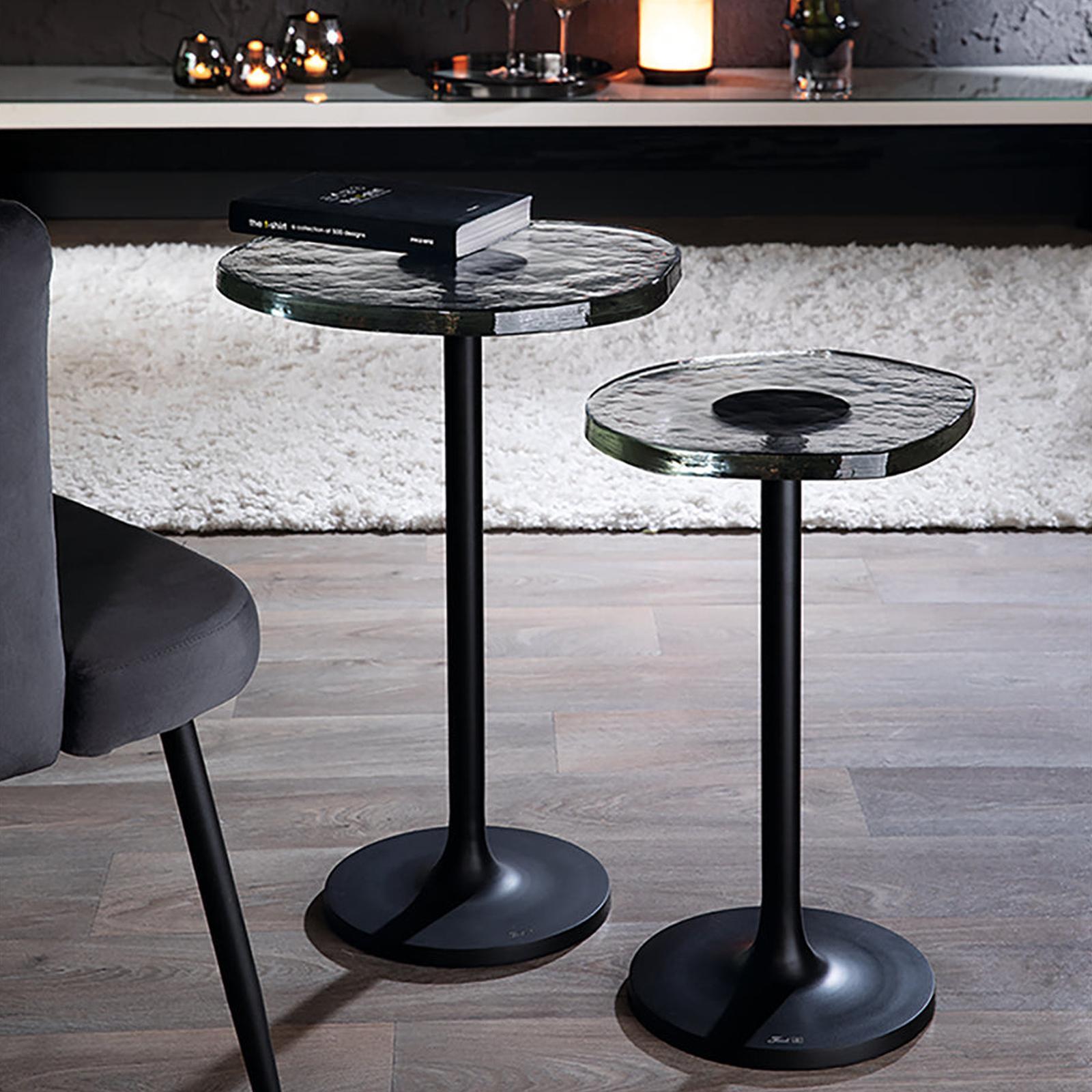 ✓ Runder Glas-Beistelltisch mit ca. 58 cm Höhe und 32 cm Tischdurchmesser für kompakte Ablageflächen ✓ Schwarzes Tischgestell aus pulverbeschichtetem Aluminium mit stabiler Säule und rundem Standfuß ✓ Glas Tischplatte mit gleichmäßig geriffelter Oberfläche für eine sichtbare Struktur und dezente Optik ✓ Abstelltisch ideal neben Sofa, Sessel oder Wandflächen für Dekoration und auch Alltagsgegenstände ✓ Geeignet für Wohnräume, Empfangsbereiche oder andere Innenräume sowie flexibel kombinierbar