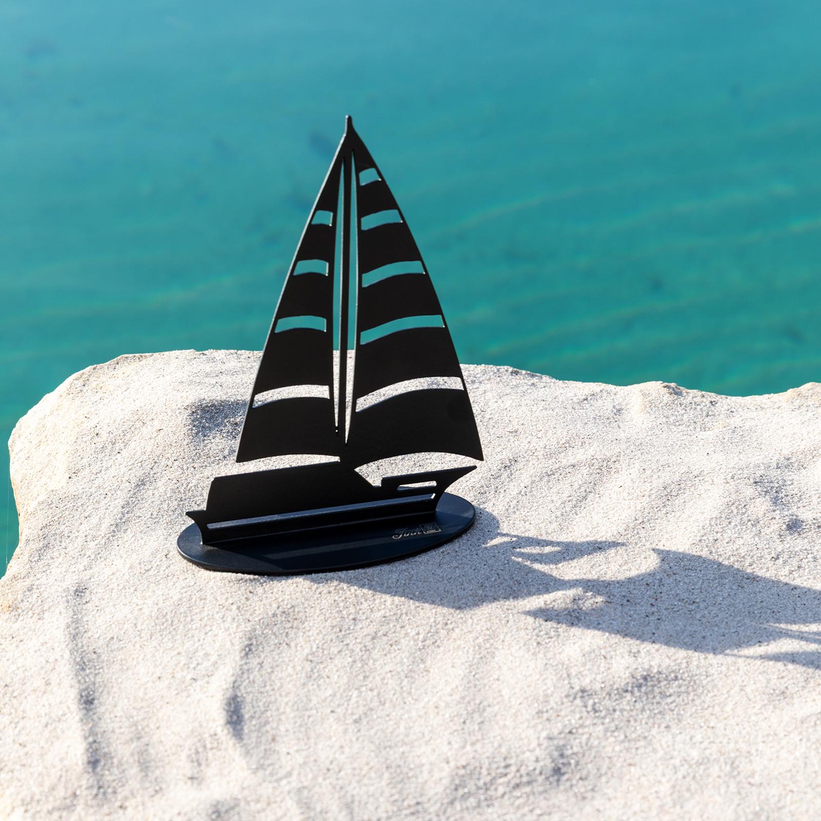 ✓ Segelboot Skulptur mit stilisiertem Design, klarer Linienführung und ausgeschnittenen Segelbereichen ✓ Deko-Boot-Figur aus beschichtetem Eisen in schwarzer Ausführung mit gleichmäßig matter Oberfläche ✓ Mit einer Maße von ca. 5 x 10,5 x 15 cm kompakt proportioniert und ideal für Regale oder Fensterbänke ✓ Die ovale Standplatte sorgt für einen stabilen Halt auf ebenen Flächen im Wohn- sowie Arbeitsbereich ✓ Kreativ maritime Dekoration für Wohnräume, Büros oder als Geschenk für Liebhaber von Segelmotiven
