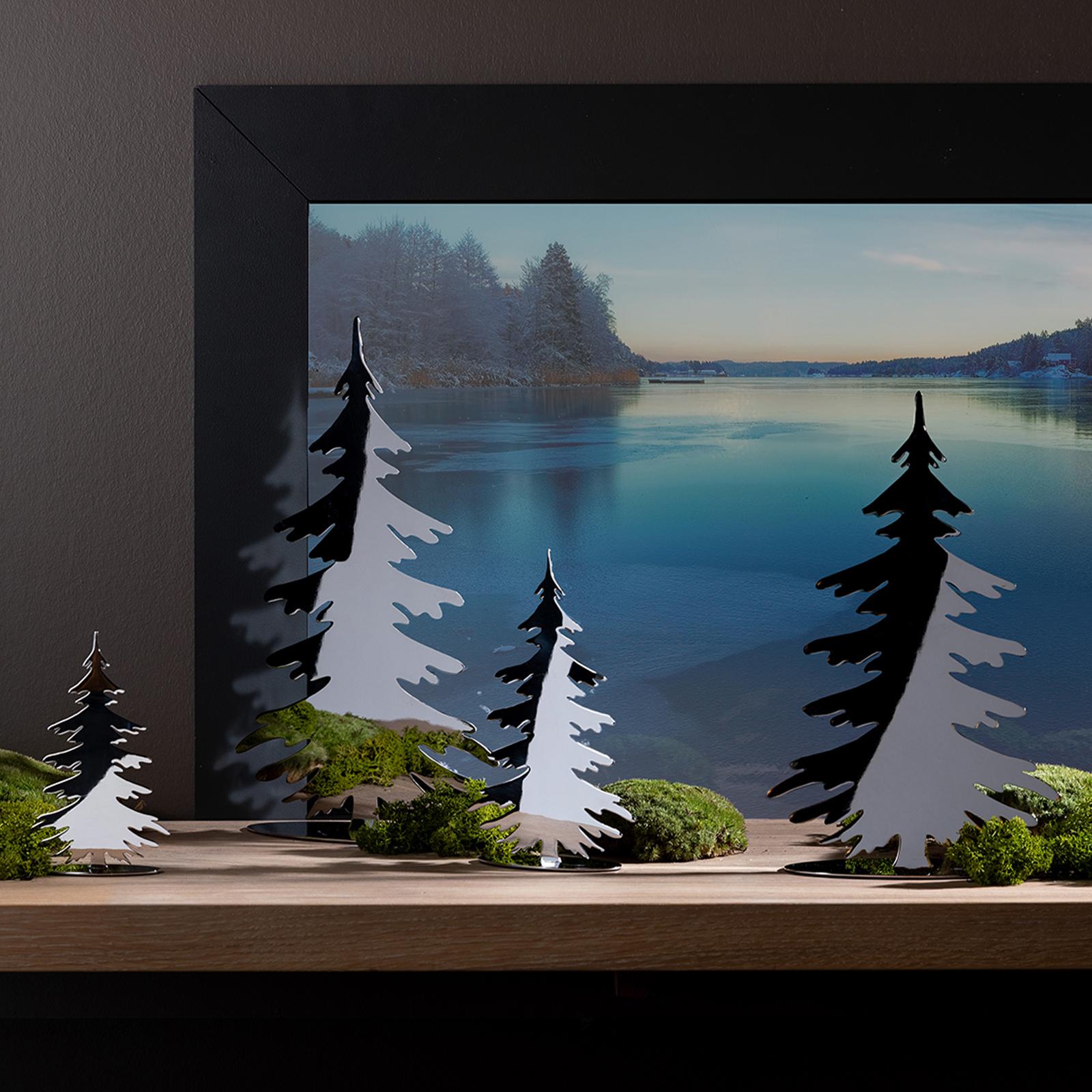 Dieser Deko-Tannenbaum aus Edelstahl ist 35 cm hoch und bringt festliche Stimmung in Ihre Winterdekoration. Mit seiner glänzenden Oberfläche reflektiert er das Licht und sorgt für ein lebendiges Funkeln, das Ihre Wohnräume in eine warme Atmosphäre taucht. Durch sein dezentes Design eignet sich die Figur perfekt für größere Flächen. Ob auf der Fensterbank, einem Beistelltisch oder im Regal - der Baum setzt einen geschmackvollen Akzent, ohne aufdringlich zu wirken. Besonders in Kombination mit Kerzen, Lichterketten oder weiteren weihnachtlichen Accessoires entsteht ein harmonisches Gesamtbild, das für Gemütlichkeit sorgt. Die klare Formgebung macht diesen imposanten Baum zu einem vielseitigen Element, das sich sowohl in moderne als auch in klassische Einrichtungen einfügt. Er lässt sich einzeln als Blickfang dekorieren oder zusammen mit weiteren Figuren in einer Gruppe arrangieren. Die silberne Oberfläche betont den modernen Charakter und bringt strahlende Akzente in jede Winterdekoration. Damit ist dieser Baum nicht nur für das Zuhause, sondern auch für Büros oder Eingangsbereiche eine dekorative Wahl, die festliche Stimmung vermittelt.