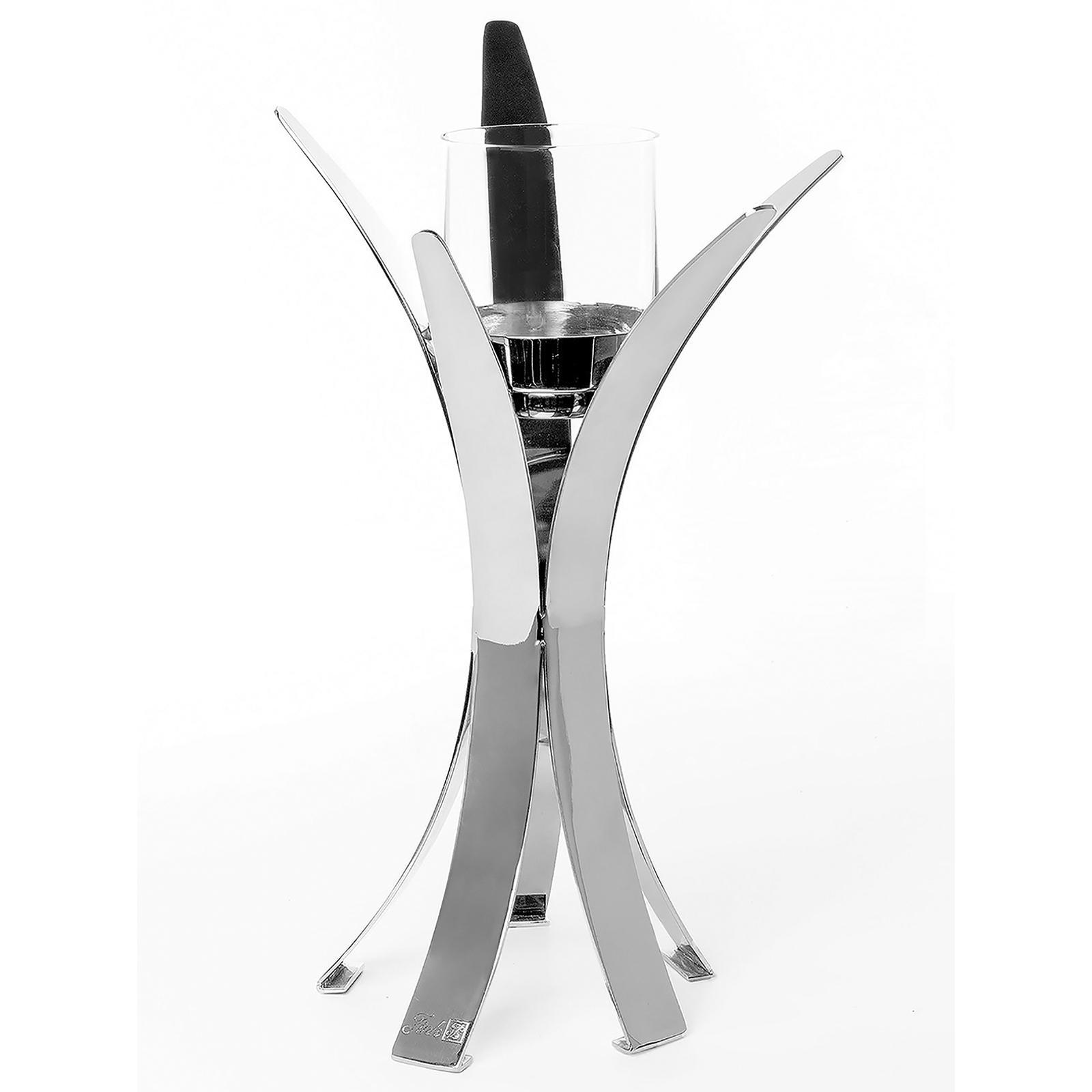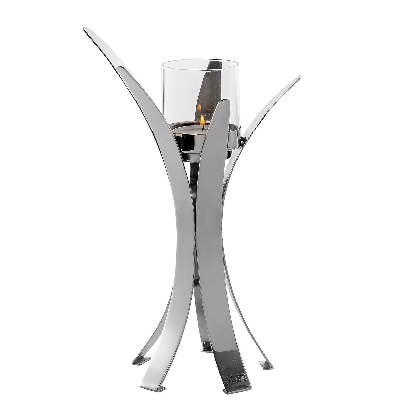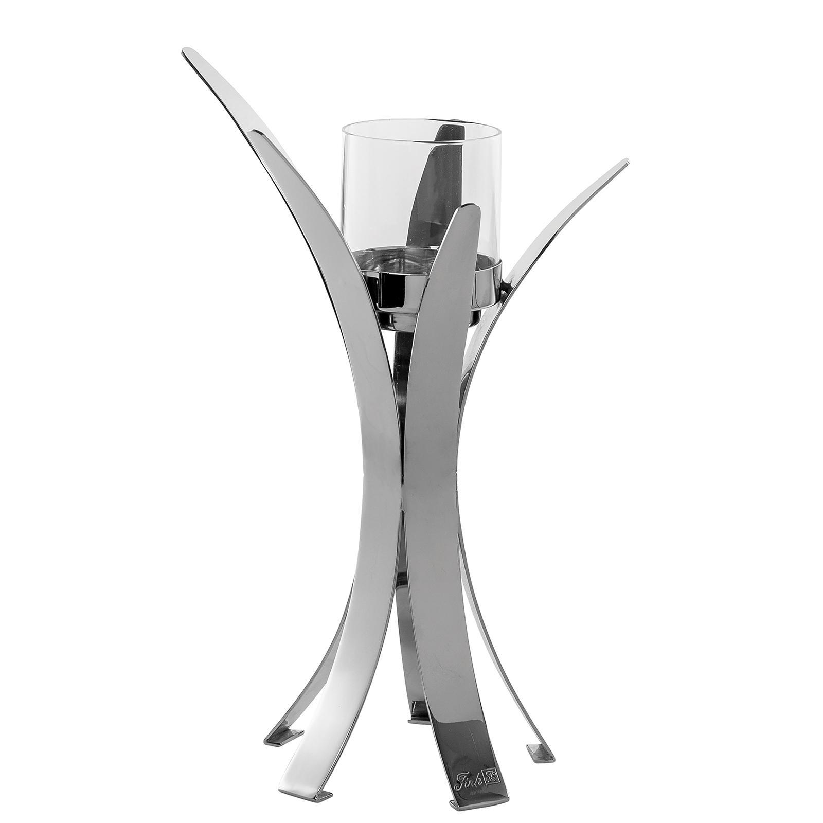 ✓ Glänzender vernickelter Kerzenhalter inkl. Glas, stehend auf fünf Füßen - ein echter Blickfang im Raum ✓ Der außergewöhnliche & silberne 37 cm hohe Edelstahl-Leuchter setzt auch Teelichter stilvoll in Szene ✓ Das 5-beinige Design sorgt für stabilen Stand & verleiht dem Kerzenständer eine raffinierte Leichtigkeit ✓ Die hochglänzende Oberfläche reflektiert warmes Kerzenlicht & unterstreicht den modernen Wohnstil ✓ Minimalistisches Design - perfekt als eleganter Akzent auf dem Sideboard, Regal oder auf dem Esstisch