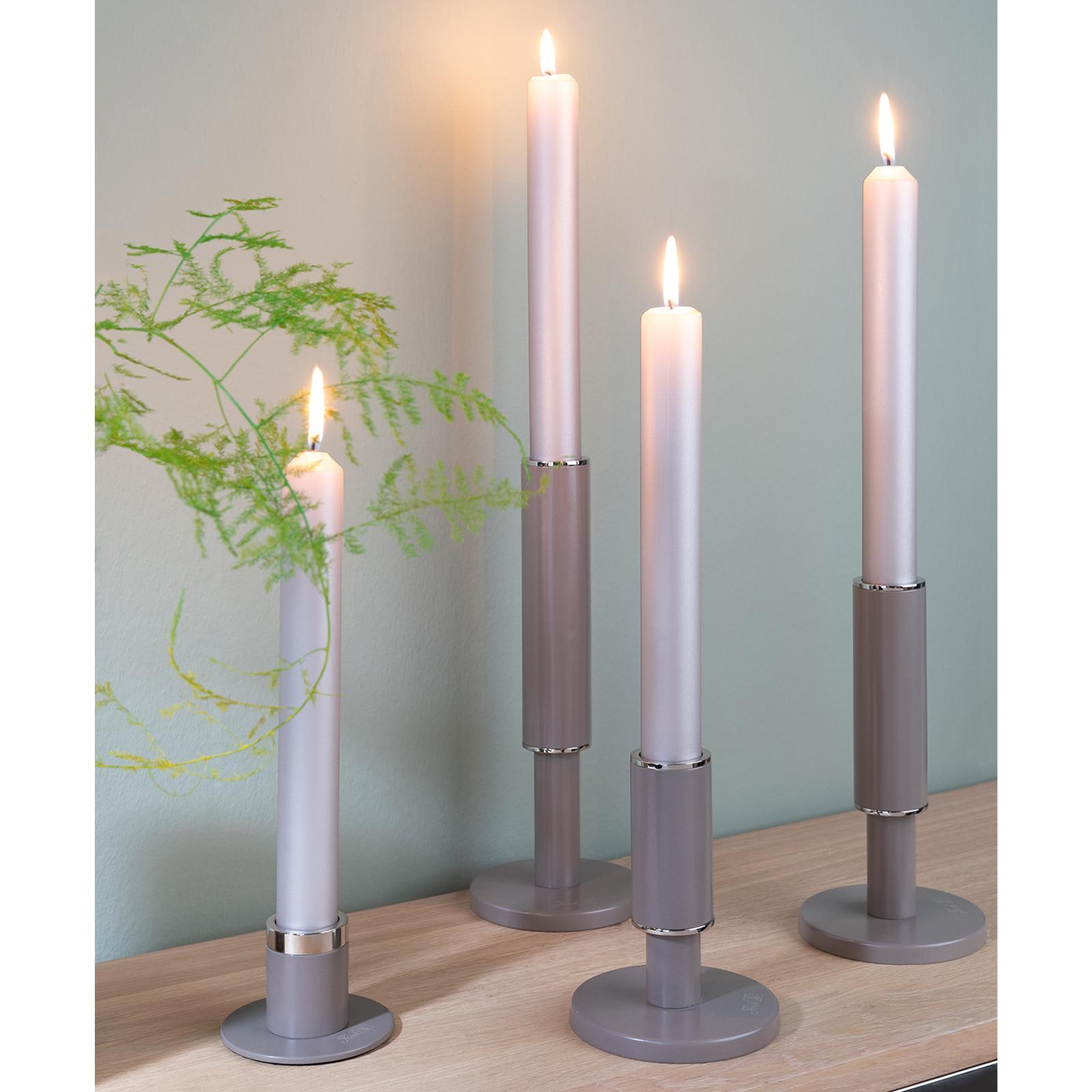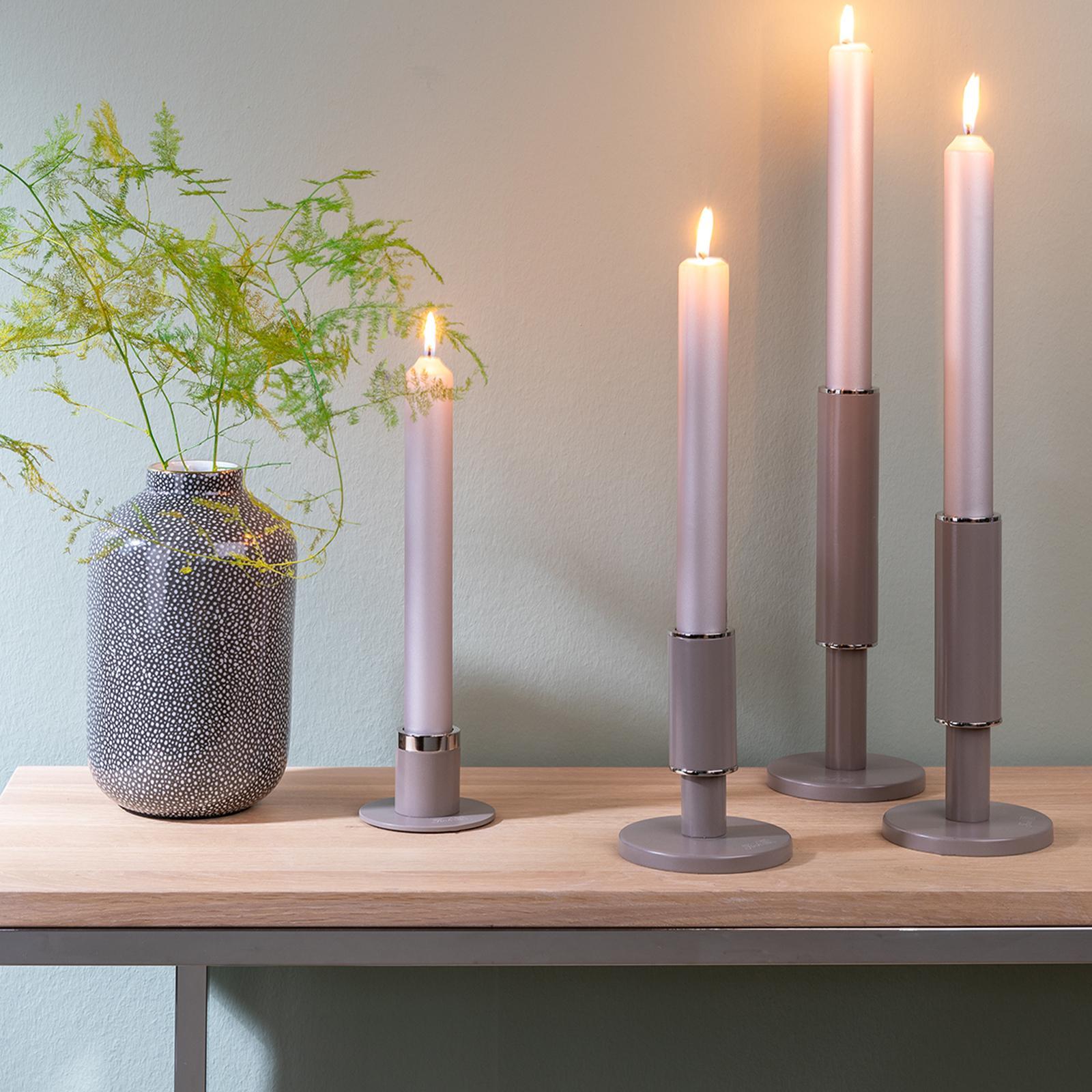 Dieser Kerzenhalter in elegantem Braun verbindet schlichte Formgebung mit einer warmen Ausstrahlung. Mit seiner Höhe von 24 cm und einer Fassung für eine Stabkerze bis Ø 3 cm eignet er sich perfekt, um Kerzen dekorativ zu inszenieren und sanftes Licht in den Raum zu bringen. Die matte Oberfläche sorgt für eine ruhige, edle Optik, während feine metallische Details den Leuchter optisch veredeln. Der runde Fuß bietet sicheren Stand und rundet das harmonische Erscheinungsbild ab. So wird er zu einem vielseitigen Accessoire, das sich mühelos mit unterschiedlichen Einrichtungsstilen kombinieren lässt - von modern bis klassisch. Ob als Einzelstück auf dem Esstisch, als Akzent auf dem Sideboard oder in Kombination mit weiteren Leuchtern bei festlichen Arrangements - der Kerzenleuchter setzt in jeder Umgebung stilvolle Akzente. Seine dezente Eleganz sorgt dafür, dass er nie aufdringlich wirkt, sondern mit klarer Zurückhaltung überzeugt. Dank seiner durchdachten Gestaltung ist er nicht nur dekorativ, sondern auch praktisch einsetzbar. Der Stabkerzenhalter schafft eine einladende Lichtatmosphäre und eignet sich ebenso als geschmackvolles Geschenk wie als stilvolles Detail für das eigene Zuhause.