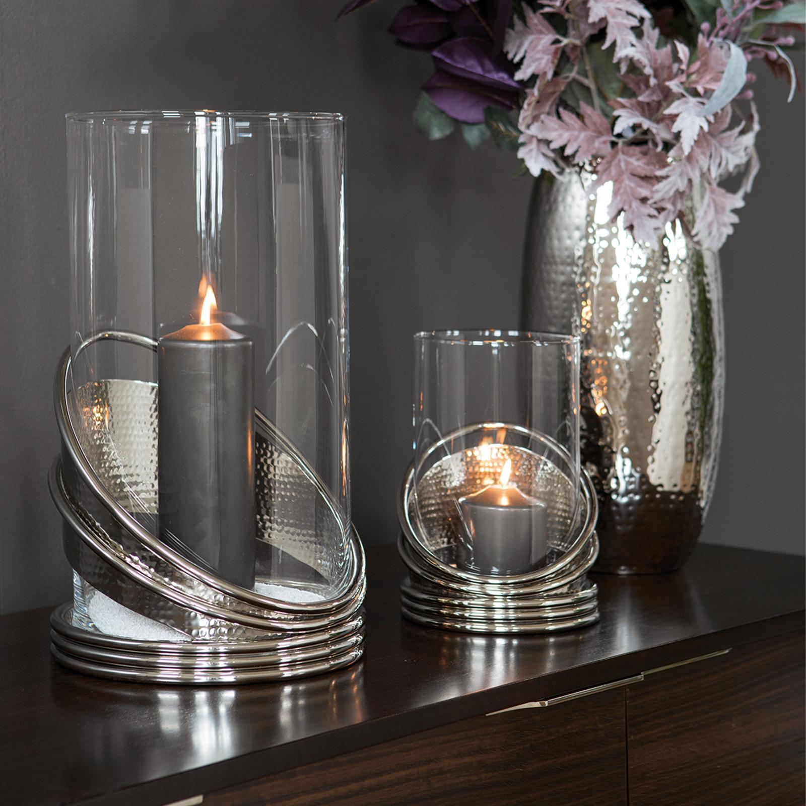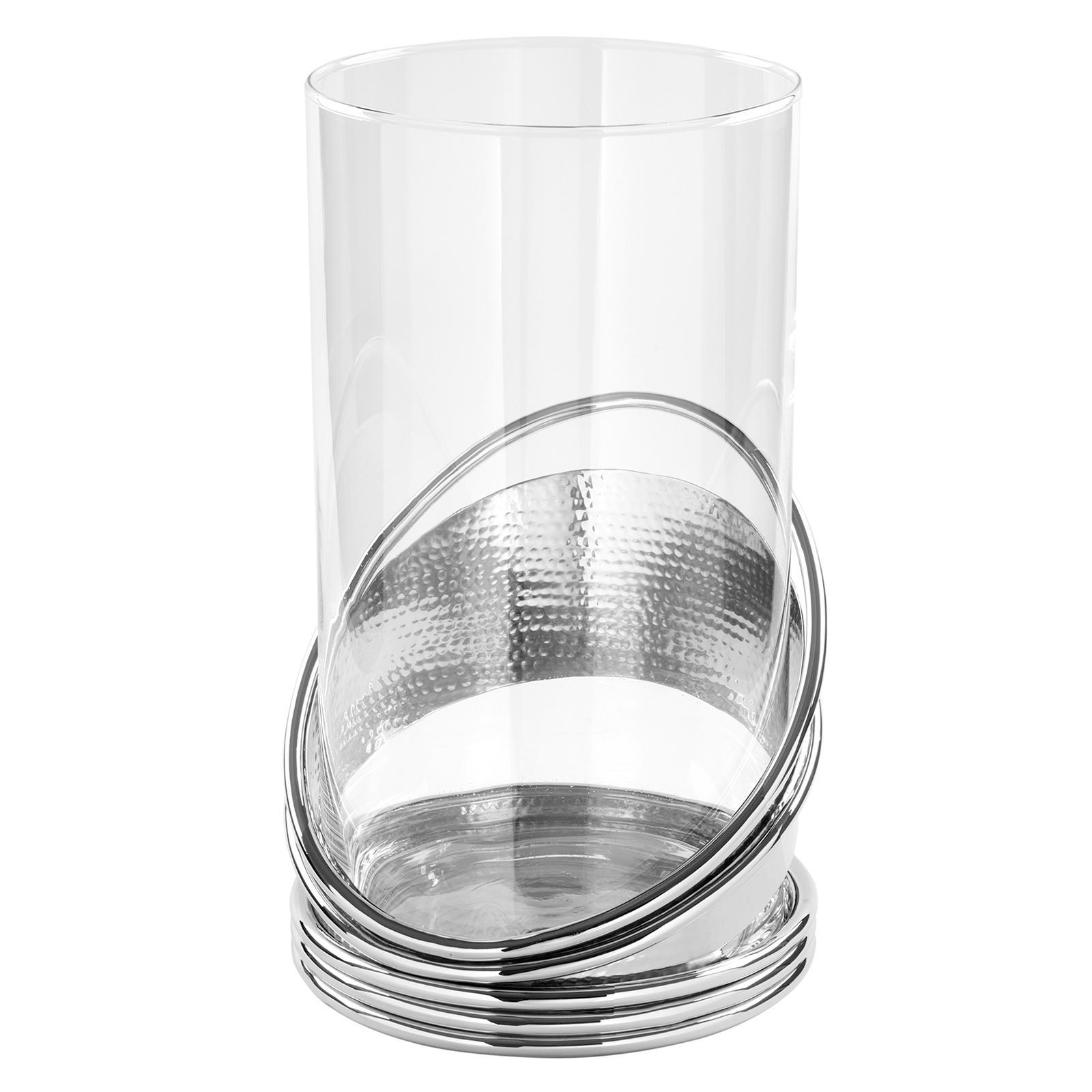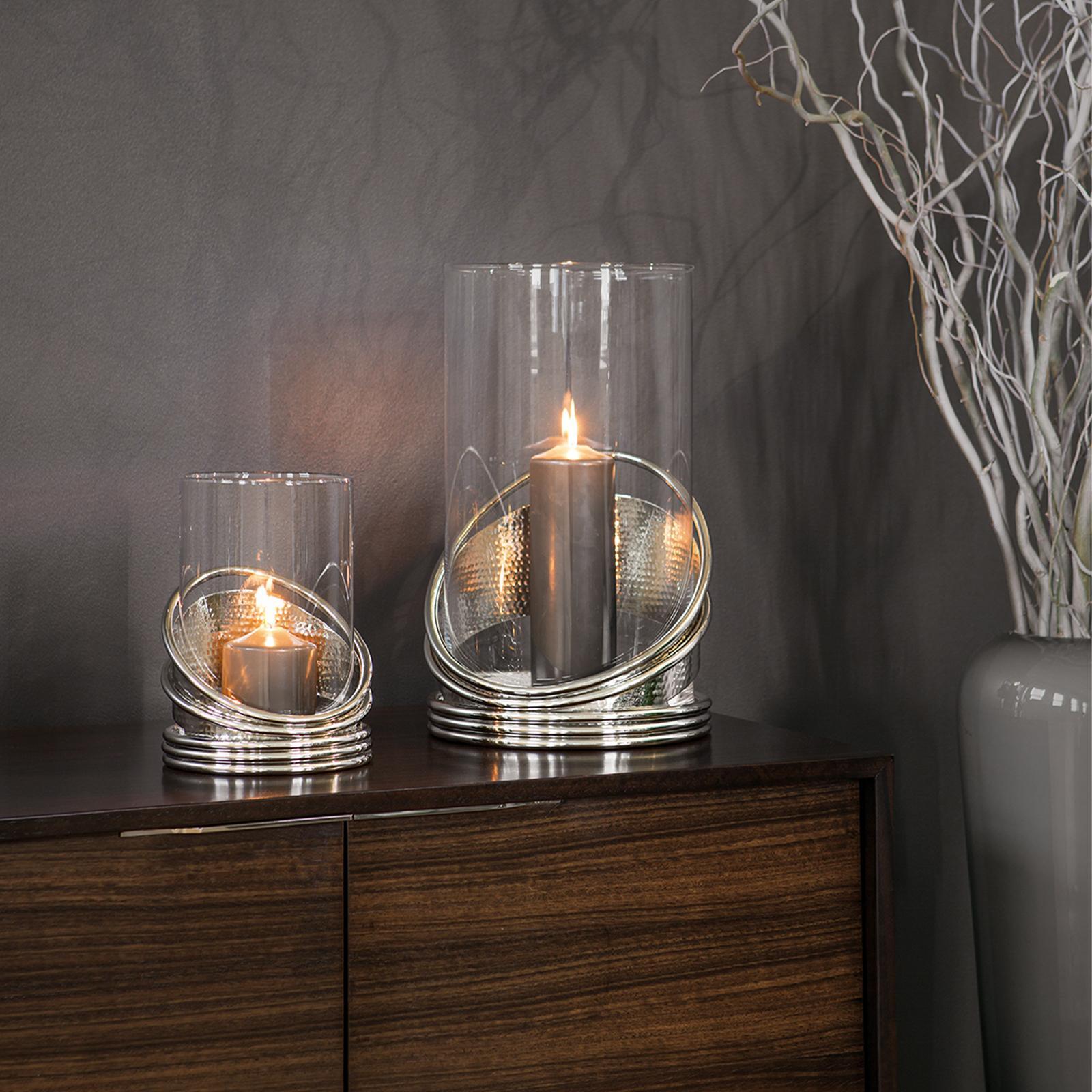 • Länge ca.: 25,5 cm • Breite ca.: 25,5 cm • Höhe ca.: 30 cm • Durchmesser ca.: 25,5 cm • Serie: Fink Living • Kapazität: für 1 Stumpenkerze • Material: Aluminium • Material 1: Glas • Veredelung: vernickelt • Oberfläche: glänzend poliert • Oberfläche Details: gehämmert innen • Farbe: silber • Eigenschaft: glatt polierte Ringe • Form: rund • Dimension: groß • Umgebungsnutzung: Für Innenbereich • Anlass: Saisonale & thematische Deko, Gartenabende, Geschenkidee • Nutzungsbereich: Sideboard, Fensterbank, Tischdekoration, Anrichte • Besonderheit: für LED Leuchten / Kerzen geeignet