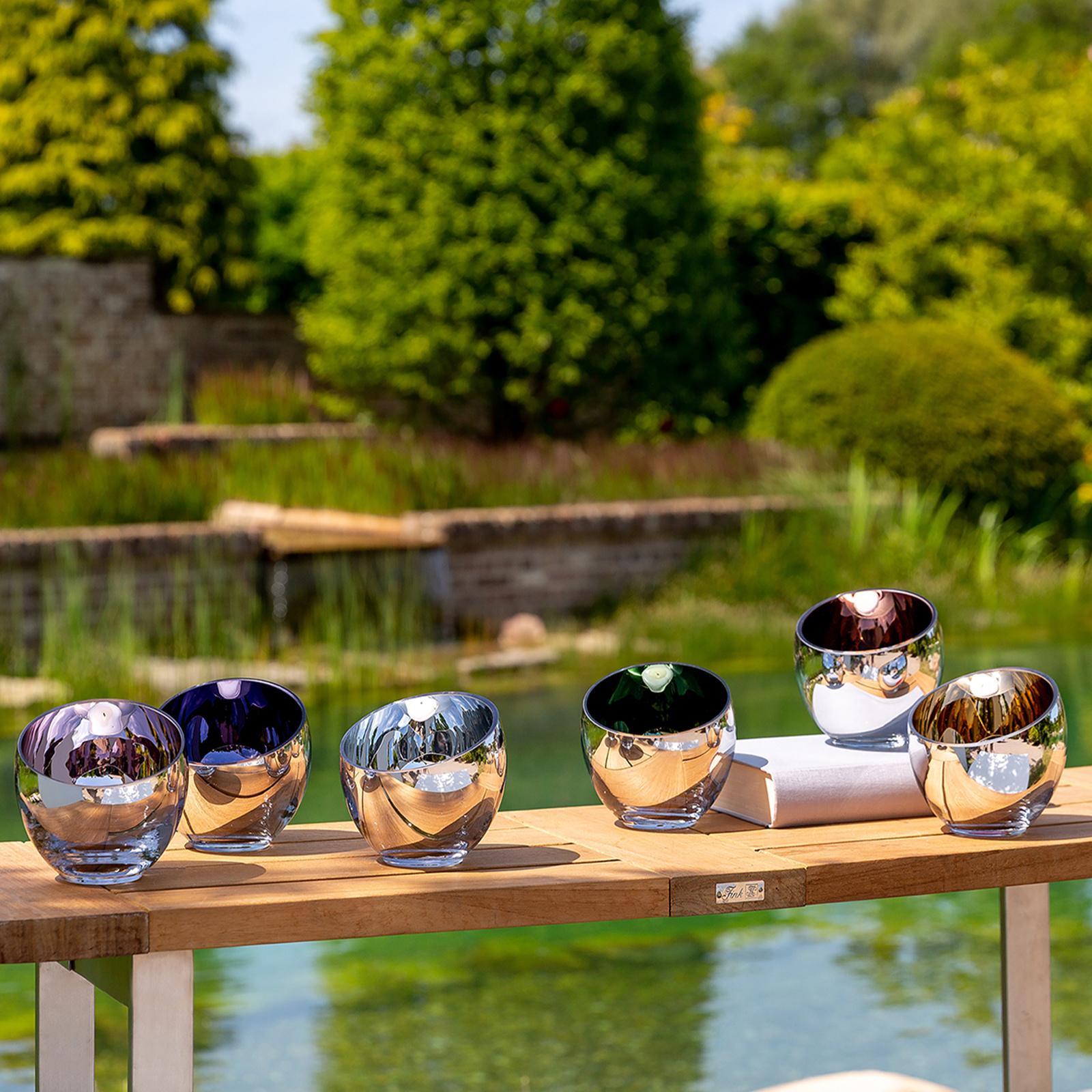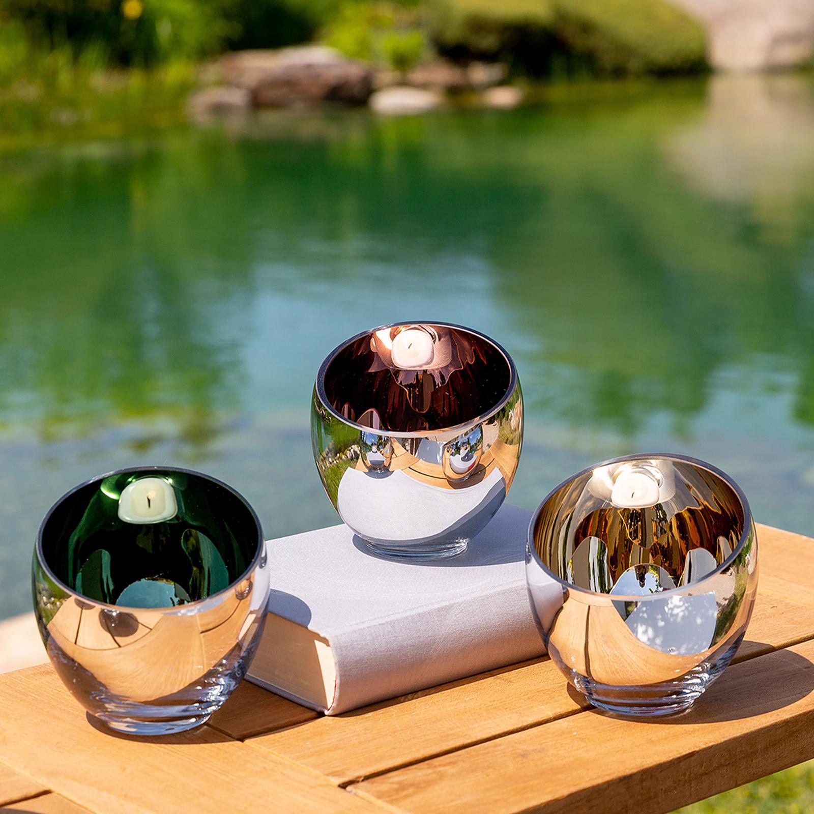 • Länge ca.: 11 cm • Breite ca.: 11 cm • Höhe ca.: 11 cm • Durchmesser ca.: 11 cm • Serie: Fink Living • Kapazität: für 1 Teelicht Ø 6 cm • Material: Glas • Oberfläche: silberglänzend • Oberfläche Details: glatt • spülmaschinengeeignet: nein • Farbe: braun • Eigenschaft: ohne Füße • Ausstattung: mit abgeschrägtem oberem Rand • Form: rund • Dimension: mittel • Look & Stil: modern • Umgebungsnutzung: Für Innenbereich und geschützten Außenbereich • Anlass: Stimmungsvolle Alltags-Momente, Saisonale Deko, Wohnambiente • Nutzungsbereich: Sideboard, Fensterbank, Tischdekoration, Anrichte • Besonderheit: mundgeblasen • Gewicht ca.: 0,3 Kg