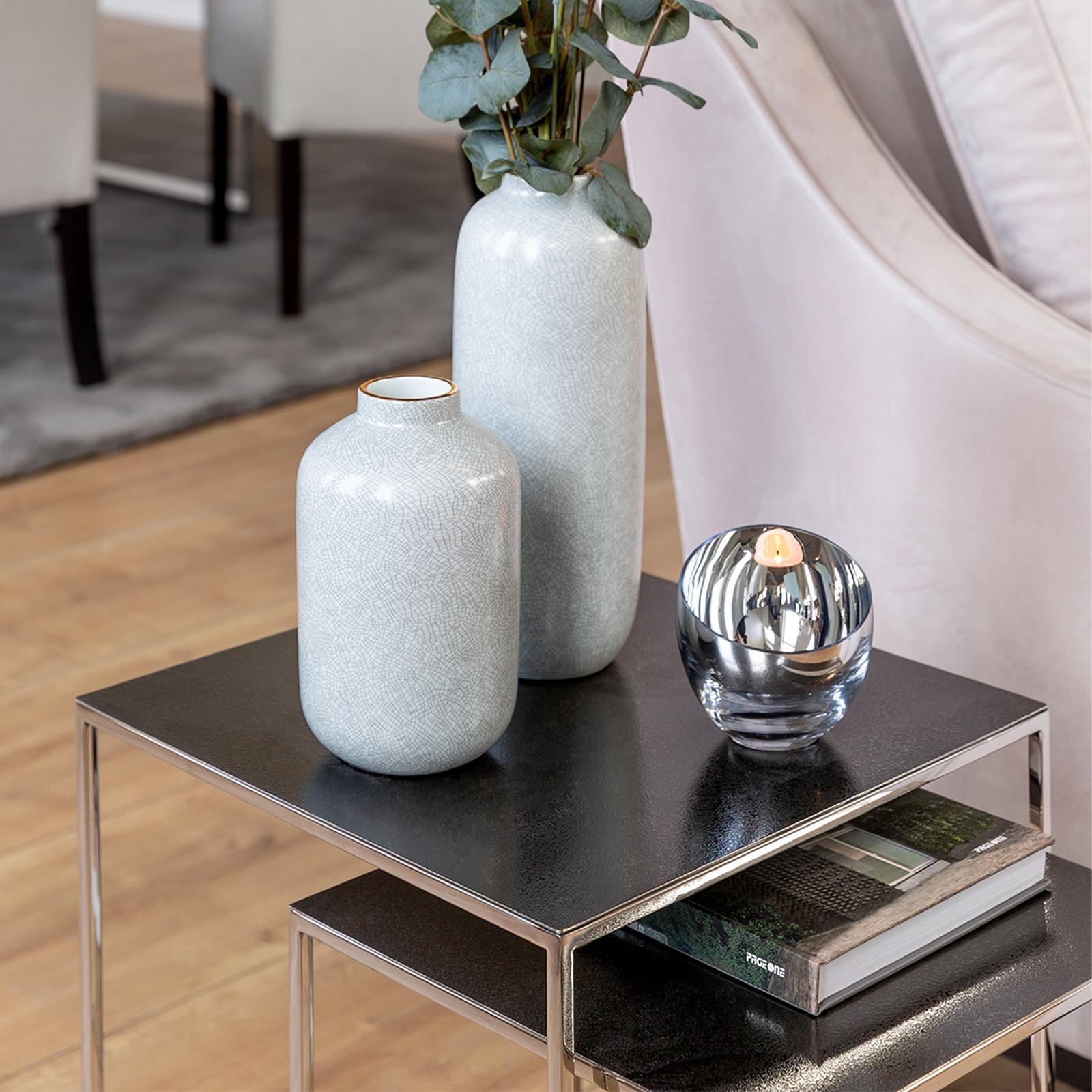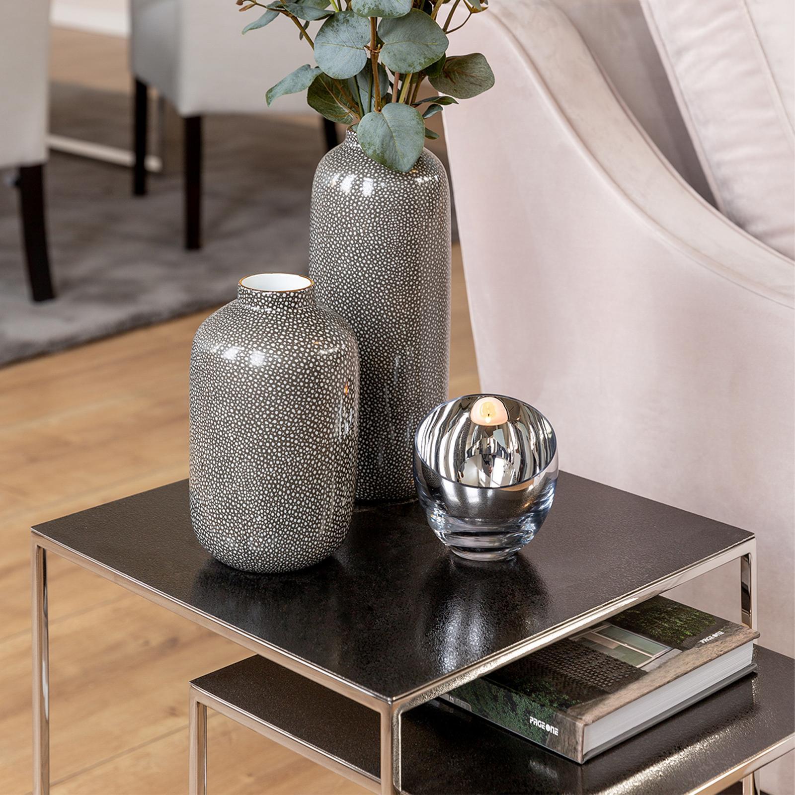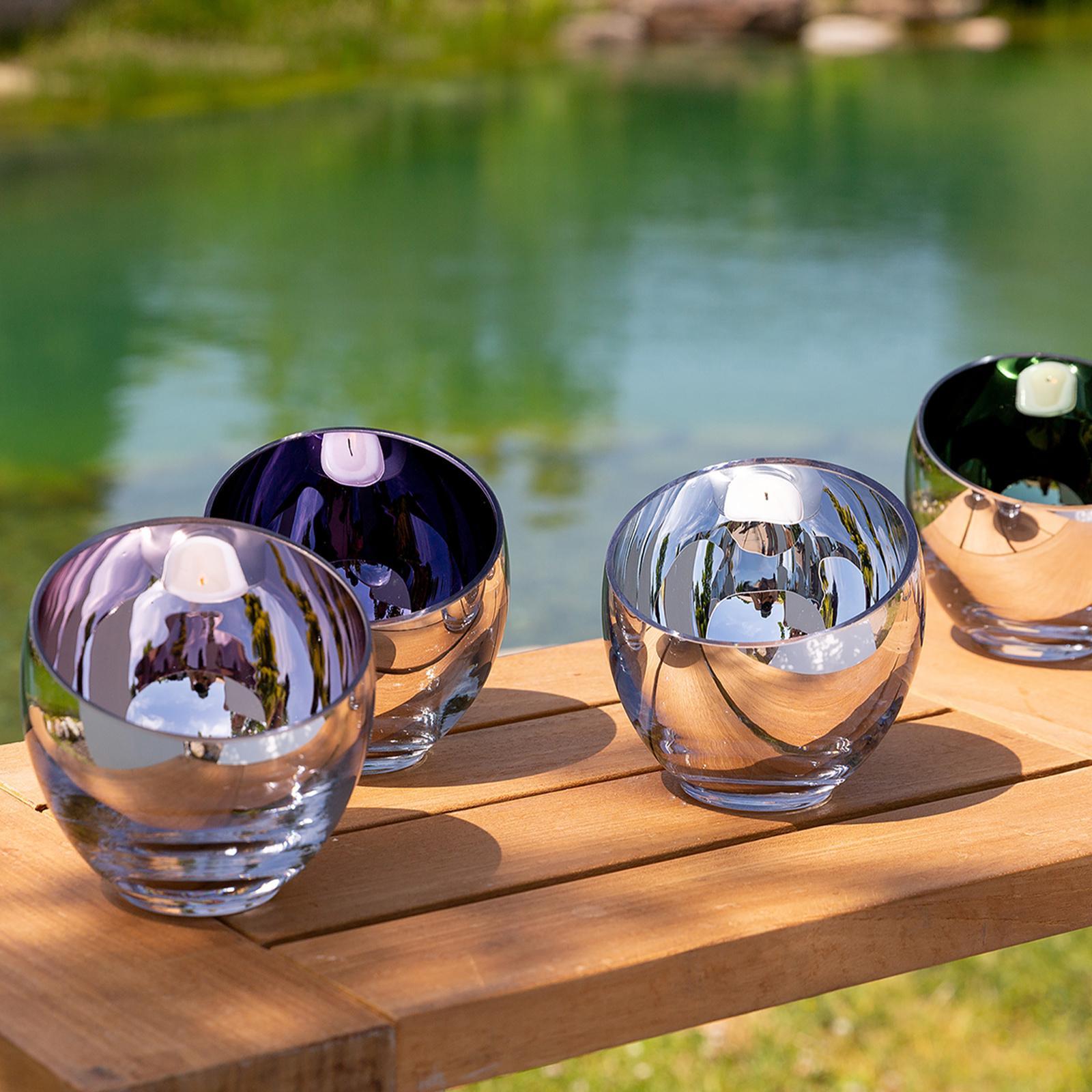 • Länge ca.: 11 cm • Breite ca.: 11 cm • Höhe ca.: 11 cm • Durchmesser ca.: 11 cm • Serie: Fink Living • Kapazität: für 1 Teelicht Ø 6 cm • Material: Glas • Oberfläche: silberglänzend • Oberfläche Details: glatt • spülmaschinengeeignet: nein • Farbe: silber • Eigenschaft: ohne Füße • Ausstattung: mit abgeschrägtem oberem Rand • Form: rund • Dimension: mittel • Look & Stil: modern • Umgebungsnutzung: Für Innenbereich und geschützten Außenbereich • Anlass: Stimmungsvolle Alltags-Momente, Saisonale Deko, Wohnambiente • Nutzungsbereich: Sideboard, Fensterbank, Tischdekoration, Anrichte • Besonderheit: mundgeblasen • Gewicht ca.: 2,15 Kg