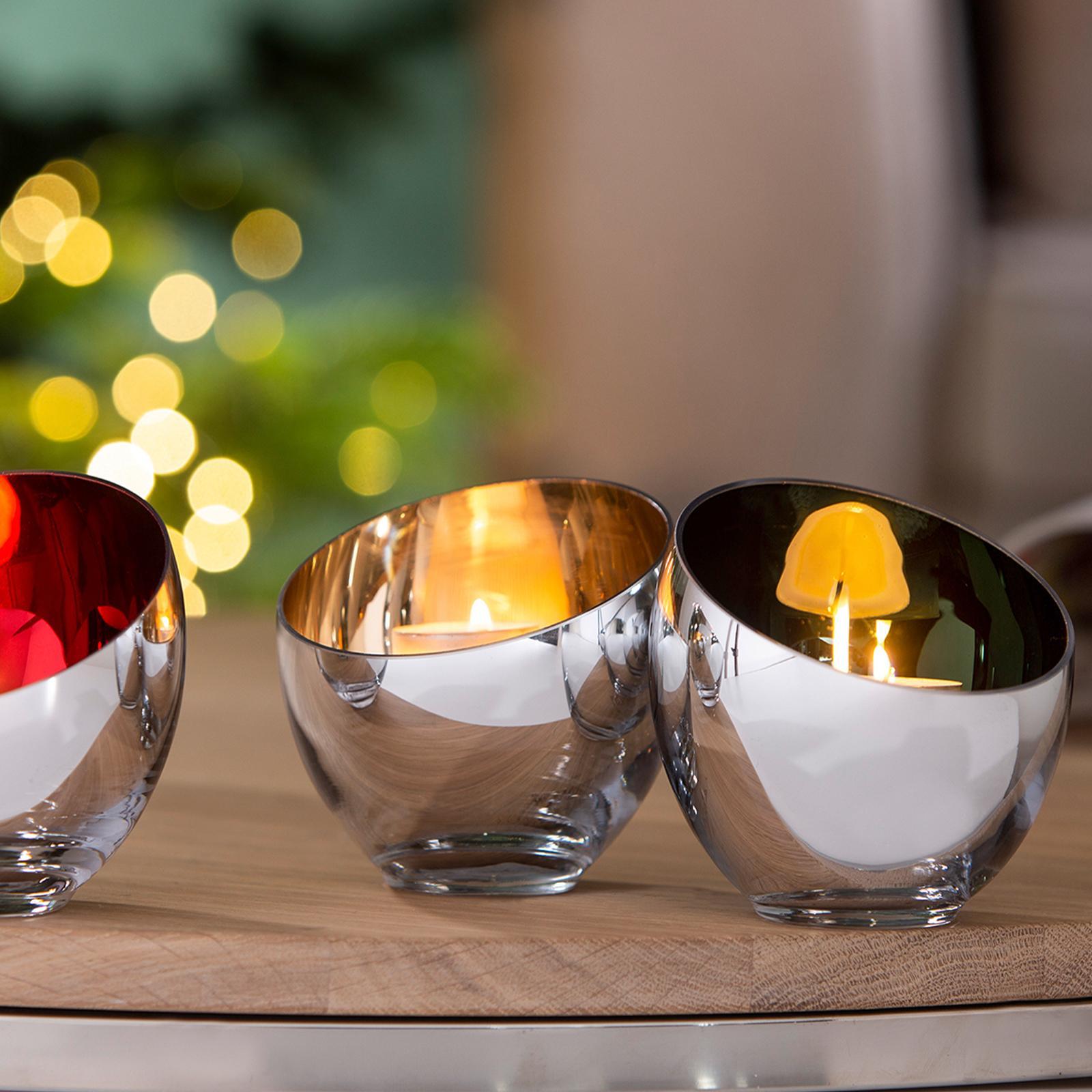 • Länge ca.: 11 cm • Breite ca.: 11 cm • Höhe ca.: 11 cm • Durchmesser ca.: 11 cm • Serie: Fink Living • Kapazität: für 1 Teelicht Ø 6 cm • Material: Glas • Oberfläche: silberglänzend • Oberfläche Details: glatt • spülmaschinengeeignet: nein • Farbe: champagner • Eigenschaft: ohne Füße • Ausstattung: mit abgeschrägtem oberem Rand • Form: rund • Dimension: mittel • Look & Stil: modern • Umgebungsnutzung: Für Innenbereich und geschützten Außenbereich • Anlass: Stimmungsvolle Alltags-Momente, Saisonale Deko, Wohnambiente • Nutzungsbereich: Sideboard, Fensterbank, Tischdekoration, Anrichte • Besonderheit: mundgeblasen • Gewicht ca.: 0,35 Kg