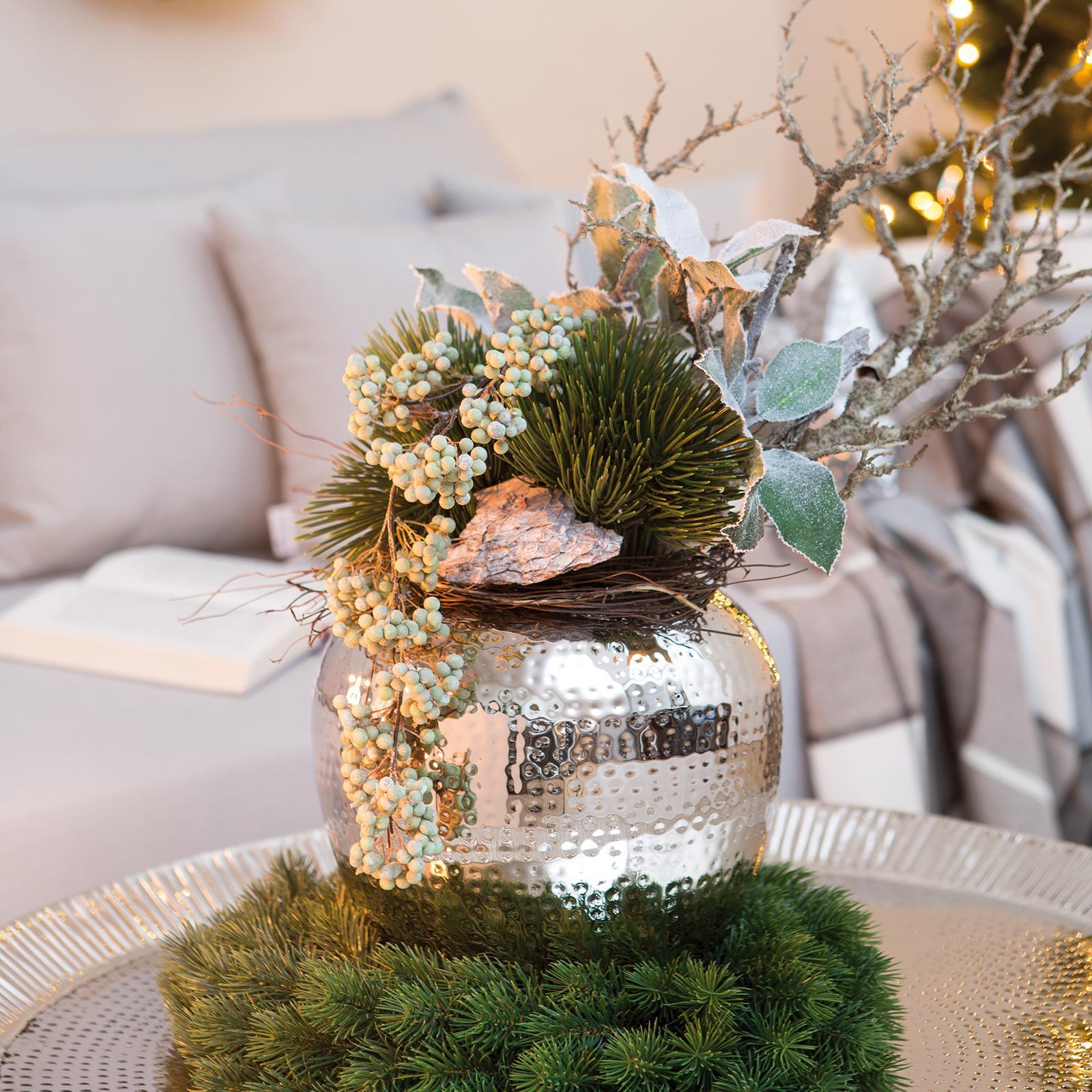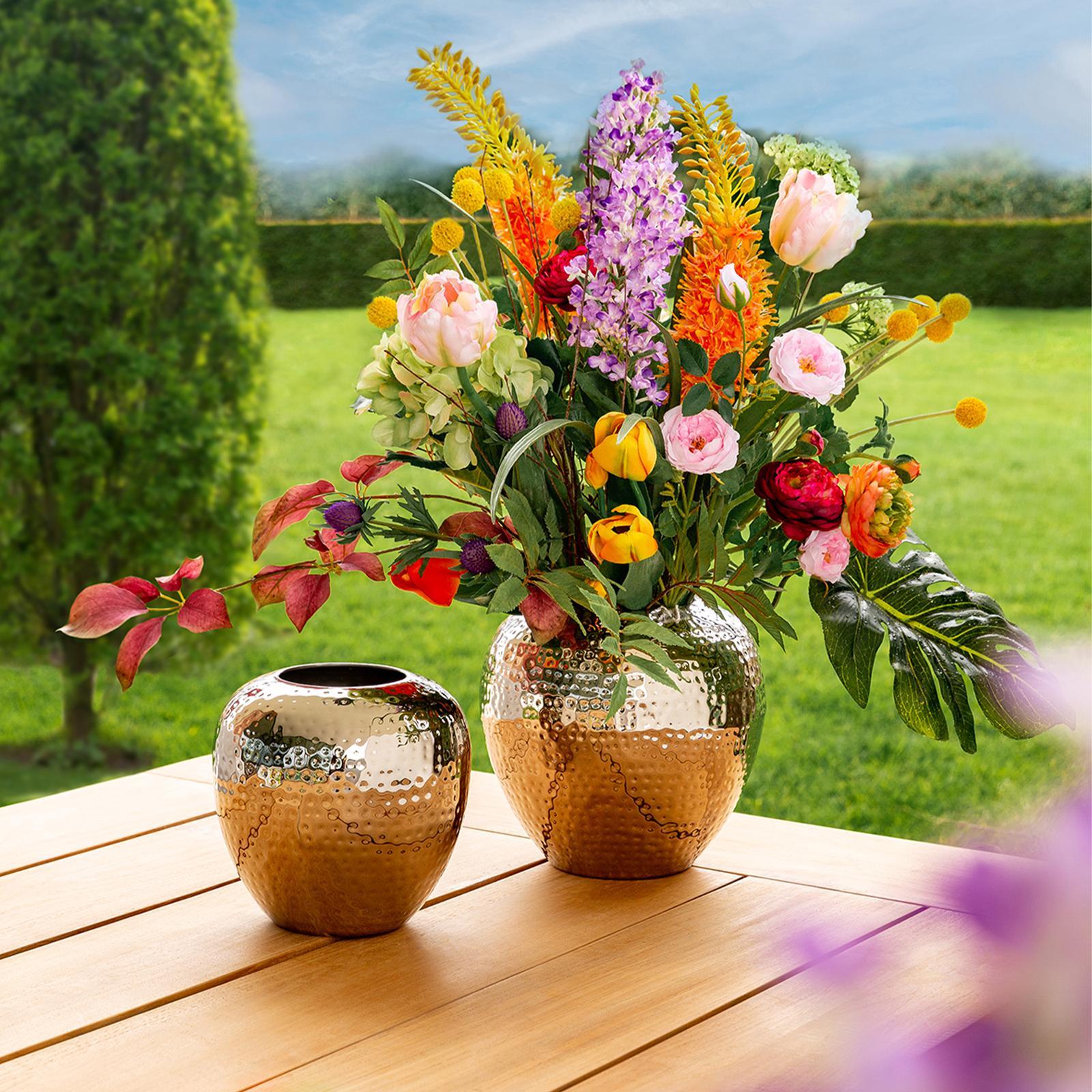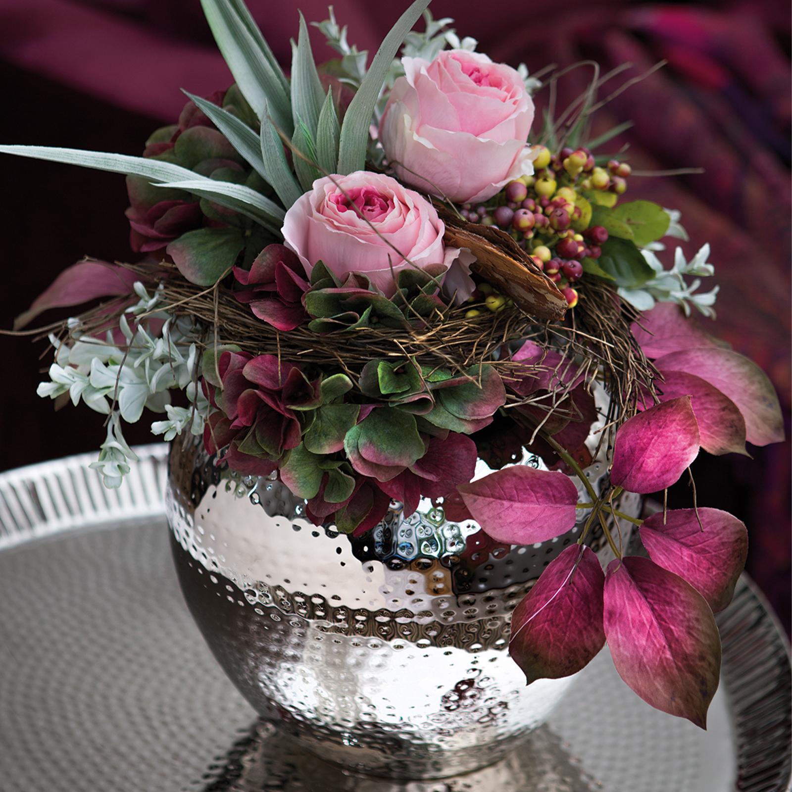 • Länge ca.: 25 cm • Breite ca.: 25 cm • Höhe ca.: 25 cm • Durchmesser ca.: 25 cm • Serie: Fink Living • Material: Eisen • Veredelung: vernickelt • Oberfläche: glänzend poliert • Oberfläche Details: gehämmert • Farbe: silber • Form: rund • Dimension: groß • Umgebungsnutzung: Für Innenbereich • Anlass: Jubiläen & Feste, Deko, Saisonale Anlässe, Geschenkidee • Nutzungsbereich: Sideboard, Fensterbank, Tischdekoration, Anrichte • Nutzungsmöglichkeit: Schnittblumen, Trockenblumen, Sträuße • Gewicht ca.: 1,3 Kg