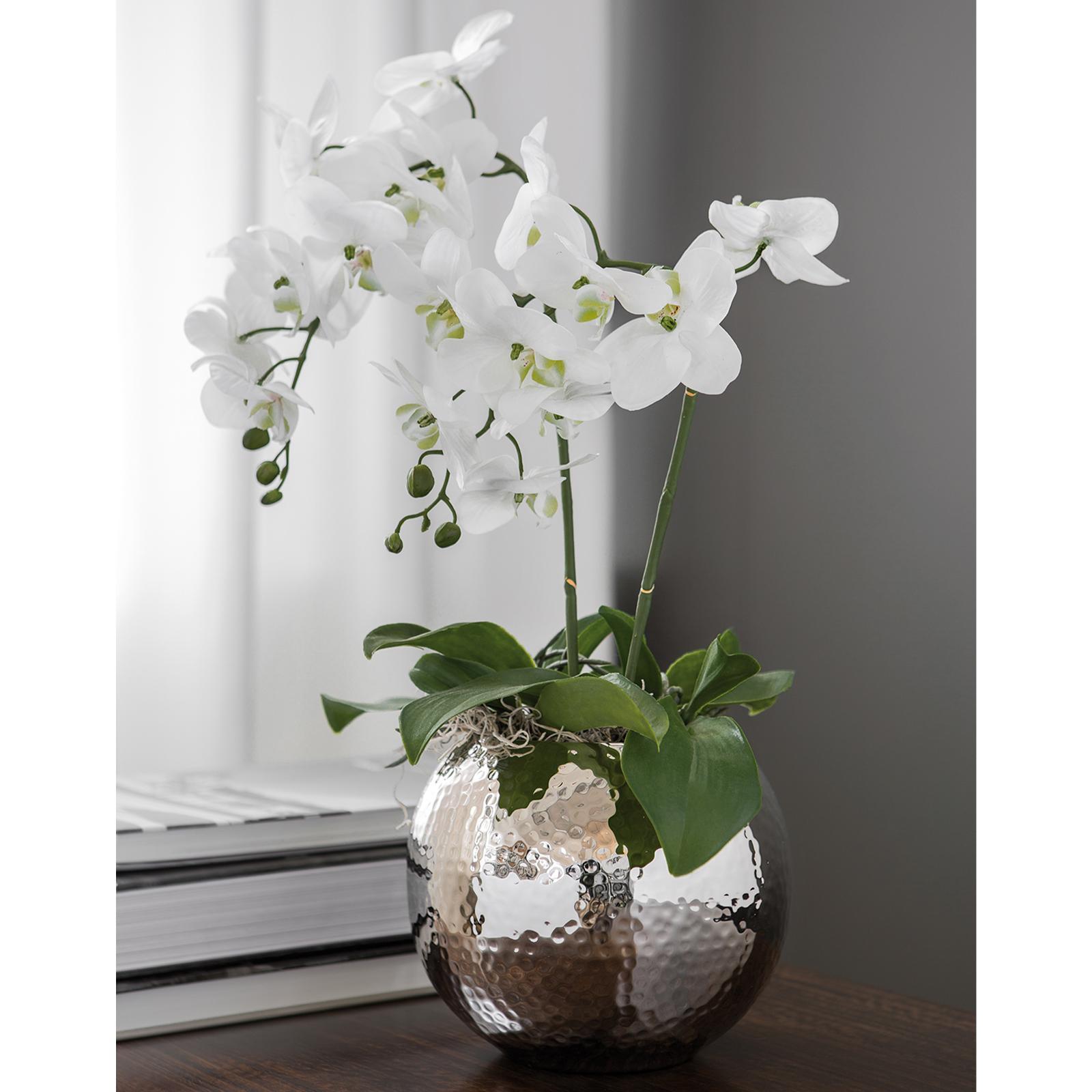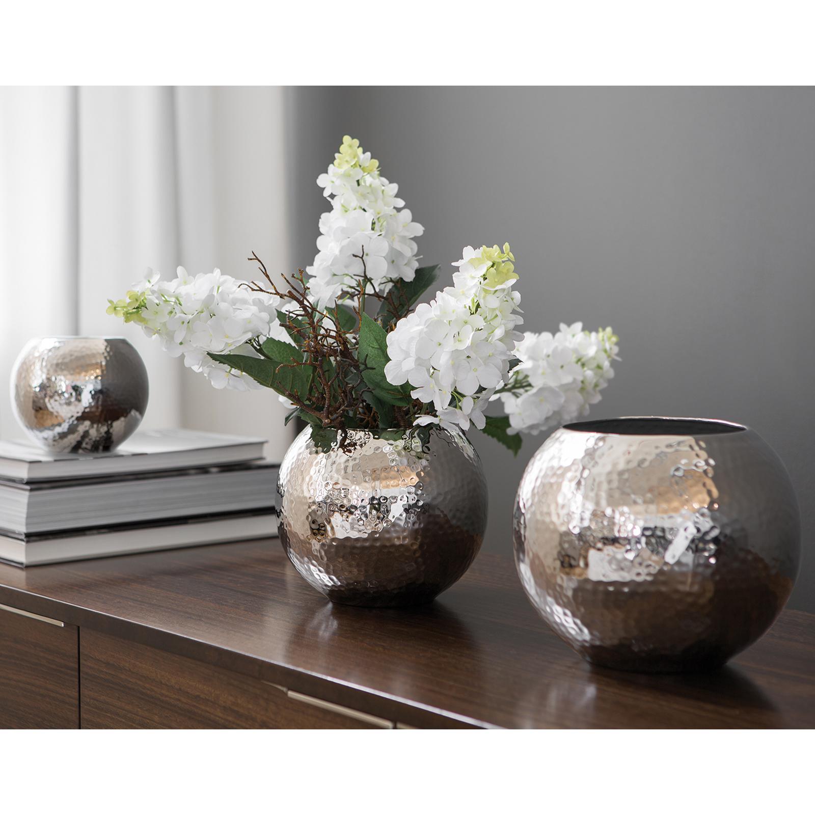 ✓ Runde Kugelvase 25 cm - silberne Vase im modernen Design als dekorativer Blickfang im Wohnbereich ✓ Oberfläche handgefertigt - Hammerschlag-Finish sorgt für lebendige Reflexe & charaktervolle Akzente ✓ Kompakte Größe - platzsparend und ideal geeignet für Tischdekoration, Fensterbank & auch Sideboard ✓ Vielseitig kombinierbar, harmoniert mit frischen Blumen, Zweigen, Trockenblumen & Deko-Ensembles ✓ Schönes Wohnaccessoire, vernickelte Metall Deko-Vase als Geschenkidee für zeitlose Raumgestaltung