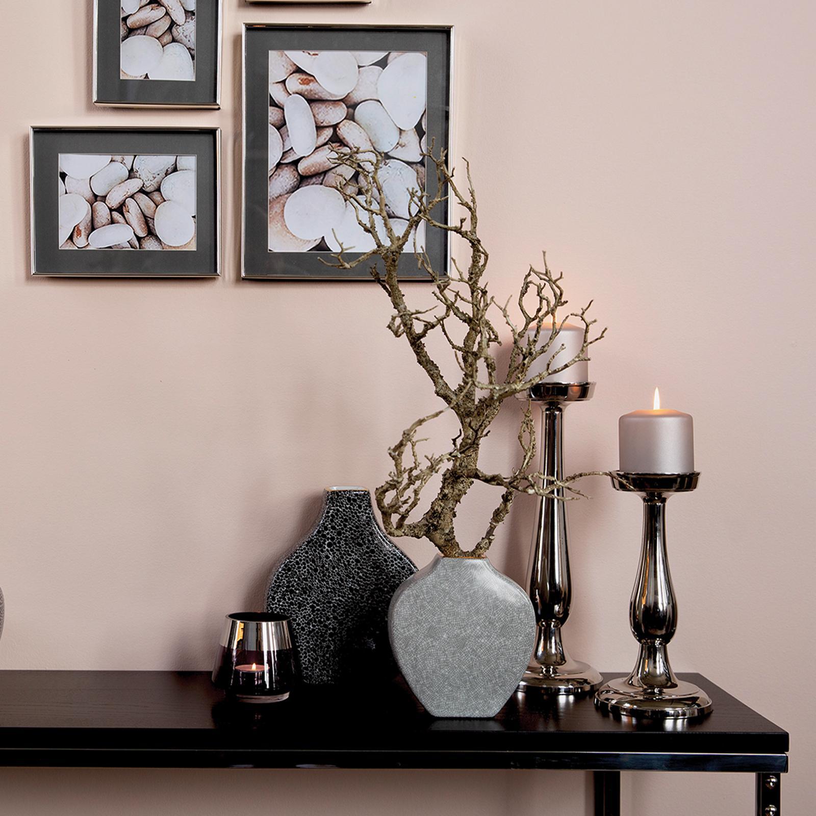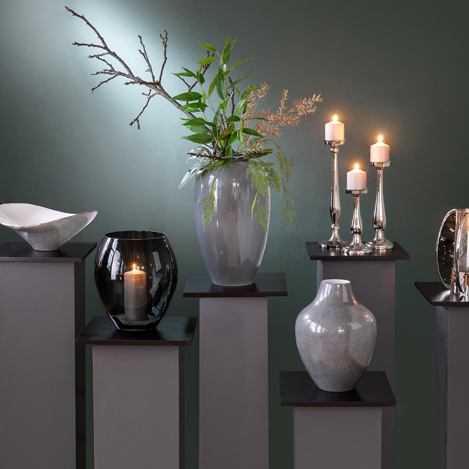 Dieser Kerzenhalter überzeugt durch seine majestätische Höhe von 36 cm und verleiht jeder Kerzendekoration eine besondere Strahlkraft. Mit seinem erhöhten Stand bringt er Stumpenkerzen auf Augenhöhe und setzt sie so prominent in Szene - ideal für festliche Arrangements oder als stilvoller Akzent im Alltag. Die glänzend veredelte Oberfläche sorgt dafür, dass das Licht sanft reflektiert wird und ein warmes, stimmungsvolles Ambiente entsteht. Dank seiner schlanken, runden Form wirkt der Leuchter elegant und gleichzeitig modern, wodurch er sich nahtlos in verschiedenste Einrichtungskonzepte einfügt. Auf einem Sideboard, einer Fensterbank oder als Teil einer Tischdekoration entfaltet er seine dekorative Wirkung und zieht die Aufmerksamkeit auf sich, ohne überladen zu wirken. Das Zusammenspiel aus Höhe, Form und Glanz macht ihn zu einem dekorativen Highlight, das sich vielseitig kombinieren lässt. Seine hochwertige Verarbeitung unterstreicht den exklusiven Charakter und macht den Kerzenhalter zu einem langlebigen Begleiter für viele Anlässe. Ob für private Feiern, festliche Abende oder als elegantes Geschenk - dieses Accessoire verleiht jedem Raum einen Hauch von Raffinesse.