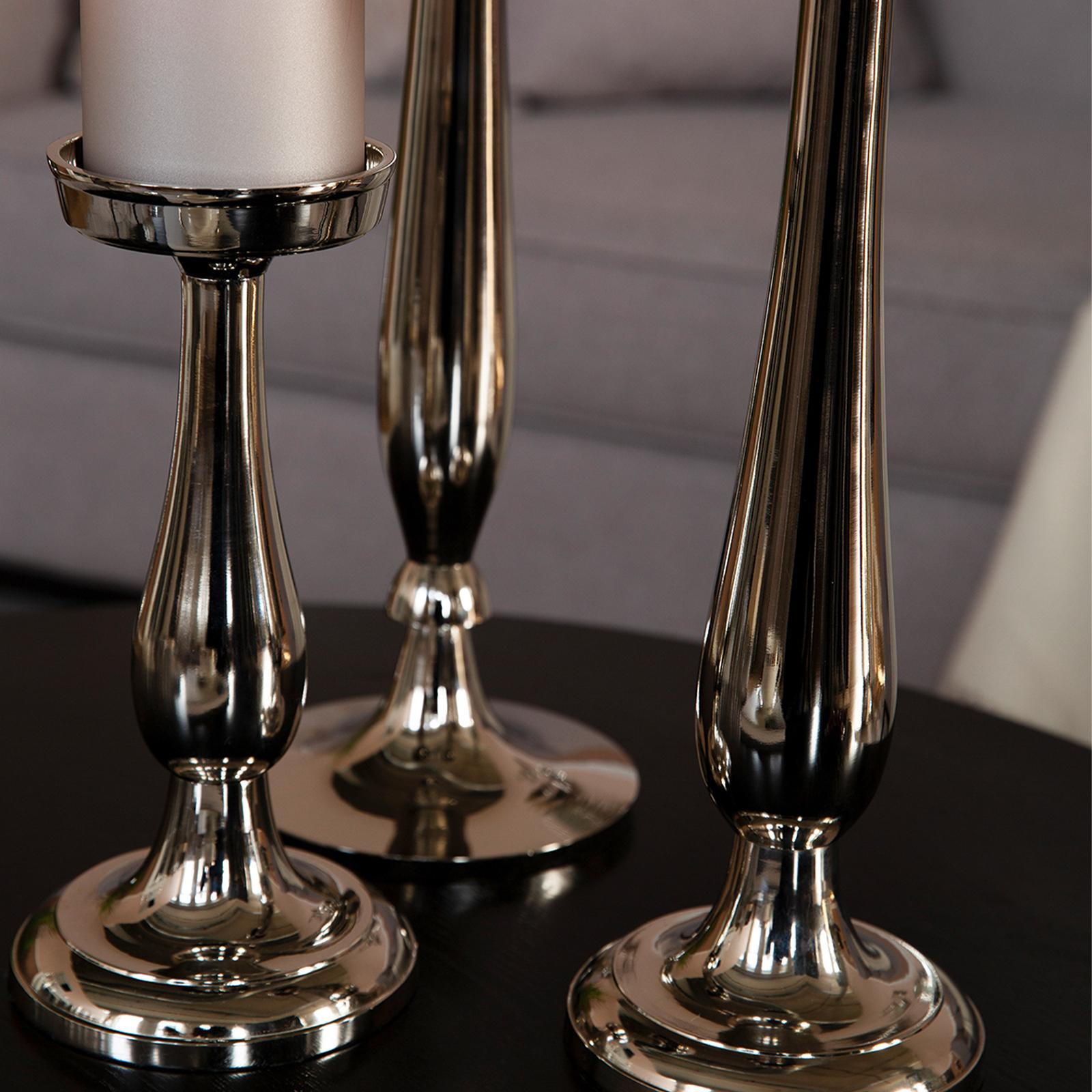 • Länge ca.: 12,5 cm • Breite ca.: 12,5 cm • Höhe ca.: 36 cm • Durchmesser ca.: 12,5 cm • Serie: Fink Living • Kapazität: für 1 Stumpenkerze Ø 8 cm oder 1 Teelicht Ø 6 cm • Material: Aluminium • Veredelung: vernickelt • Oberfläche: glänzend poliert • Oberfläche Details: glatt • Farbe: silber • Eigenschaft: ohne Aufsatz-Glaszylinder • Form: rund • Umgebungsnutzung: Für Innenbereich • Anlass: Hochzeiten, Deko, Wellnes & Entspannung, Geschenkidee • Nutzungsbereich: Tischdekoration, Buffets, Wohnzimmer • Gewicht ca.: 0,8 Kg