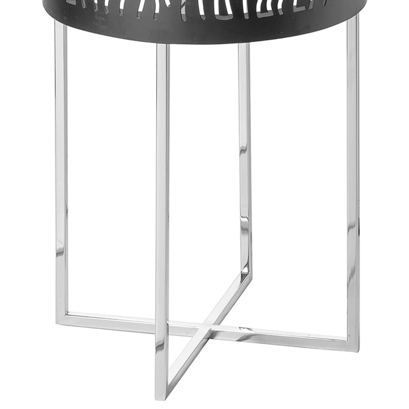 • Länge ca.: 36 cm • Breite ca.: 36 cm • Höhe ca.: 82 cm • Durchmesser ca.: 36 cm • Serie: Fink Living • Kapazität: für 1-2 Stumpenkerzen • Material: Edelstahl • Material 1: Eisen • Beschichtung: pulverbeschichtet • Oberfläche: matt-glänzend • Oberfläche Details: glatt • Farbe: schwarz-silber • Eigenschaft: mit Edelstahl-Fuß glänzend poliert • Ausstattung: ohne Aufsatz-Glaszylinder • Form: rund • Dimension: groß • Look & Stil: wellenförmige Ausschnitte • Umgebungsnutzung: Für Innenbereich und geschützten Außenbereich • Anlass: Saisonale & thematische Deko, Gartenabende, Geschenkidee • Nutzungsbereich: Sideboard, Fensterbank, Tischdekoration, Anrichte • Besonderheit: für LED Leuchten / Kerzen geeignet • Gewicht ca.: 5 Kg