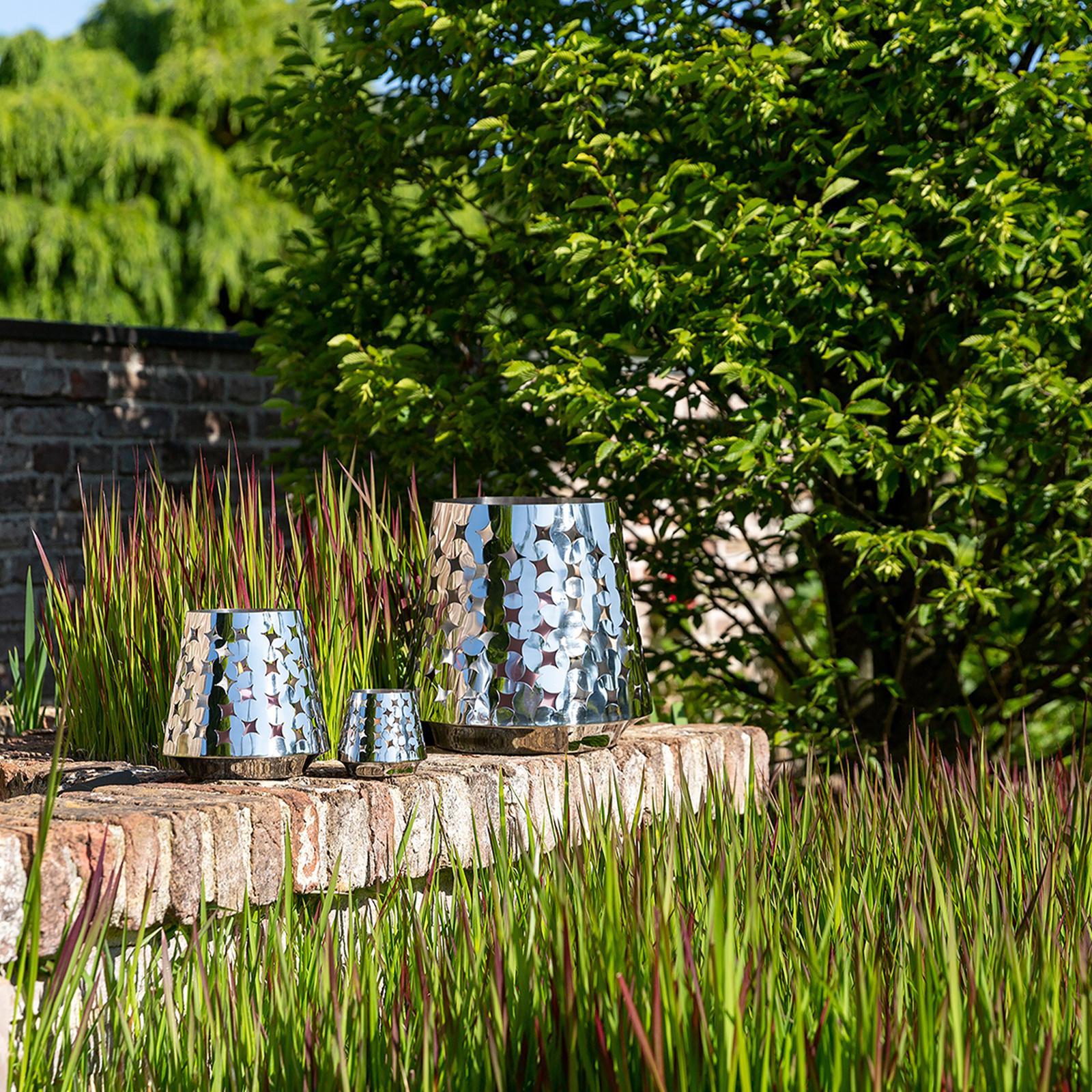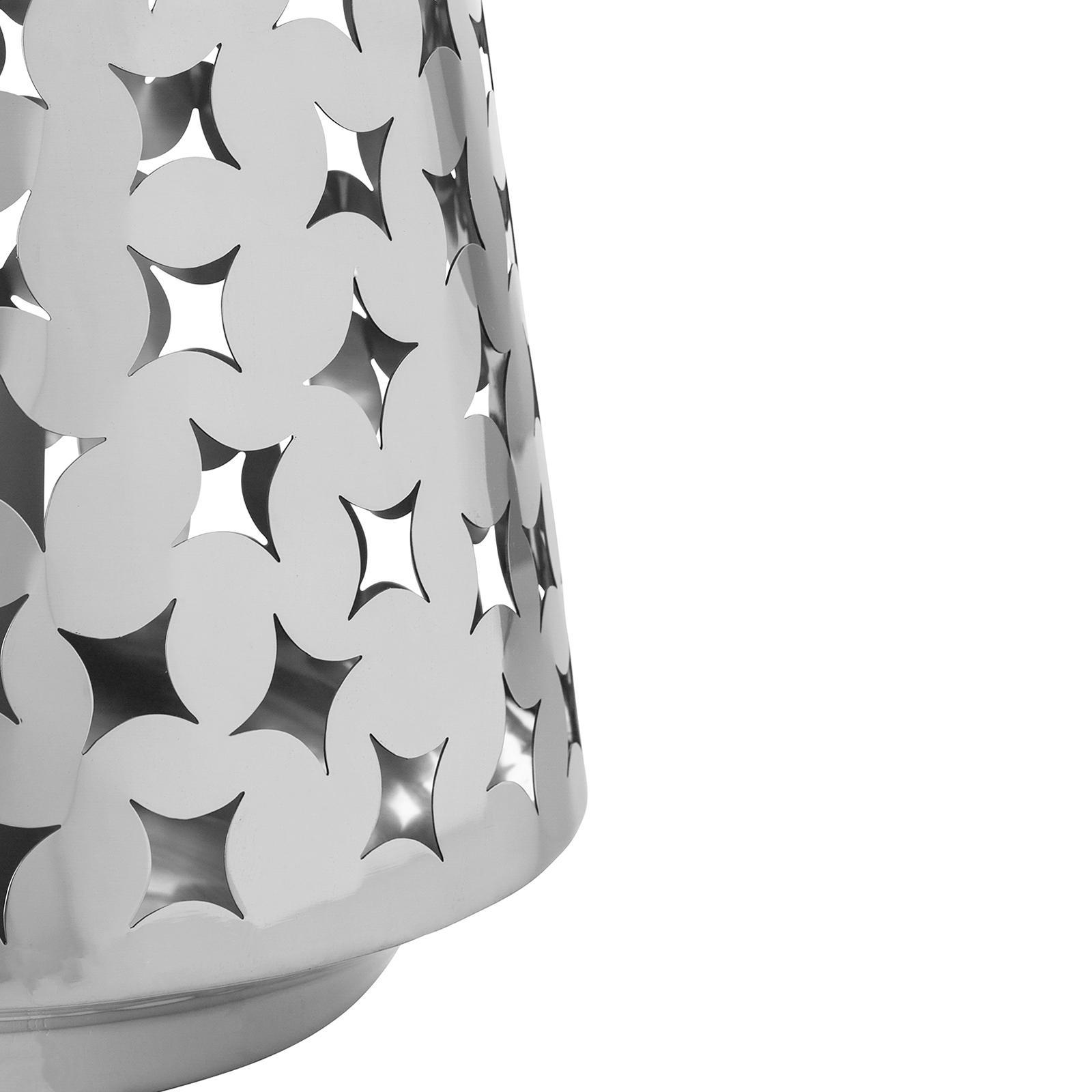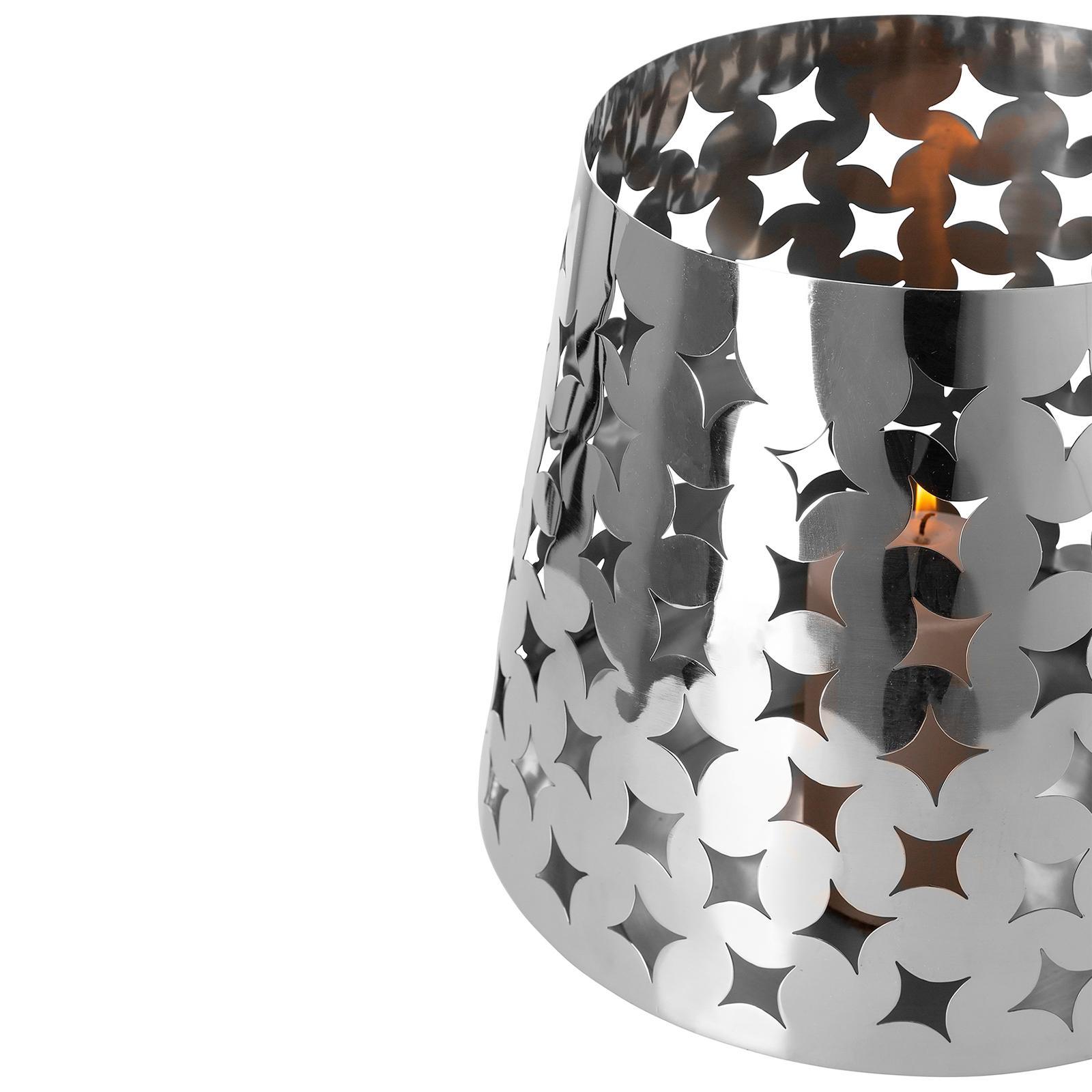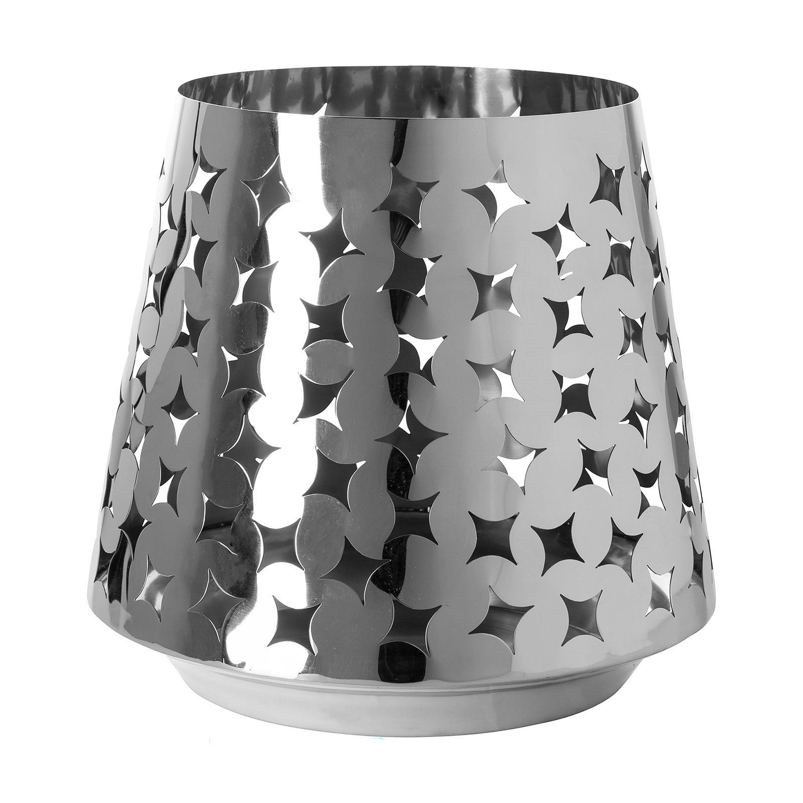 • Länge ca.: 23 cm • Breite ca.: 23 cm • Höhe ca.: 30 cm • Durchmesser ca.: 32 cm • Serie: Fink Living • Kapazität: für 1 Stumpenkerze • Material: Edelstahl • Oberfläche: glänzend poliert • Oberfläche Details: strukturiert • Farbe: silber • Eigenschaft: mit Rauten • Form: kegelförmig • Dimension: groß • Umgebungsnutzung: Für Außenbereich und Innenbereich • Anlass: Saisonale & thematische Deko, Gartenabende, Geschenkidee • Nutzungsbereich: Sideboard, Fensterbank, Tischdekoration, Anrichte • Besonderheit: für LED Leuchten / Kerzen geeignet • Gewicht ca.: 1,55 Kg