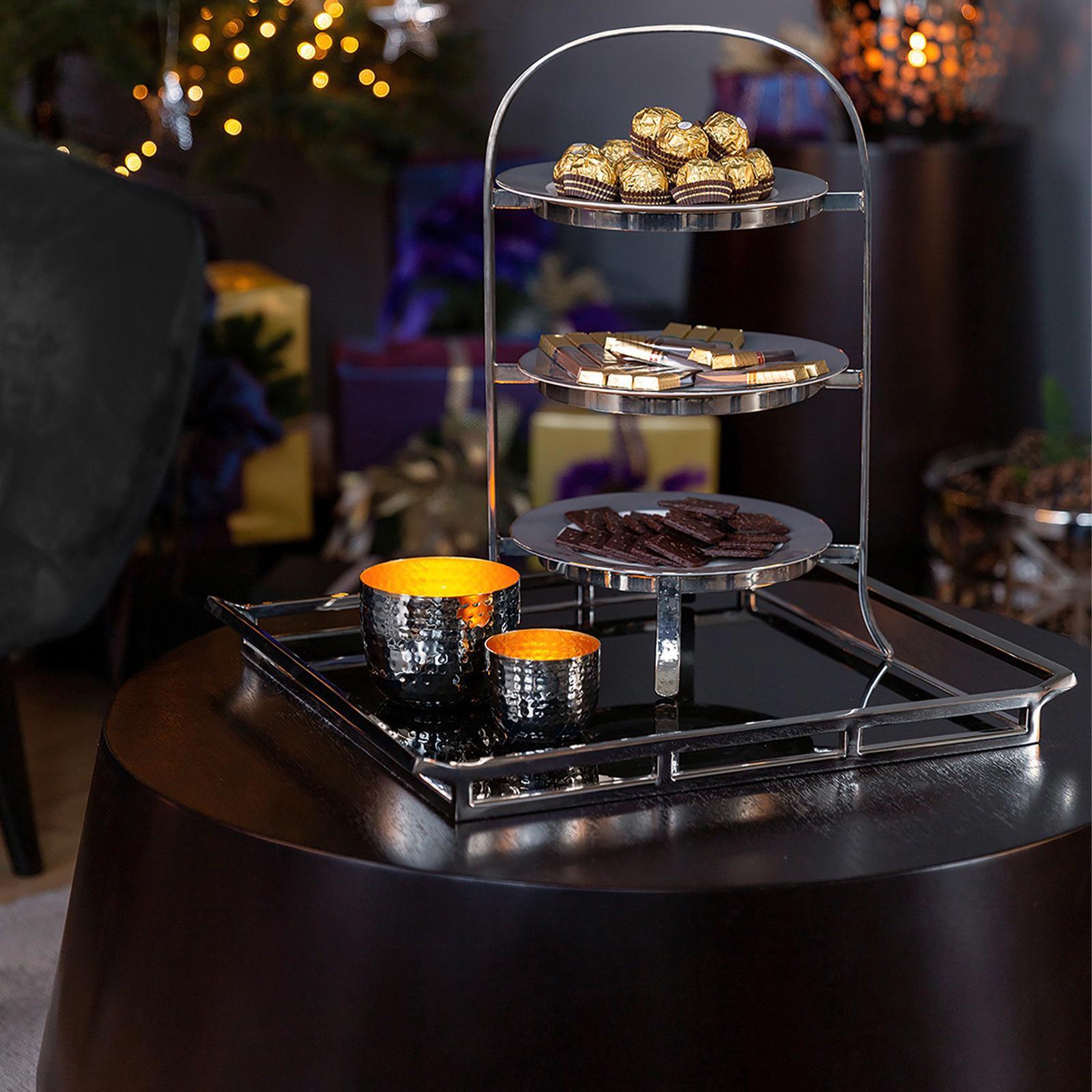 • Länge ca.: 45 cm • Breite ca.: 40 cm • Höhe ca.: 5 cm • Serie: Fink Living • Material: Edelstahl • Material 1: Glas • Oberfläche: glänzend poliert • Oberfläche Details: glatt • spülmaschinengeeignet: nein • Farbe: schwarz-silber • Eigenschaft: mit offenem Griff-Rand • Ausstattung: Boden aus Schwarzglas • Form: rechteckig • Dimension: groß • Look & Stil: modern • Umgebungsnutzung: Für Außenbereich und Innenbereich • Anlass: Hochzeiten, Dekoration, Dinner & Brunch, Feierlichkeiten • Nutzungsbereich: Bar, Gastronomie, Restaurants, Events • Nutzungsmöglichkeit: Flaschen, Snacks, Gläser • Besonderheit: lebensmittelgeeignet • Gewicht ca.: 2,5 Kg