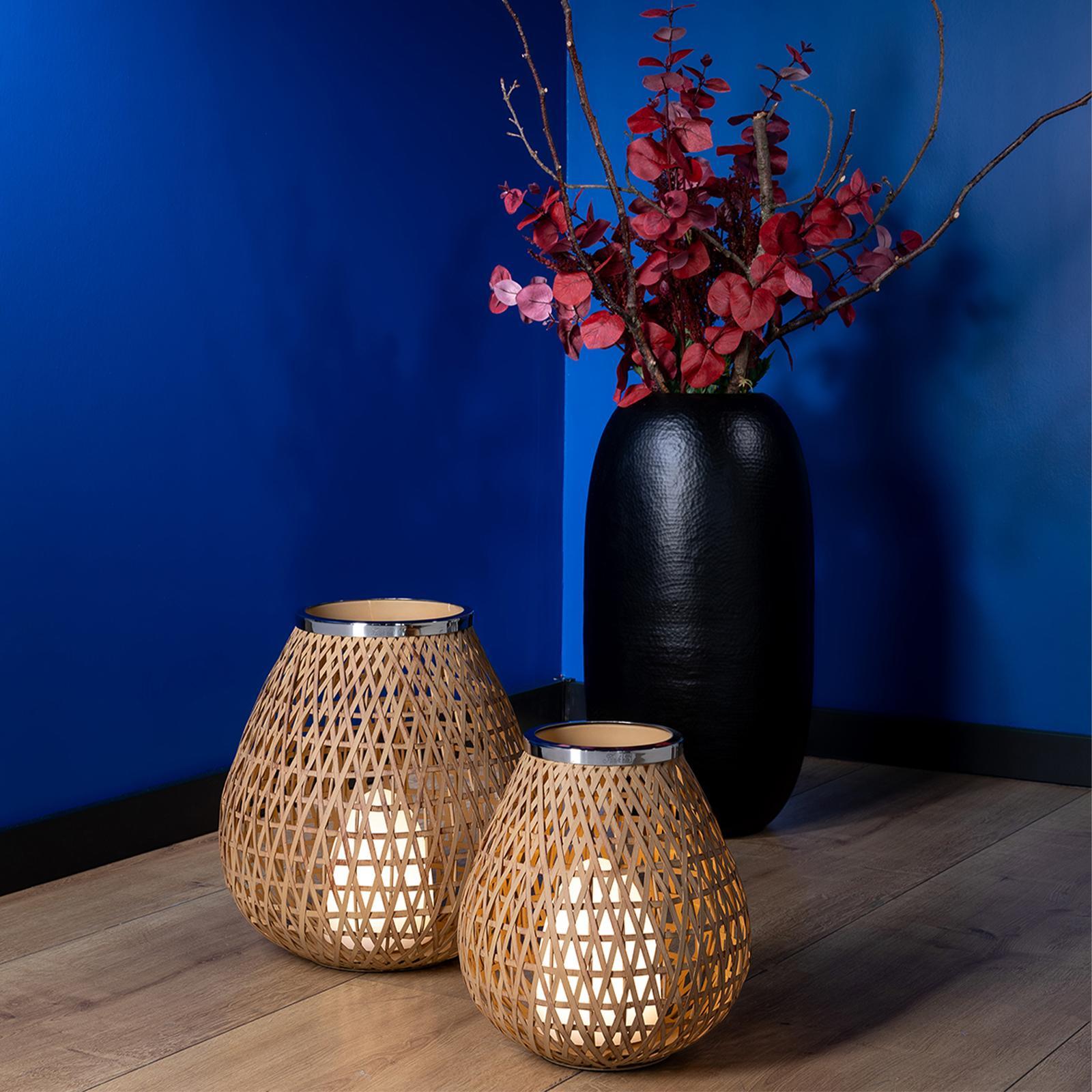 ✓ Windlicht im natürlichen Flecht-Stil - schafft faszinierende Lichtspiele & warme Wohlfühlatmosphäre ✓ Gefertigt aus hellem Naturmaterial mit edlem Metallrand für harmonische Kontraste & Wohnakzente ✓ Kerzenhalter für Stumpenkerzen und LED-Kerzen - vielseitig einsetzbar für stimmungsvolle Dekoration ✓ Die 28 cm Höhe macht das Windlicht zum markanten Blickfang auf Tisch, Kommode und dem Sideboard ✓ Modernes Boho-Flair kombiniert mit zeitloser Natürlichkeit - ideal für ein gemütliches Wohnambiente