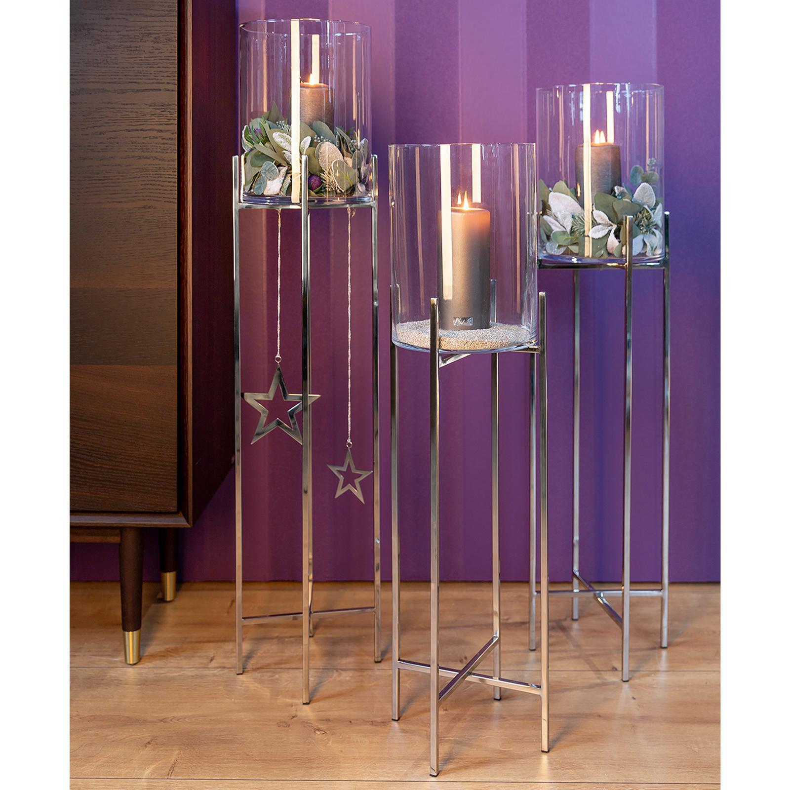 ✓ 100 cm hohes Bodenwindlicht mit Glaszylinder, ideal für große Stumpenkerzen & Blumenarrangements ✓ Schlanker Edelstahlrahmen in glänzender Optik verleiht dem Windlicht moderne Eleganz & Leichtigkeit ✓ Stimmungsvolle Kerzenlaterne vielseitig für den Wohnbereich, Wintergarten oder Terrasse einsetzbar ✓ Glas schützt die Kerzenflamme & sorgt für ein ruhiges Lichtspiel bei gemütlichen Abenden im Zuhause ✓ Funktionell - der Edelstahlständer kann zur Aufbewahrung platzsparend zusammengeschoben werden