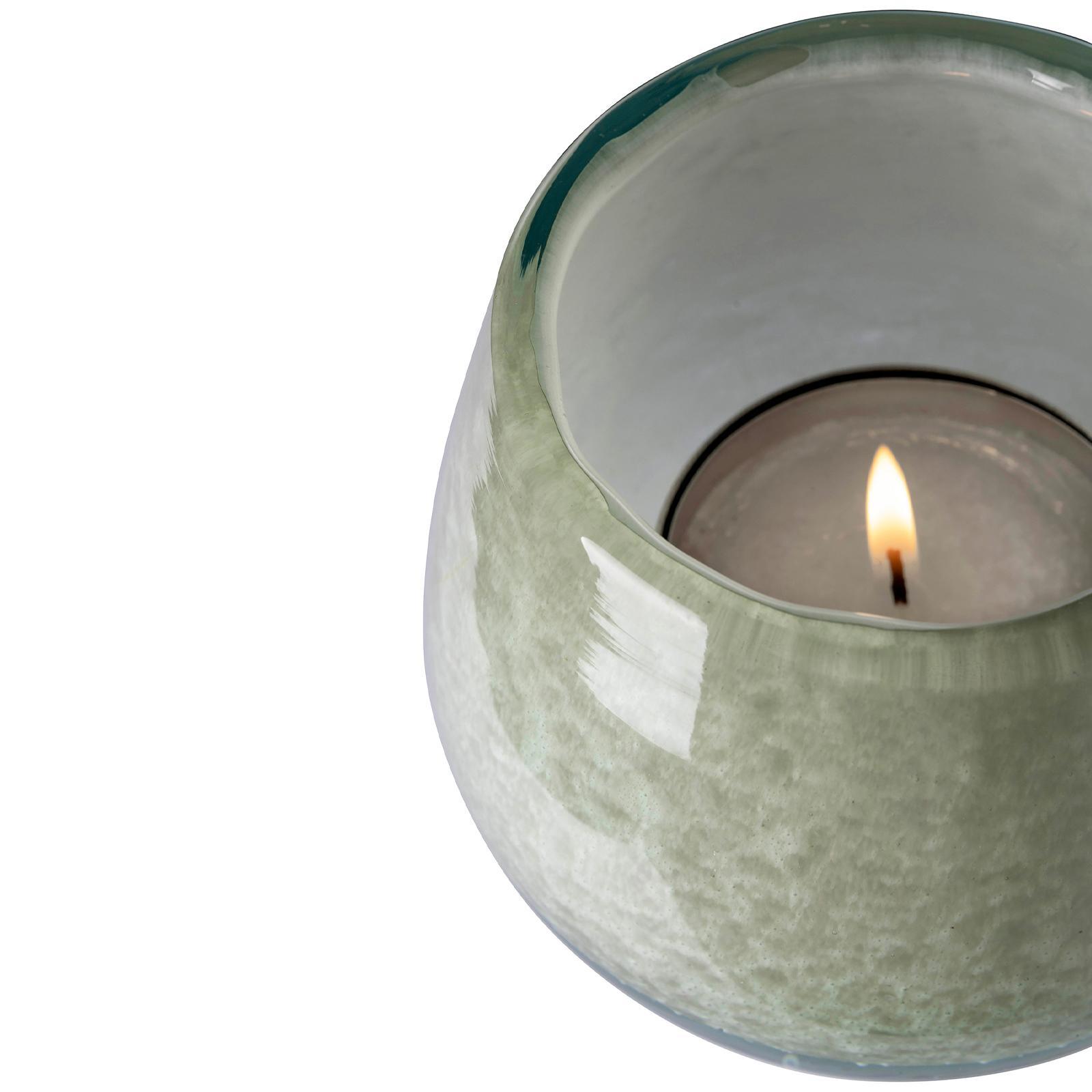 • Länge ca.: 11 cm • Breite ca.: 11 cm • Höhe ca.: 9,5 cm • Durchmesser ca.: 11 cm • Serie: Fink Living • Kapazität: für 1 Teelicht Ø 4 cm • Material: Glas • Veredelung: durchgefärbtes Glas • Oberfläche: glänzend • Oberfläche Details: glatt • Farbe: hellgrün • Eigenschaft: auch als Vase verwendbar • Form: rund • Dimension: klein • Umgebungsnutzung: Für Innenbereich • Anlass: Saisonale & thematische Deko, Gartenabende, Geschenkidee • Nutzungsbereich: Sideboard, Fensterbank, Tischdekoration, Anrichte • Besonderheit: mundgeblasen • Besonderheit I: Unikatcharakter, Handarbeit • Gewicht ca.: 0,9 Kg