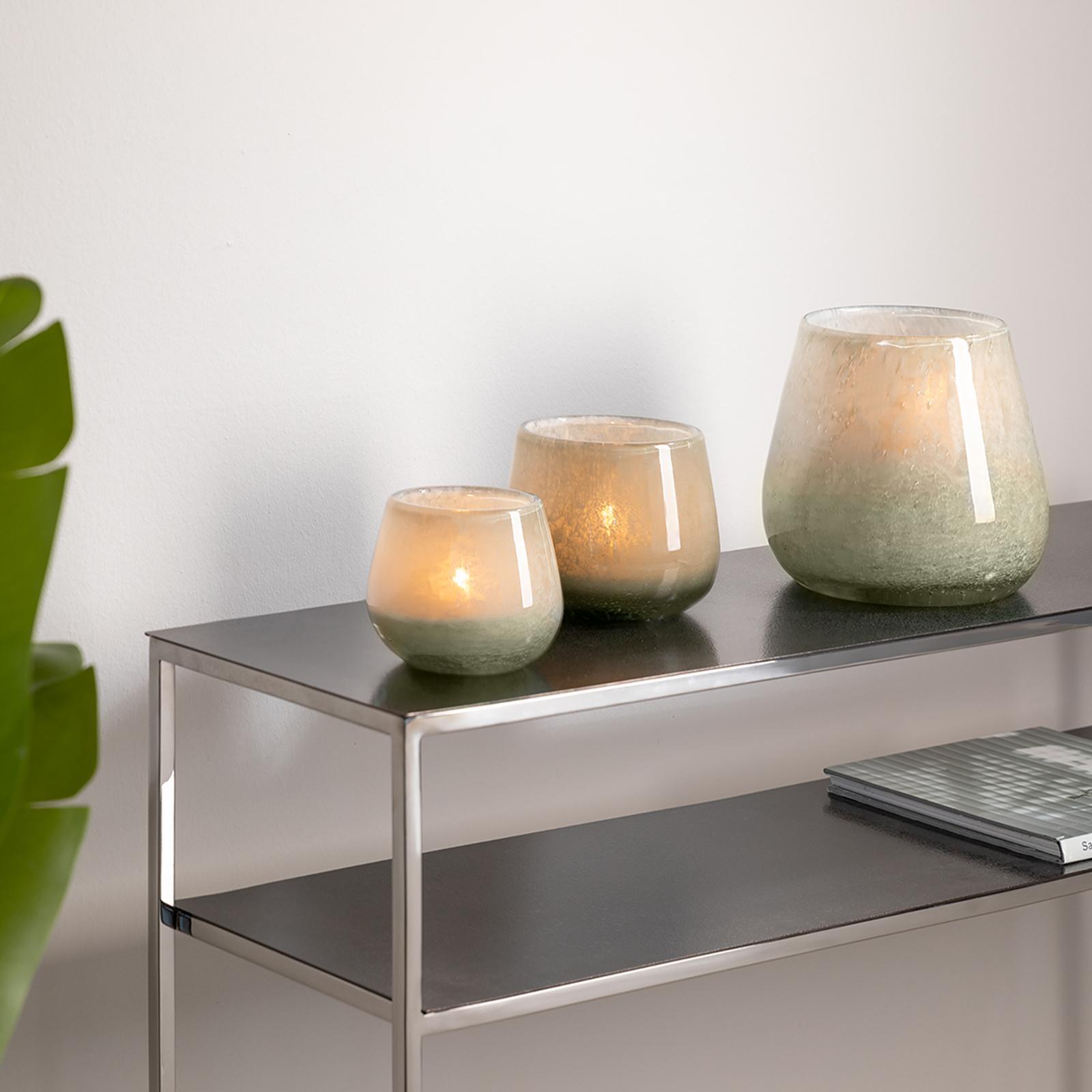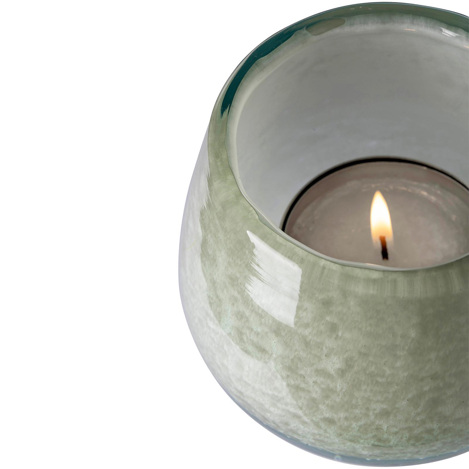 • Länge ca.: 13,5 cm • Breite ca.: 13,5 cm • Höhe ca.: 11 cm • Durchmesser ca.: 13,5 cm • Serie: Fink Living • Kapazität: für 1 Teelicht Ø 4 cm • Material: Glas • Veredelung: durchgefärbtes Glas • Oberfläche: glänzend • Oberfläche Details: glatt • Farbe: hellgrün • Eigenschaft: auch als Vase verwendbar • Form: rund • Dimension: mittel • Umgebungsnutzung: Für Innenbereich • Anlass: Saisonale & thematische Deko, Gartenabende, Geschenkidee • Nutzungsbereich: Sideboard, Fensterbank, Tischdekoration, Anrichte • Besonderheit: mundgeblasen • Besonderheit I: Unikatcharakter, Handarbeit • Gewicht ca.: 1,4 Kg