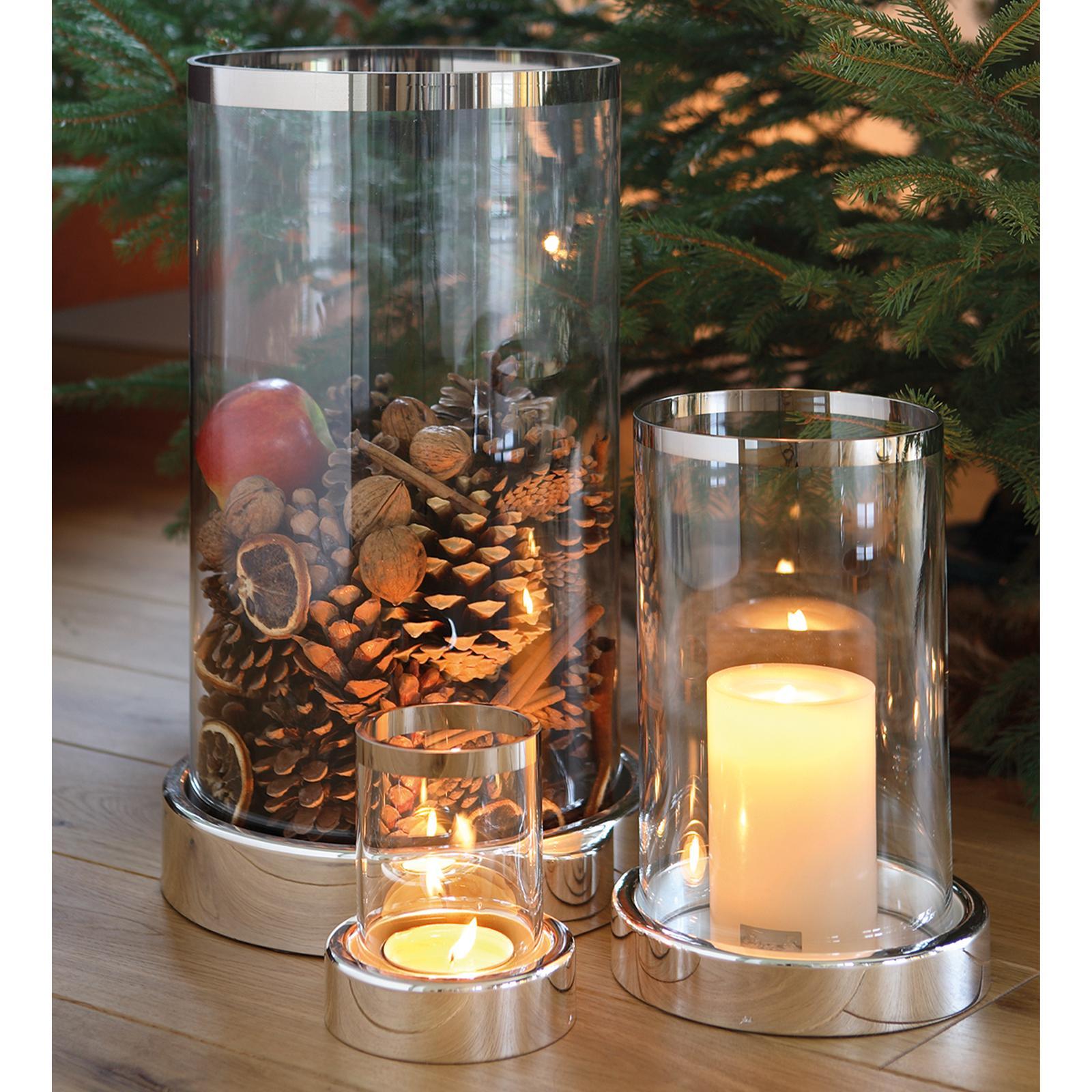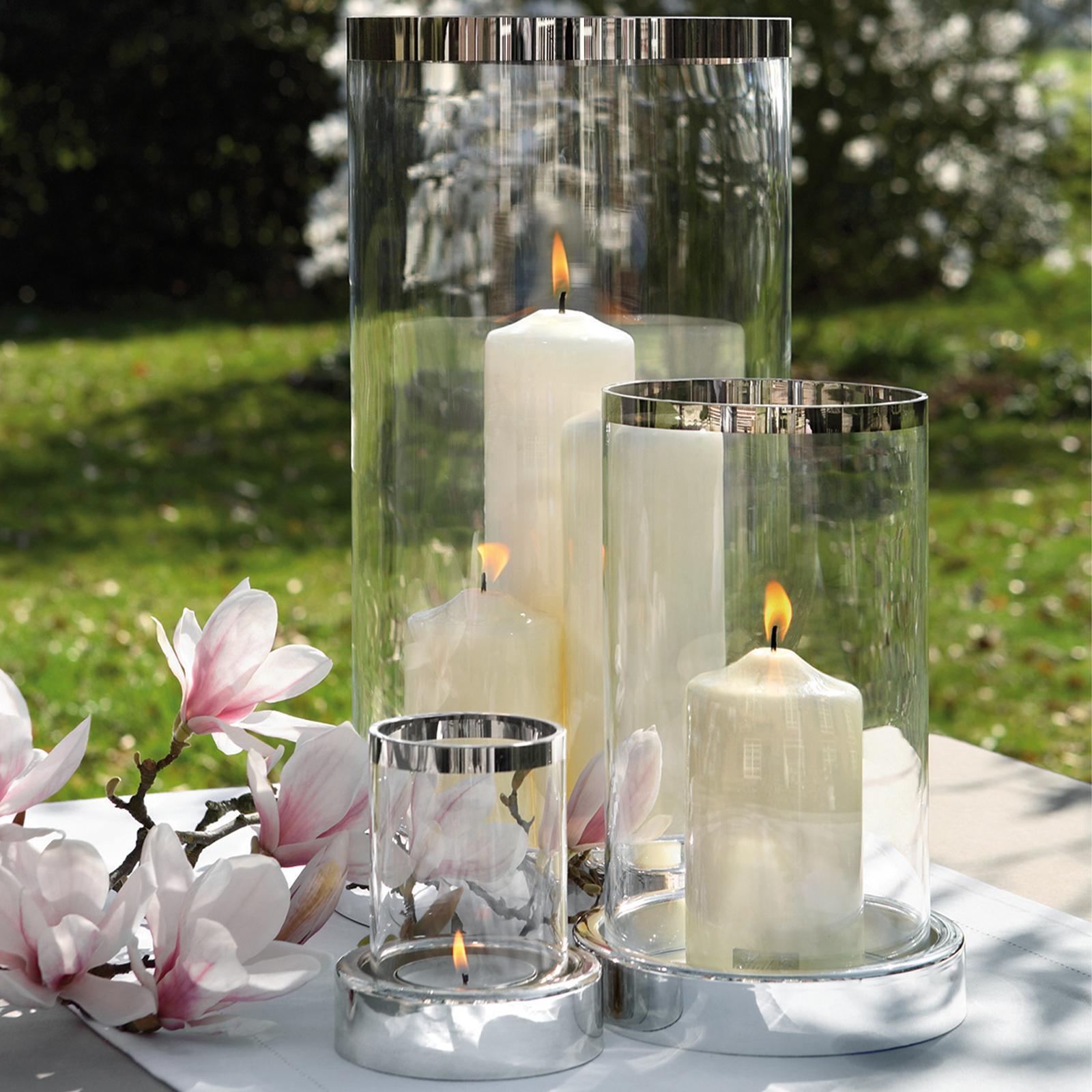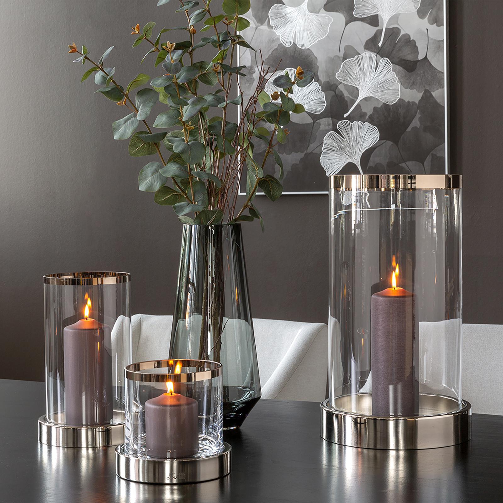 ✓ Edles Glas-Windlicht 44 cm mit Sockel in Silber und Platinumrand für Kerzen und kreative Dekorationen ✓ Runder Kerzenhalter für Stumpenkerzen & Teelichter - moderner Mittelpunkt für jede Tischdekoration ✓ Der glänzend veredelte Fuß sorgt für tolle Ausstrahlung und macht das Kerzenglas zu einem Eyecatcher ✓ Kombinierbar mit Blumen, Zweigen und saisonalen Elementen - für neue & individuelle Arrangements ✓ Schlichtes Design trifft auf luxuriöse Details, Glas & Metall in Kombination für stilvolles Wohnambiente